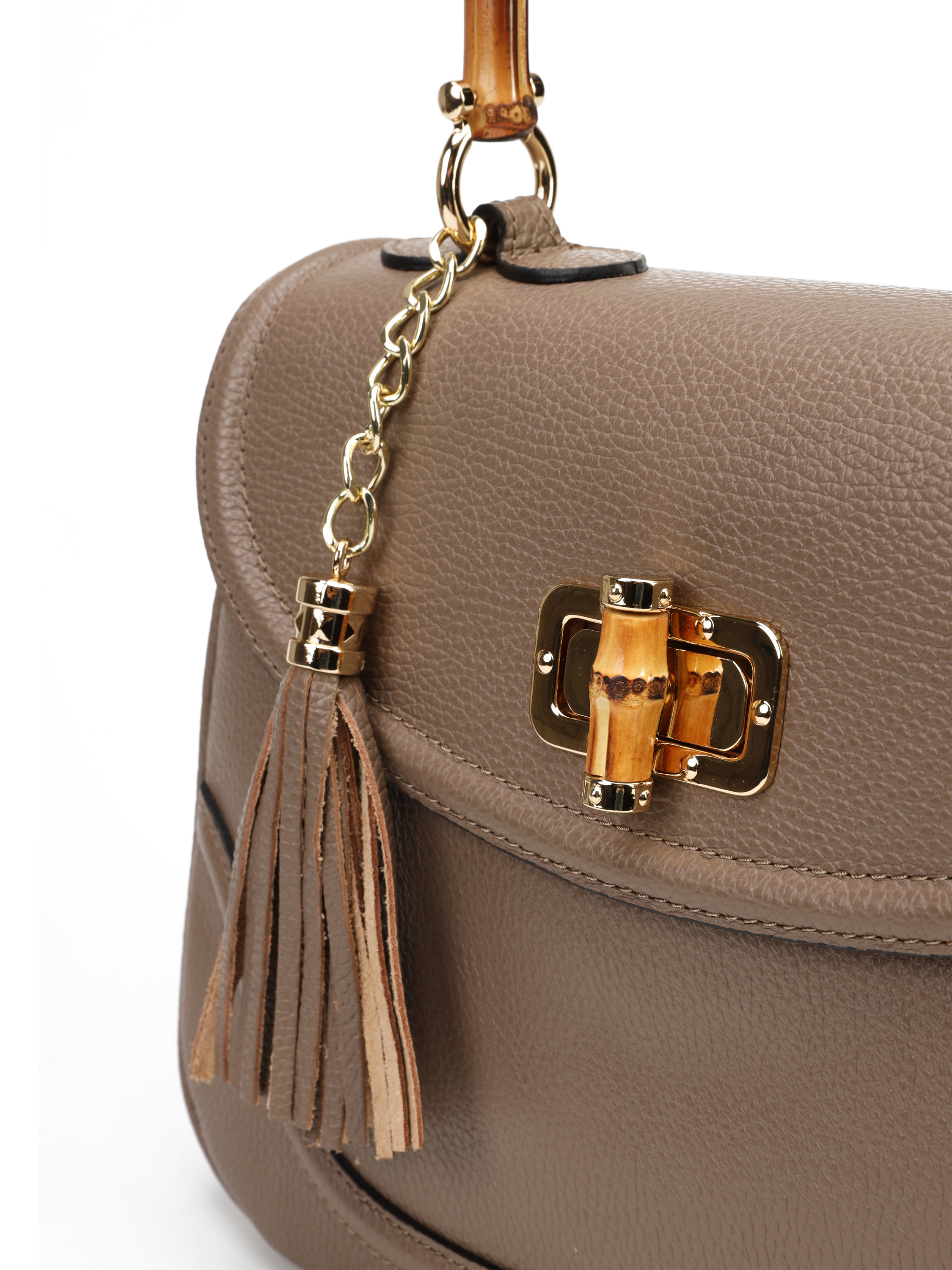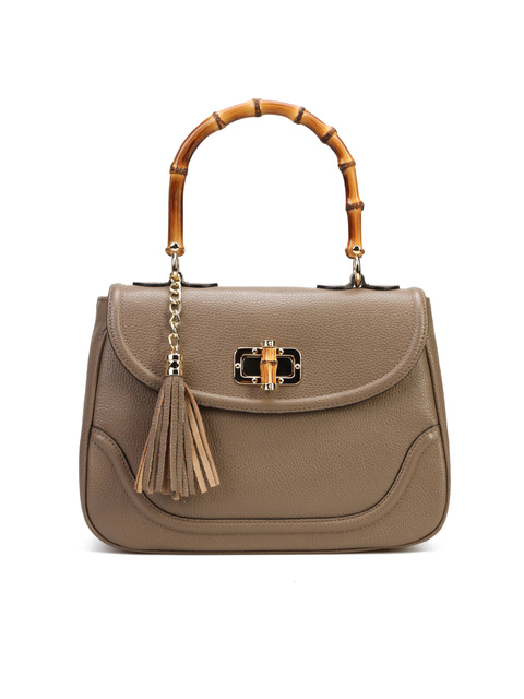 Torebka damska z kolekcji HEGO'S Milano w całości wykonana jest z włoskiej naturalnej skóry. Wykończona została złotymi detalami oraz bambusową, stylową rączką. Zapinana na zatrzask. Środek torebki pokryty jest materiałem. Posiada małą kieszonkę zapinaną na zamek błyskawiczny. Cienki, regulowany pasek na ramię pozwala dopasować ją do swoich potrzeb.