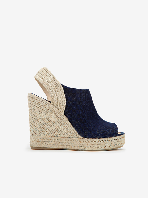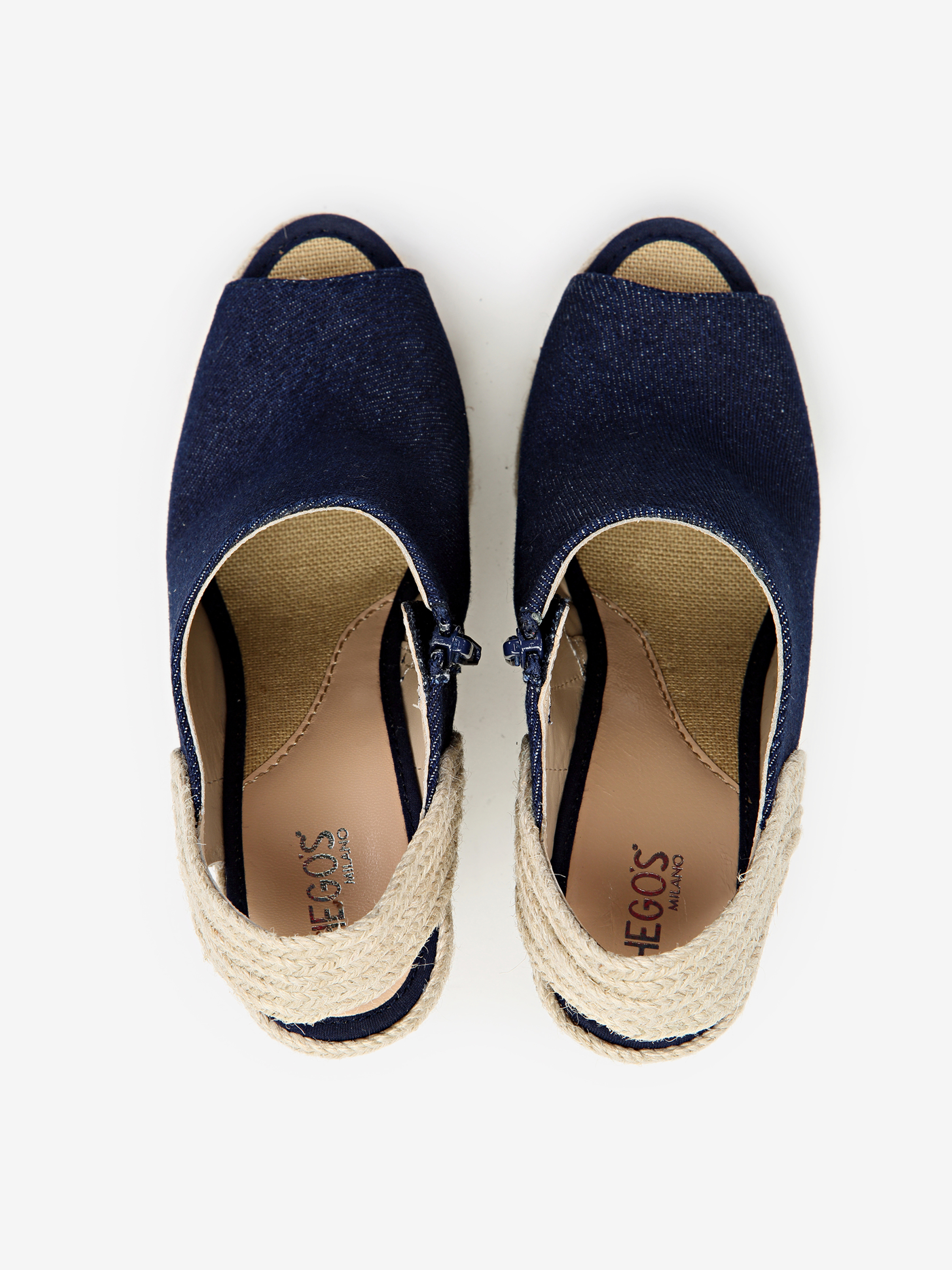 Espadryle osadzone na koturnie,cholewa wykonana z materiału typu jeans,zapinane na suwak od wewnętrznej strony.