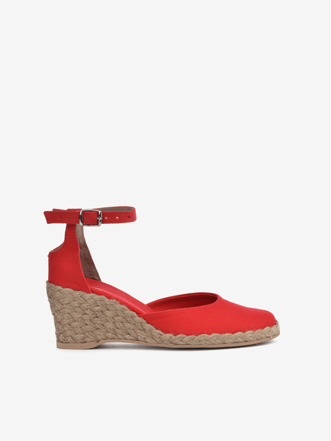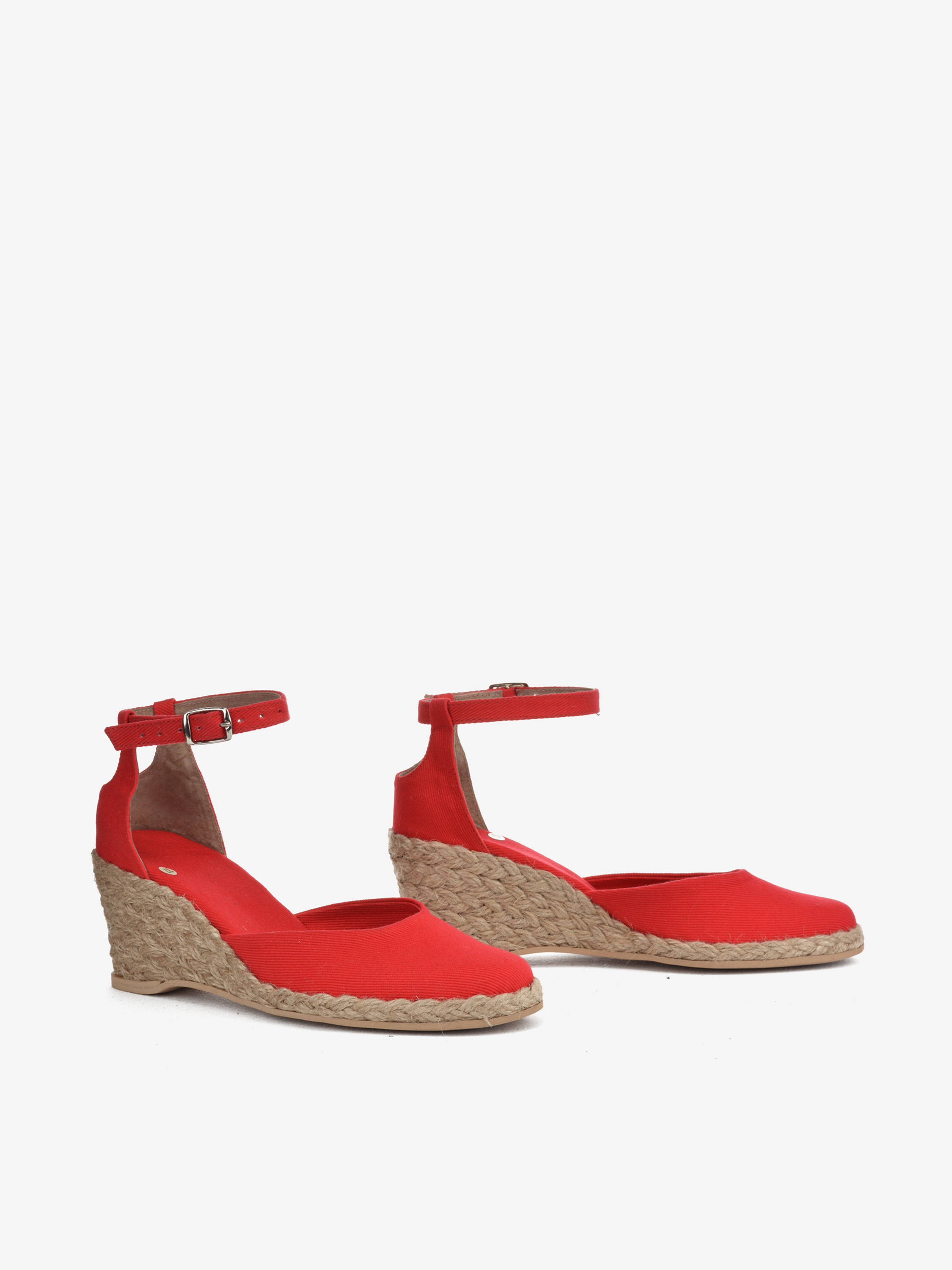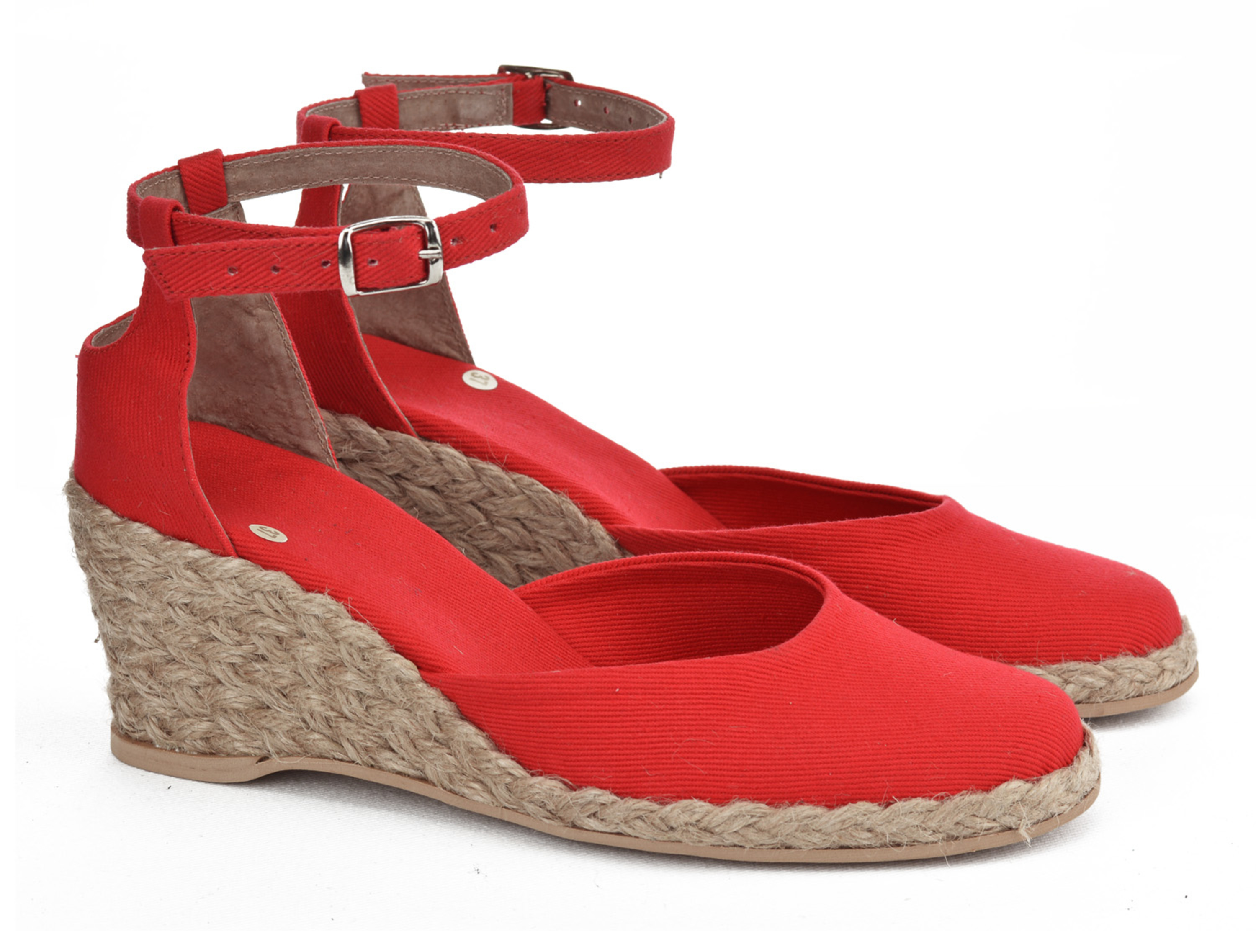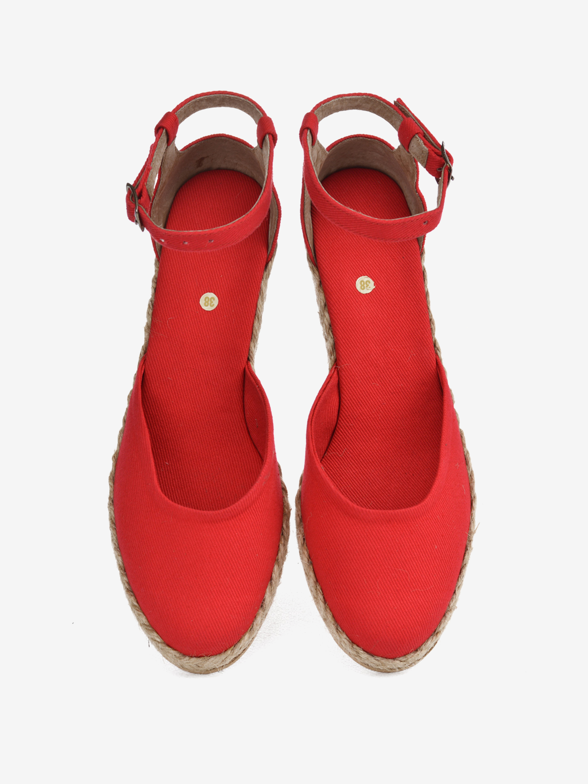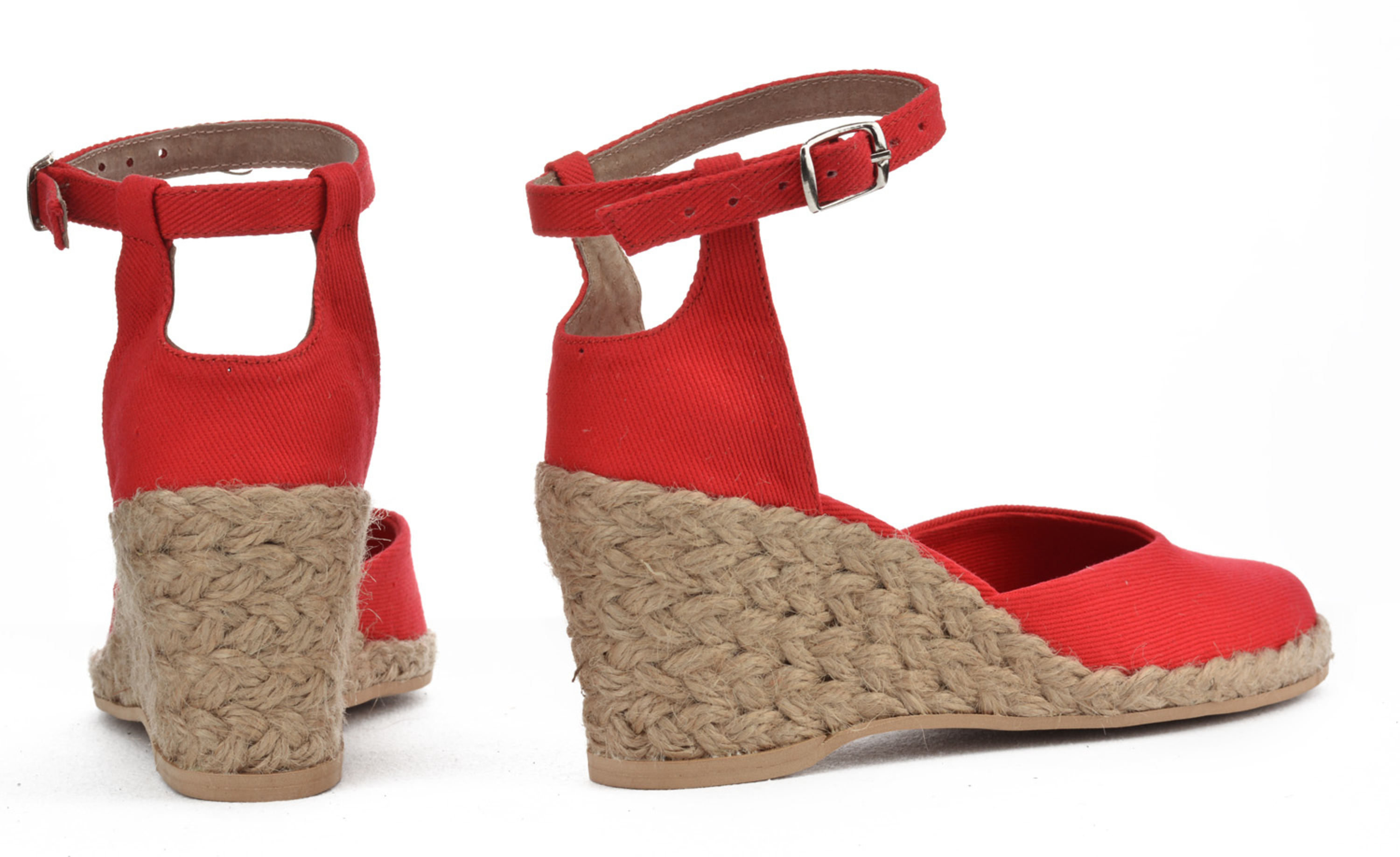 Espadryle na 7 cm koturnie w czerwonym kolorze. Super jakość, rzemieślnicza praca. Ręcznie składane buty, w modnm fasonie. Każda para jest wyjątkowa i niepowtarzalna.