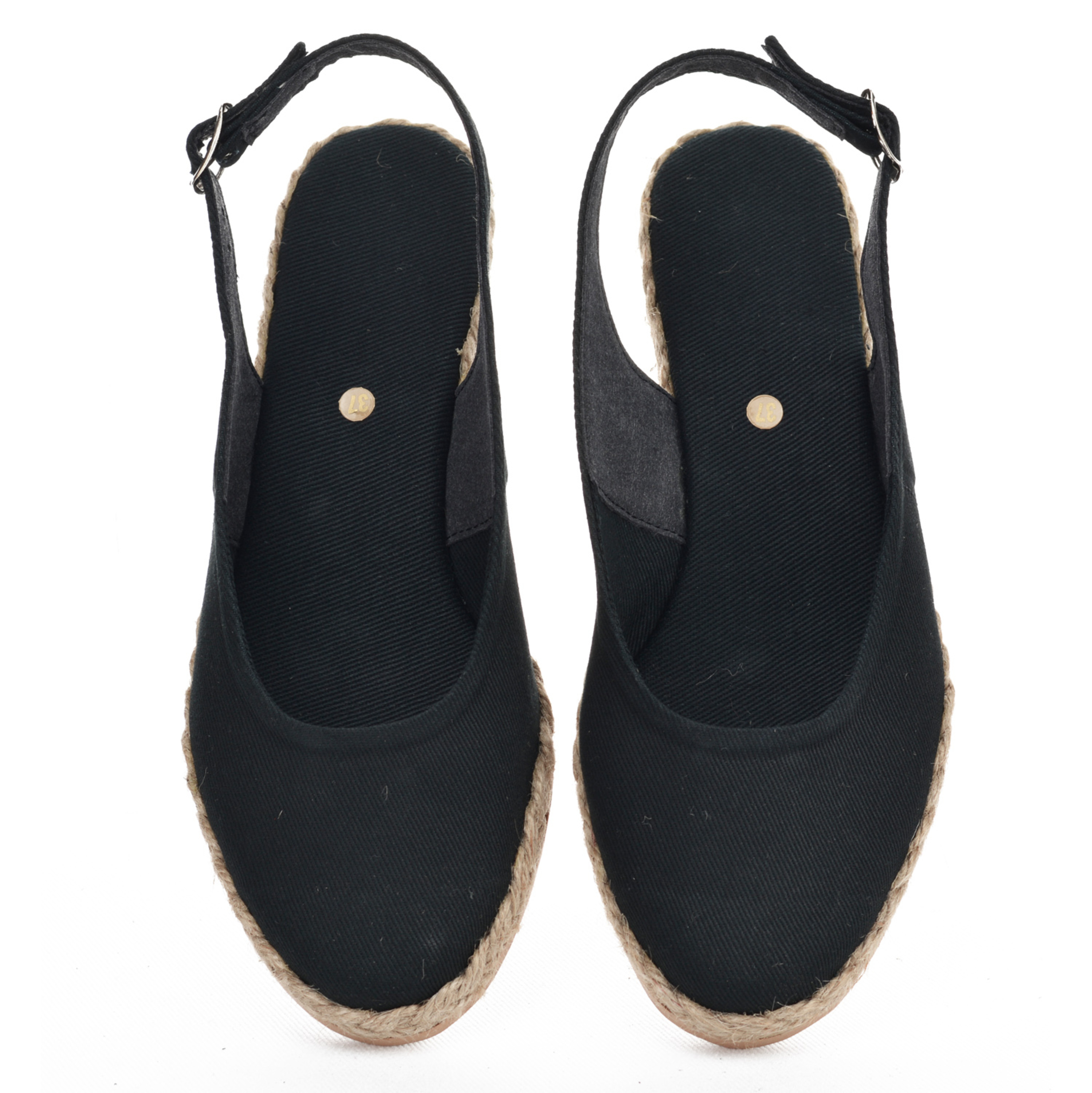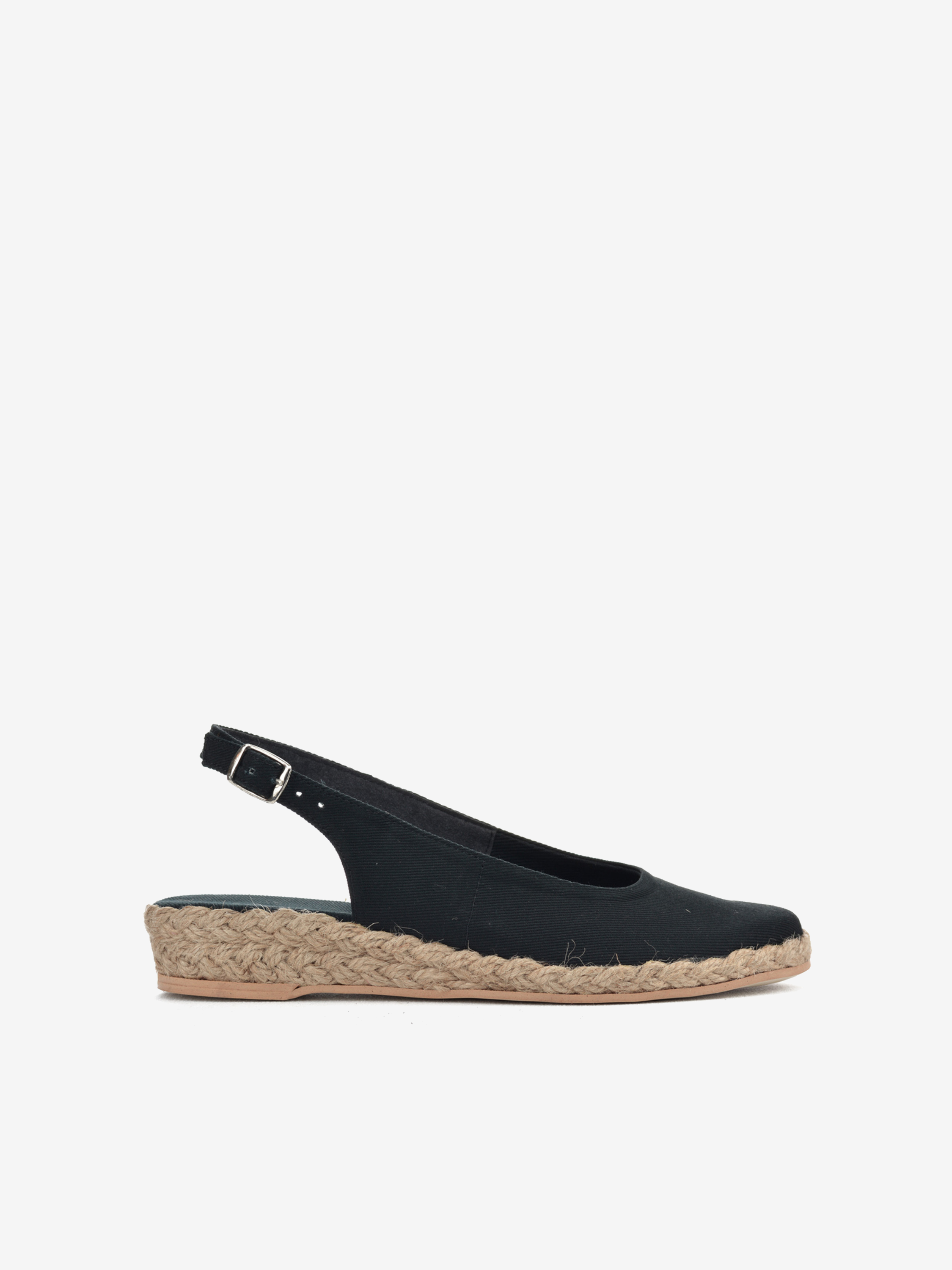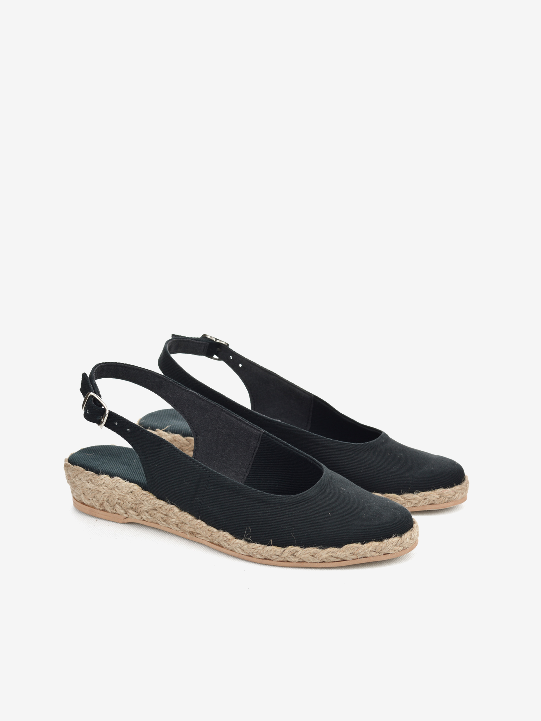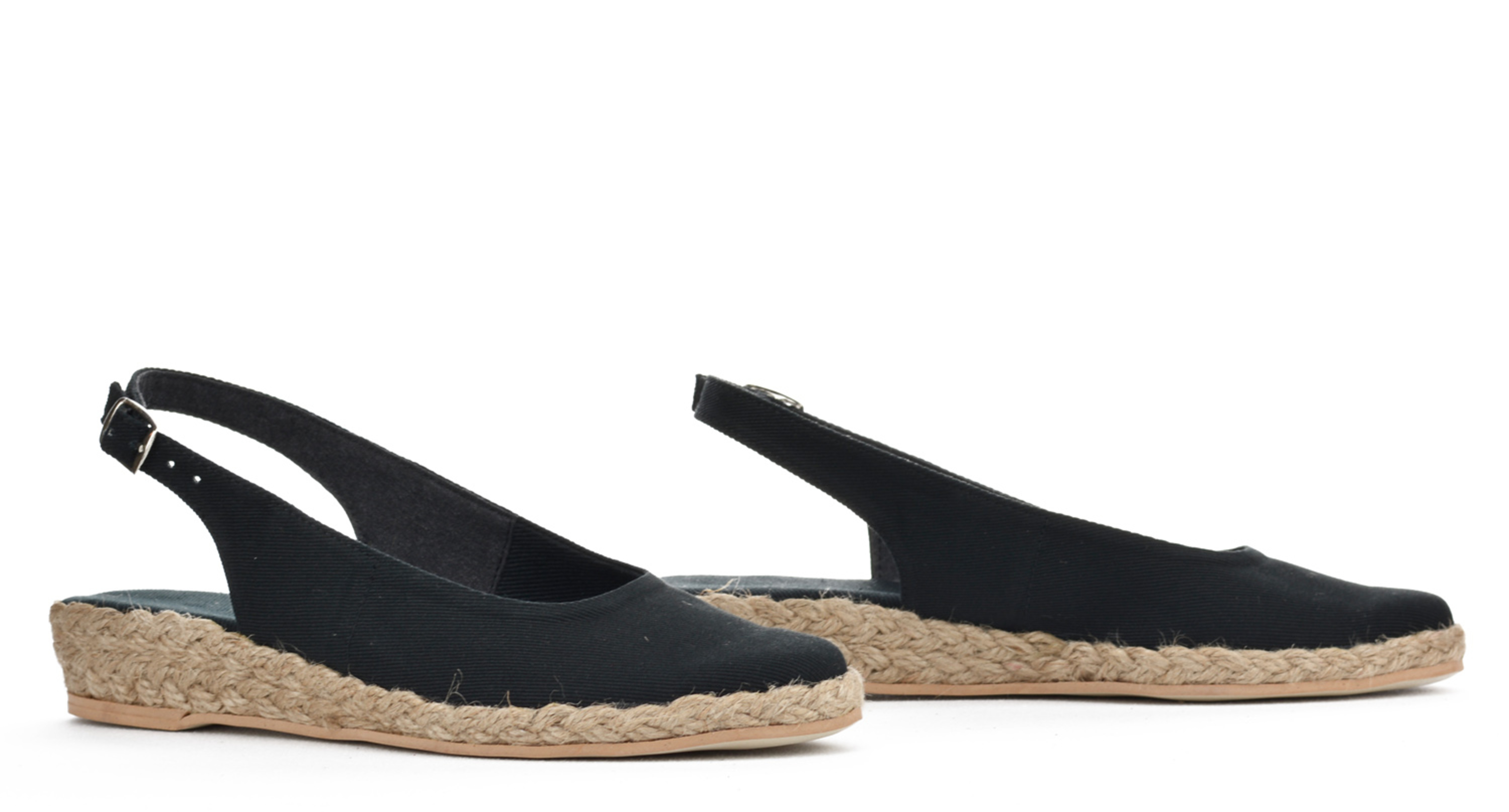 Espadryle z odkrytą piętą w czarnym kolorze. Super jakość, rzemieślnicza praca. Ręcznie składane buty, w modnym fasonie. Każda para jest wyjątkowa i niepowtarzalna.