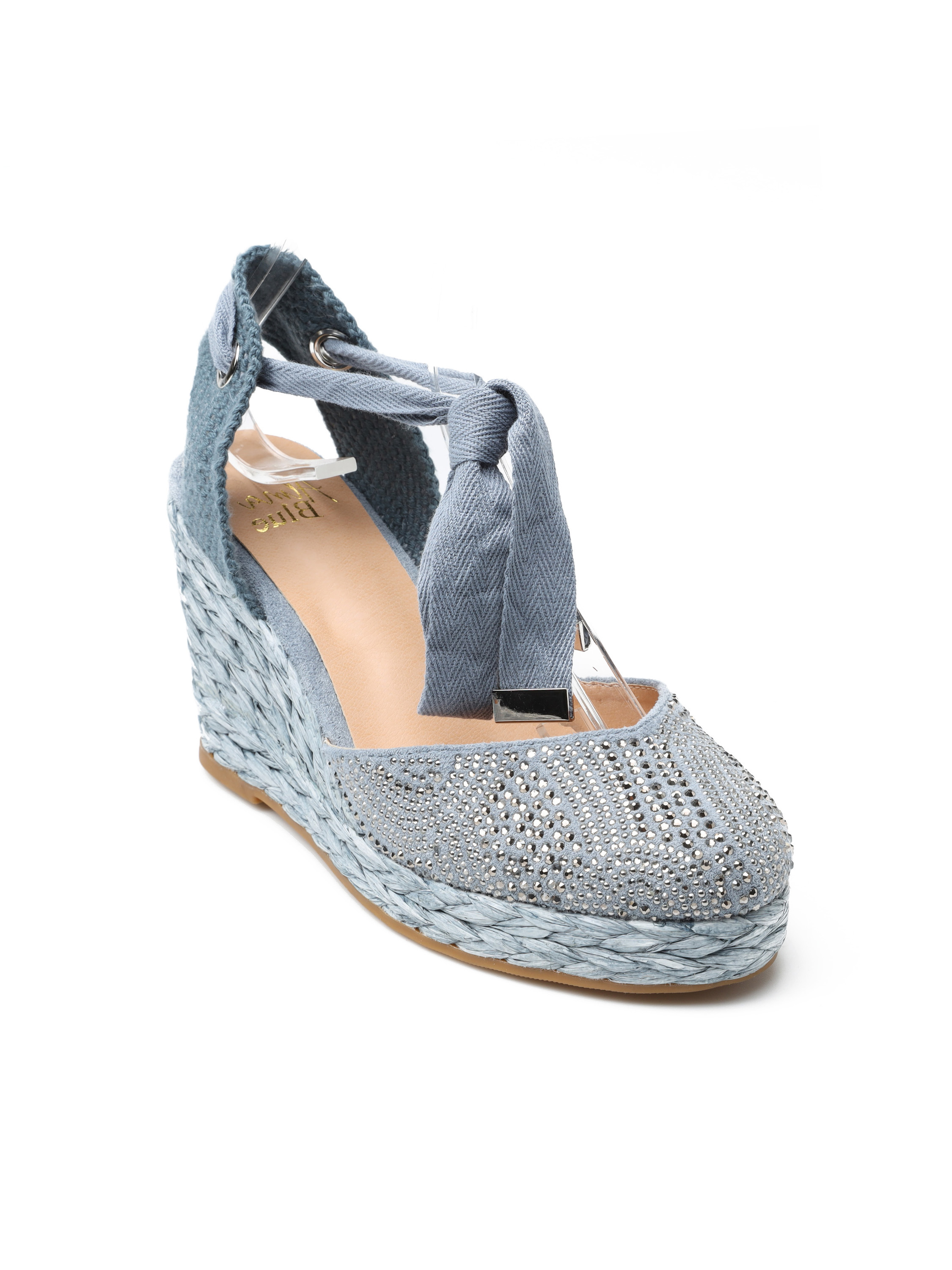 Espadryle damskie to fason zaprojektowany z myślą o kobietach szukających modnych i wygodnych rozwiązań. Model na koturnie obszytej pelcionką. Posiada modne wiązanie wokół kostki. Cholewka ozdobiona została metalowymi dżetami. Espadryle to fason idealny na lato. Będzię uzupłnieniem modnej garderoby kobiety.