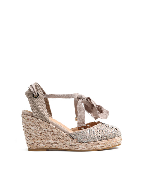 Espadryle damskie to fason zaprojektowany z myślą o kobietach szukających modnych i wygodnych rozwiązań. Model na koturnie obszytej pelcionką. Posiada modne wiązanie wokół kostki. Cholewka ozdobiona została metalowymi dżetami. Espadryle to fason idealny na lato. Będzię uzupłnieniem modnej garderoby kobiety.