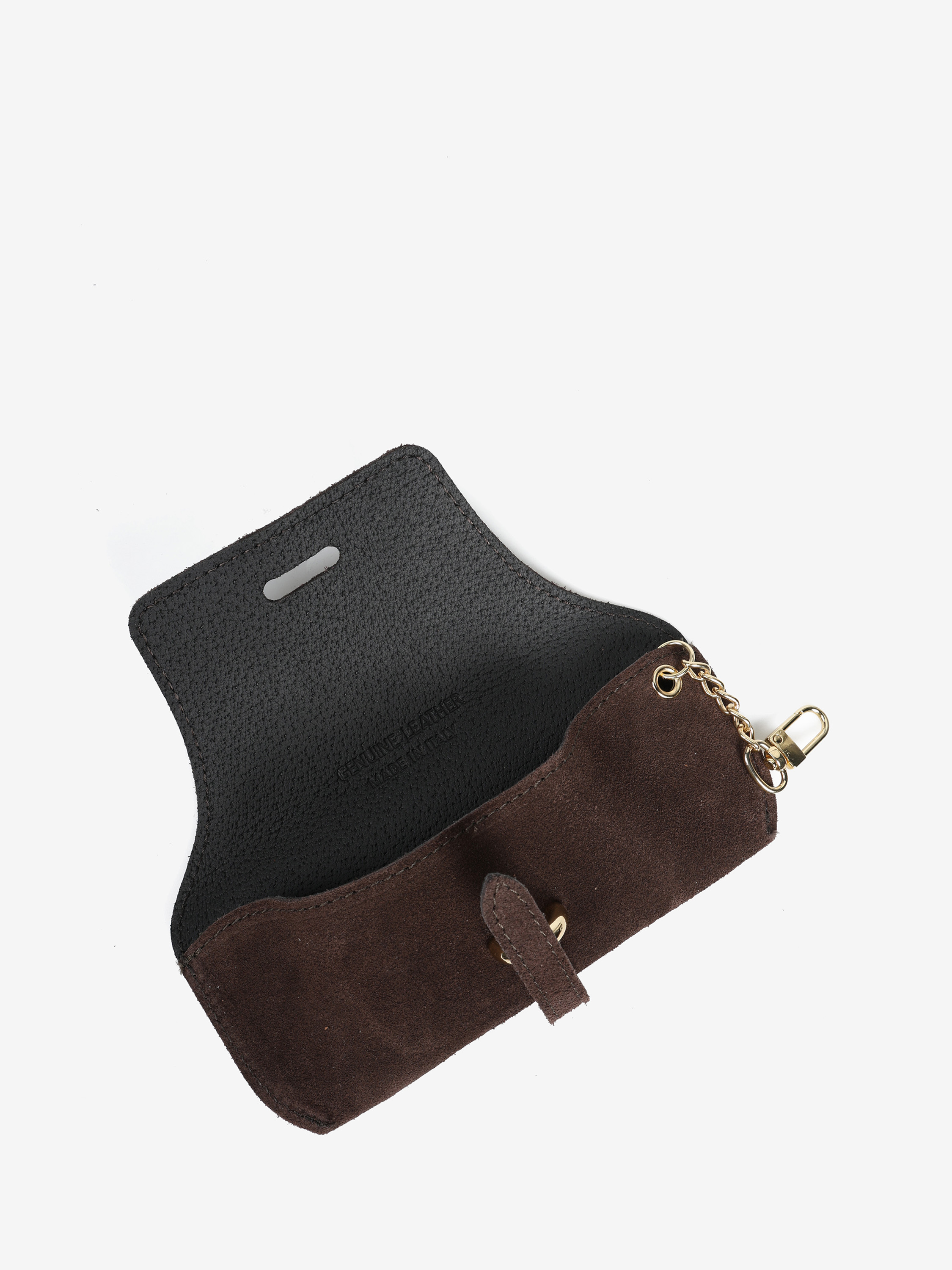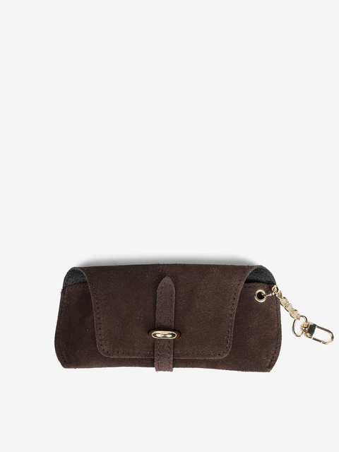 Etui na okulary wykonane ze skóry zamszowej. Można je dopiąć do torebki.