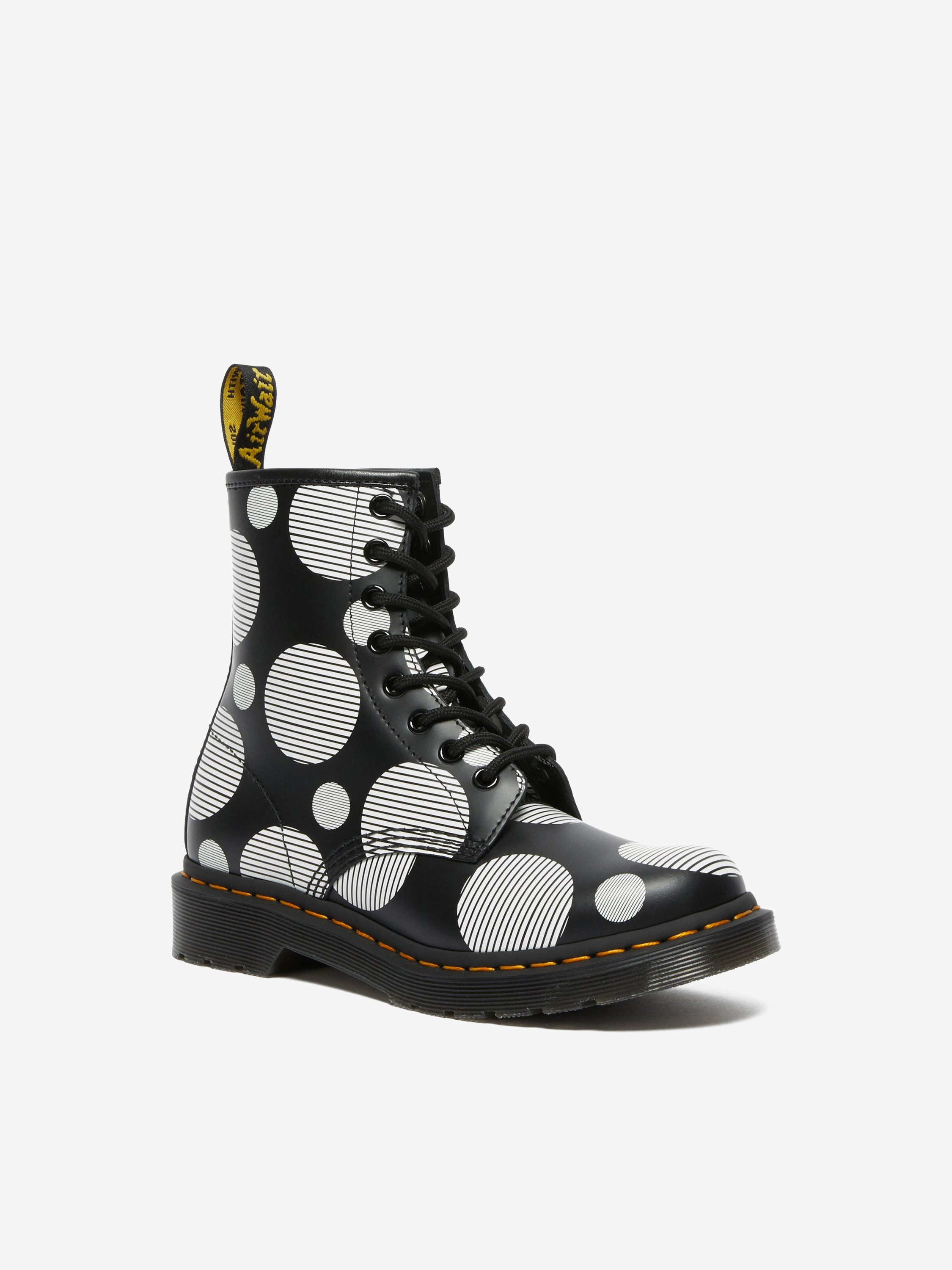 Oryginalne, kultowe, wytrzymałe i z charakterem - to idealne określenie na buty marki Dr. Martens. Ponadczasowe modele, które wpisały się w kanony popkultury, do dziś cieszą się wielką popularnością. Najchętniej wybieranym modelem, który od razu kojarzy się z marką jest produkowany od 1960 r. model 1460, który prezentujemy wam w czarnej wersji w duże, białe kropki. Dzięki solidnej cholewce ze skóry oraz odpornej na ścieranie podeszwie z wbudowaną poduszką powietrzną są niezwykle wygodne i posłużą przez lata.