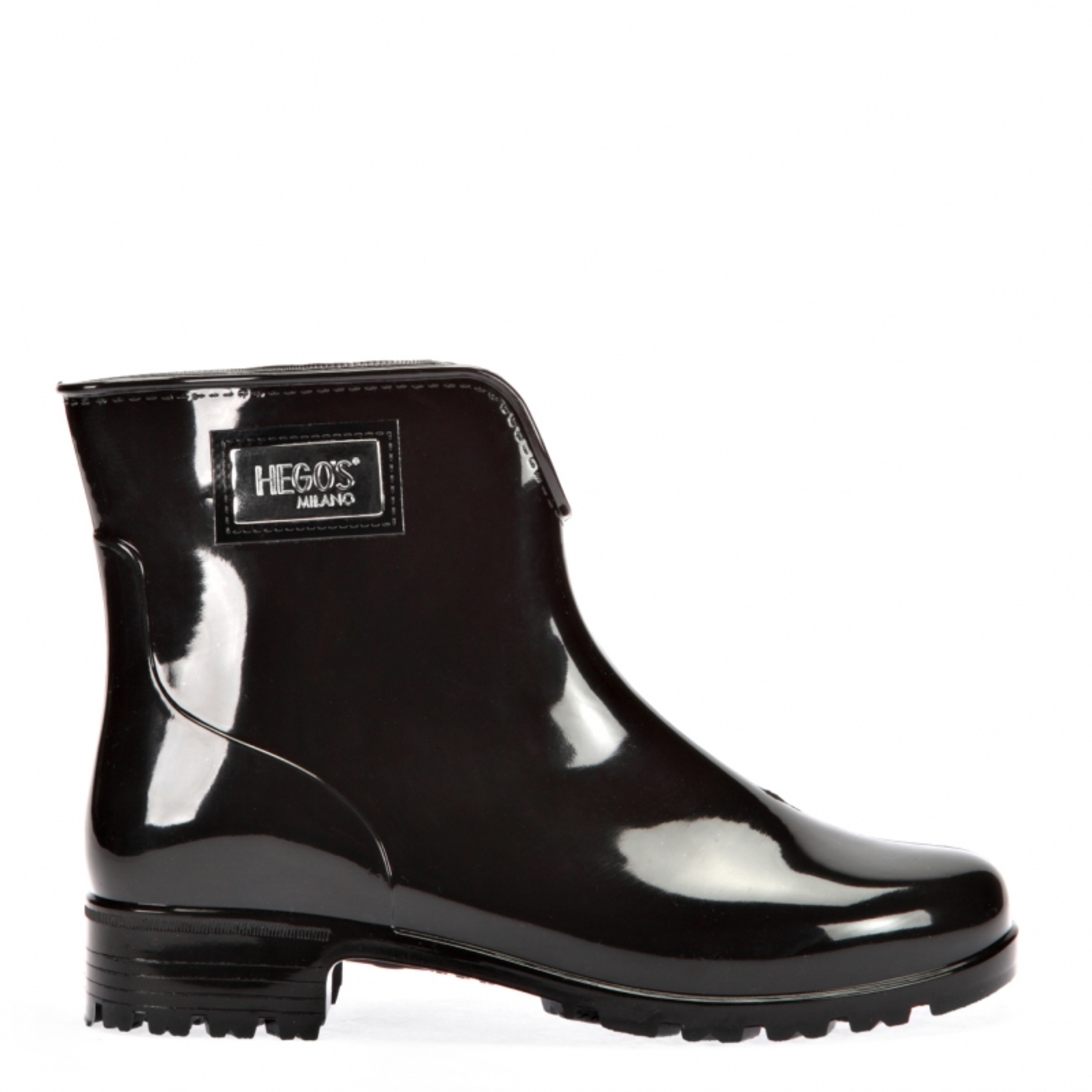 Krótkie kalosze w kolorze czarnym z logo na cholewie.