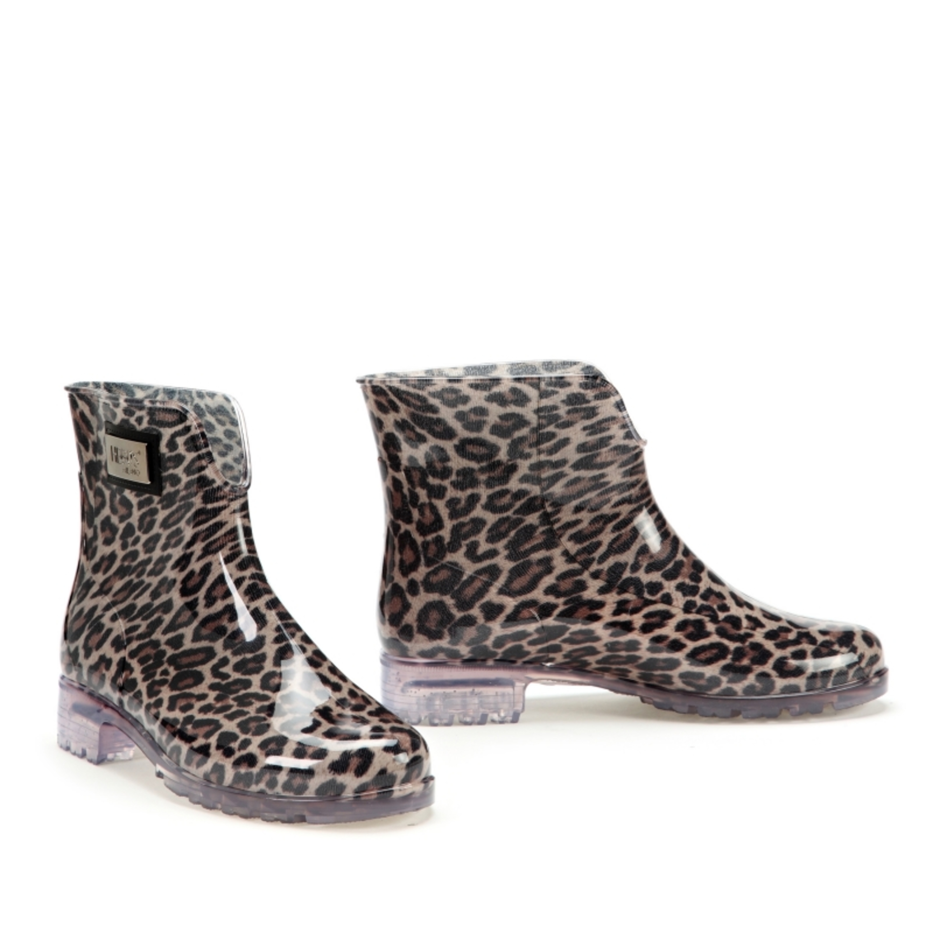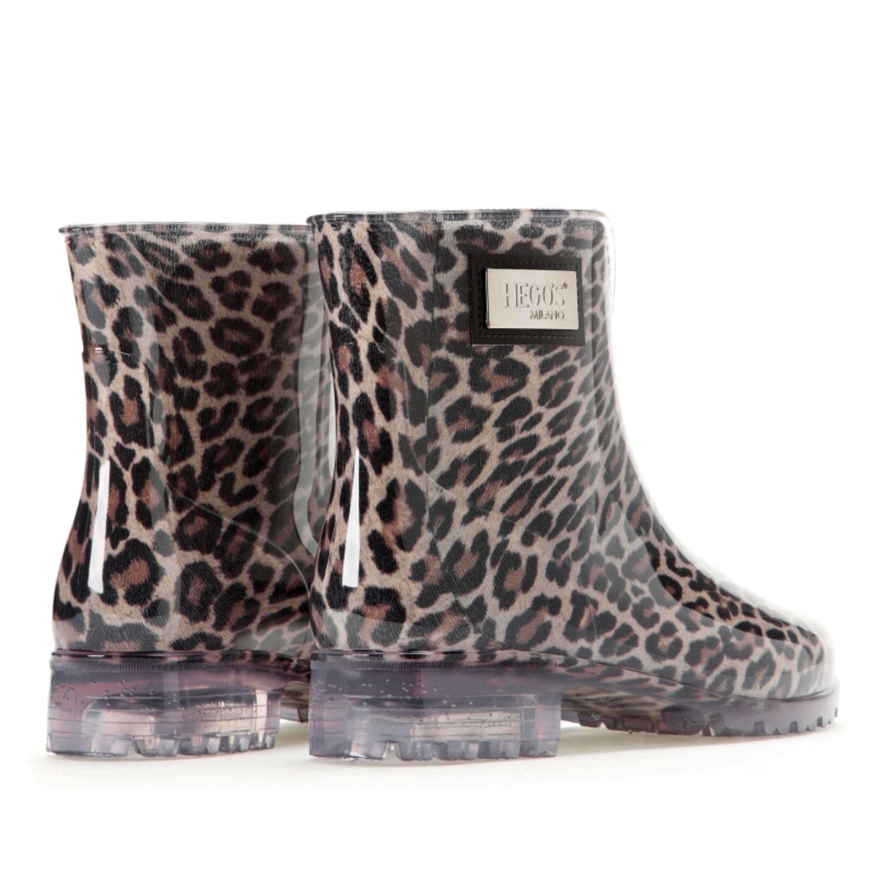 Nietuzinkowe kalosze HEGO'S z motywem wzoru w panterę. Logo HEGO'S na szczycie cholewy.