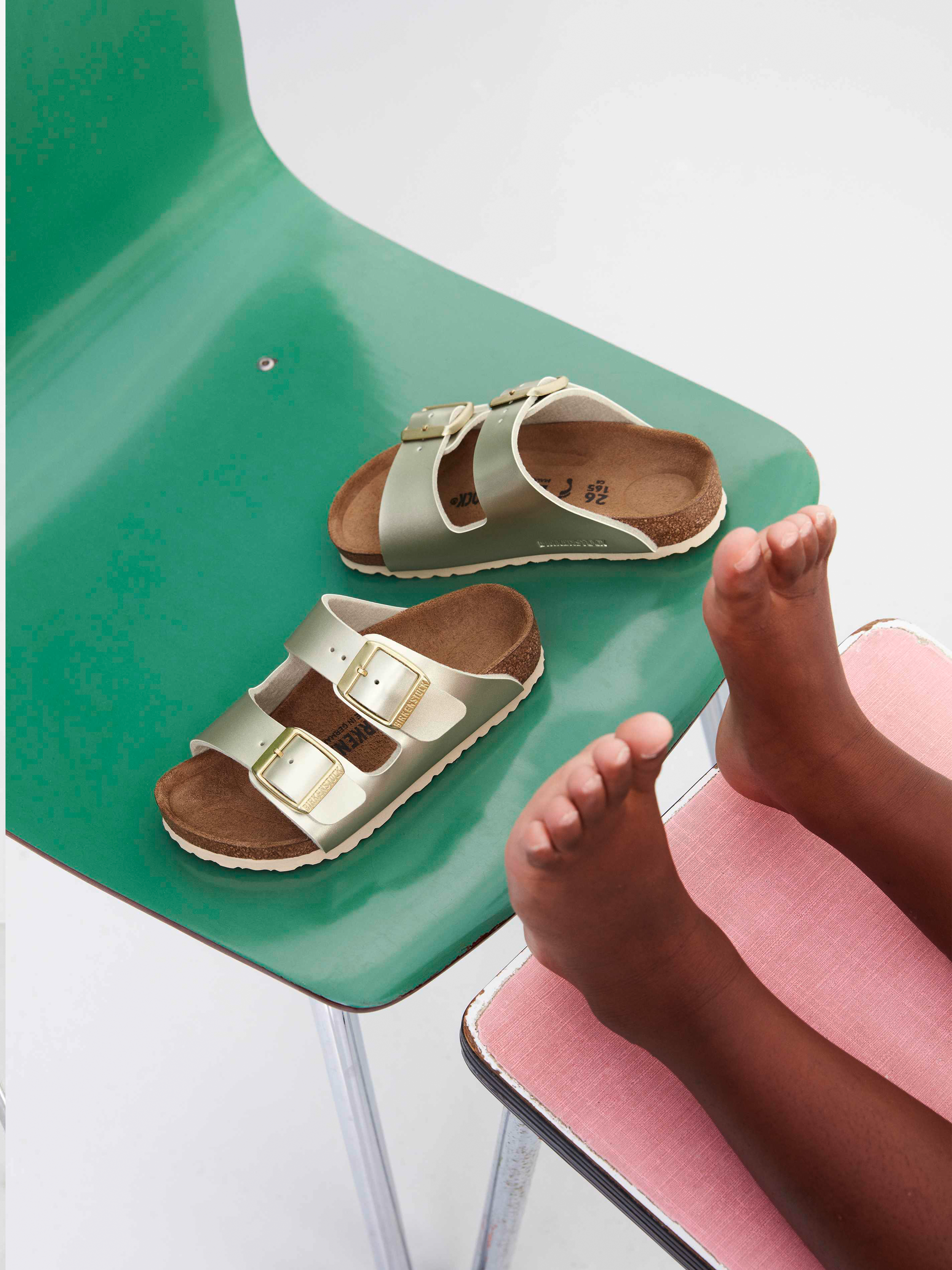 Birkenstock Arizona to kultowy model marki. Klapki z dwoma paskami z klamrą są najczęściej wybieranym i najczęściej odświeżanym przez projektantów fasonem. Teraz w wersji dla najmłodszych. Regulowane zapięcie pozwala dopasować obuwie do stopy. Miękka wkładka.To model idelany na lato.