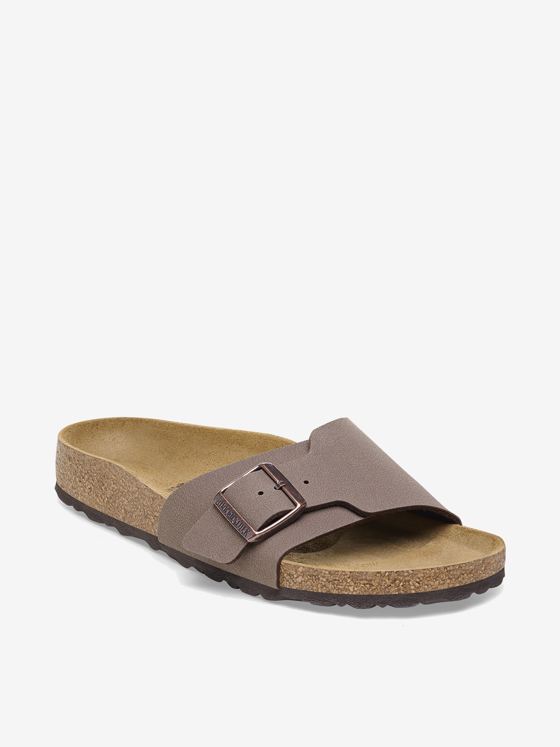Wzornictwo modelu Catalina marki BIRKENSTOCK opiera się na popularnym, klasycznym modelu Madrid z paskiem i metalową klamrą. Klapki zostały wyposażone w nieco szerszy pasek, który nadaje obuwiu wyrazistości i podkreśla jego męski charakter. Materiał wierzchni obuwia to przyjazne dla skóry i wytrzymałe tworzywo syntetyczne Birko-Flor® o delikatnie połyskującej powierzchni.