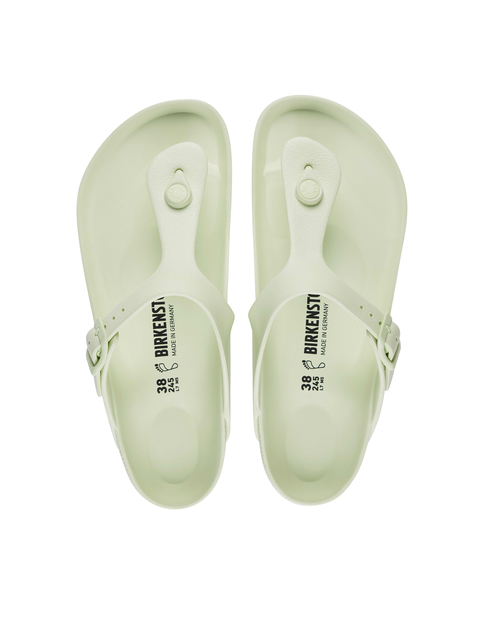 Obuwie BIRKENSTOCK Gizeh to prawdziwy klasyk. Wzorowany na korkowym sandale model, wykonany jest ze szczególnie lekkiego i bardzo elastycznego materiału EVA. Wysokiej jakości tworzywo sztuczne EVA jest bezzapachowe i sprawdzone pod względem ewentualnych zanieczyszczeń i łączy w sobie wiele właściwości: tworzywo to jest bardzo lekkie i elastyczne, odporne na działanie wody i przyjazne dla skóry, a ponadto oferuje typowy dla BIRKENSTOCK komfort noszenia.
