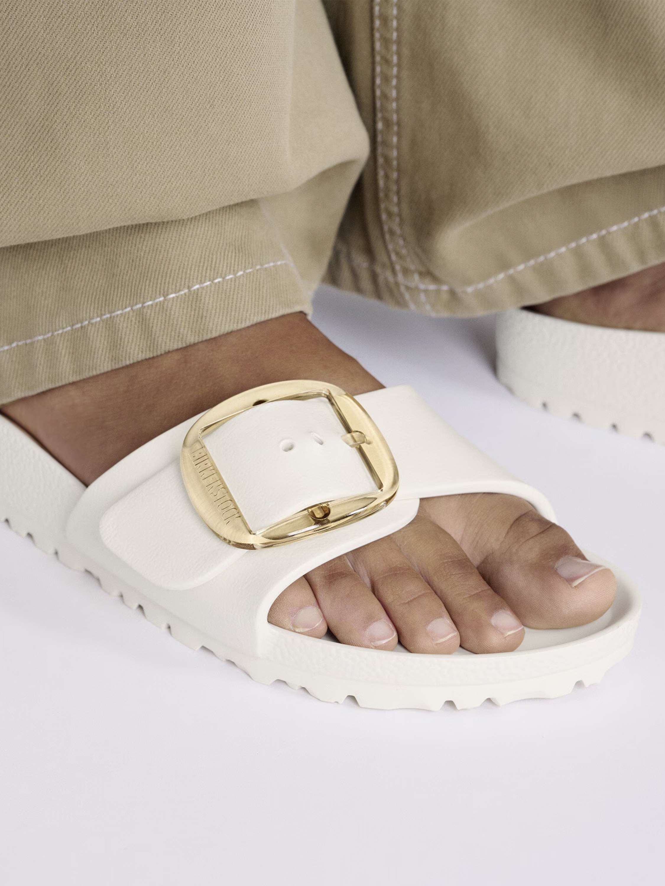 Klasyk BIRKENSTOCK Madrid w zupełnie nowej, nowoczesnej odsłonie. W tej wersji model wyróżnia się oryginalną i funkcjonalną klamrą Big Buckle wykonaną z odpornego na rdzę tworzywa sztucznego, zapewniając trwałość i minimalistyczny wygląd. Buty te wzorowane są na sandałach z korka i wykonane z niezwykle lekkiej, elastycznej pianki EVA. To wysokogatunkowe, bezwonne i wolne od zanieczyszczeń tworzywo sztuczne, które łączy w sobie wiele zalet: jest niezwykle lekkie, wysokoelastyczne, wodoodporne, przyjazne dla skóry i ma działanie amortyzujące.