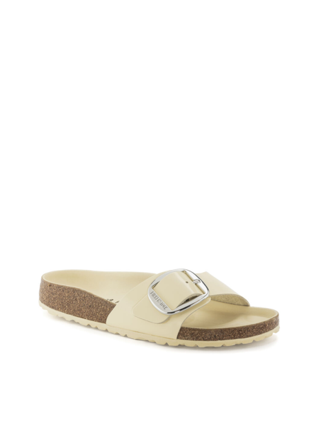 Klapki Madrid marki Birkenstock to model, który podbija serca kobiet na całym świecie. Odpowiedni dla stopy wąskiej i normalnej. Fason z jednym, regulowanym paskiem zapinanym na klamrę. Odpowiednio wyprofilowana wkładka wpływa na poprawę postawy i odciąża kręgosłup. Podeszwa jest uformowana w sposób, który chroni palce przed ewentualnymi obiciami. Nie wyciera się niezależnie od podłoża. Wykonana jest z pianki EVA, która jest obojętna chemicznie i wytrzymała pod względem fizycznym. W butach Birkenstock można chodzić po asfalcie lub kamienistej plaży, co nie powoduje dyskomfortu. Guma ta wspiera amortyzację,jest łatwa w czyszczeniu.