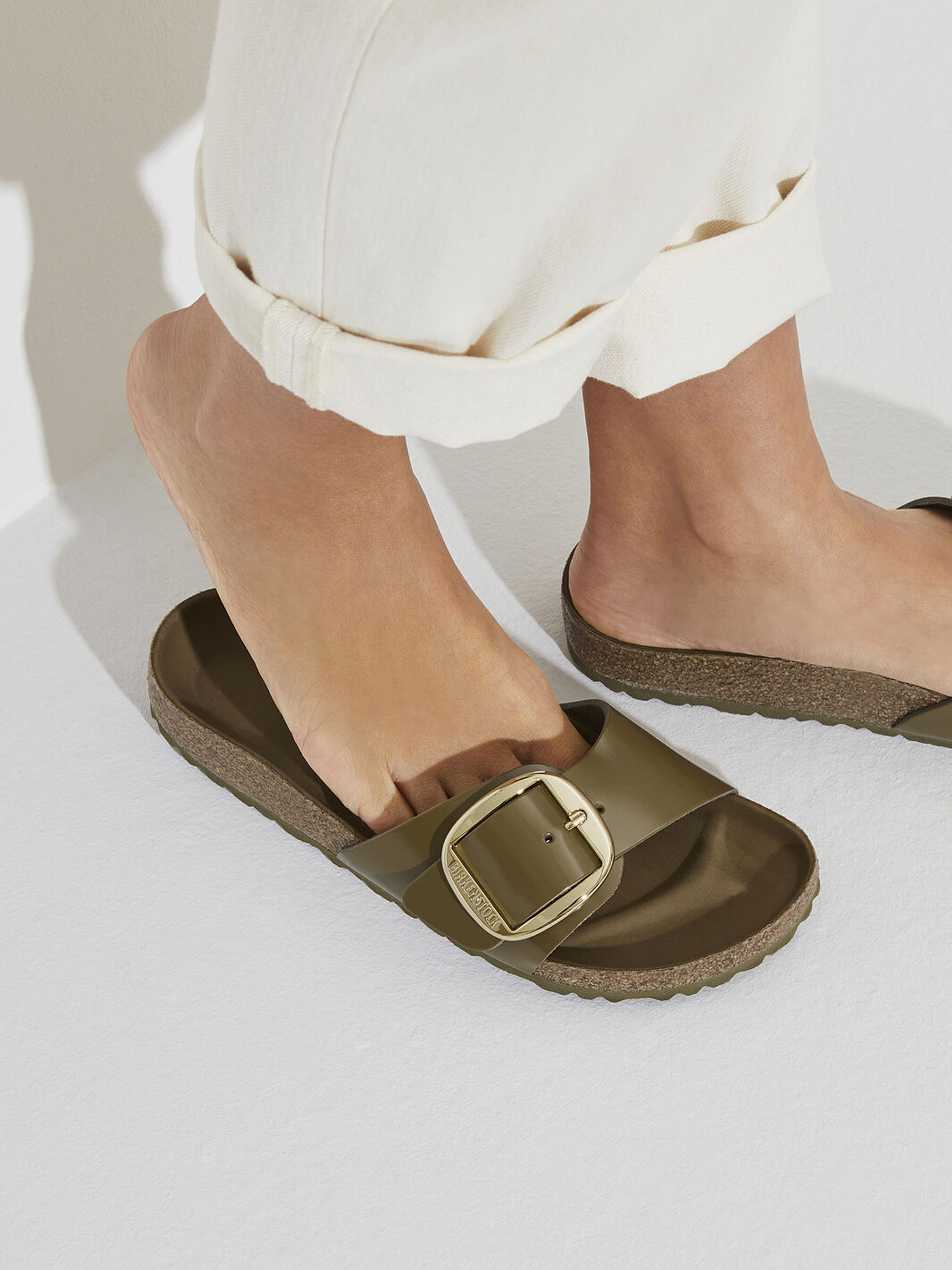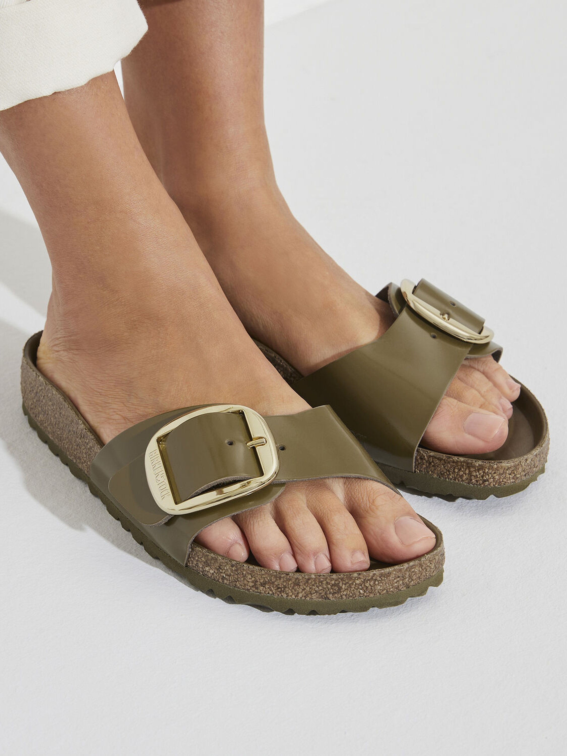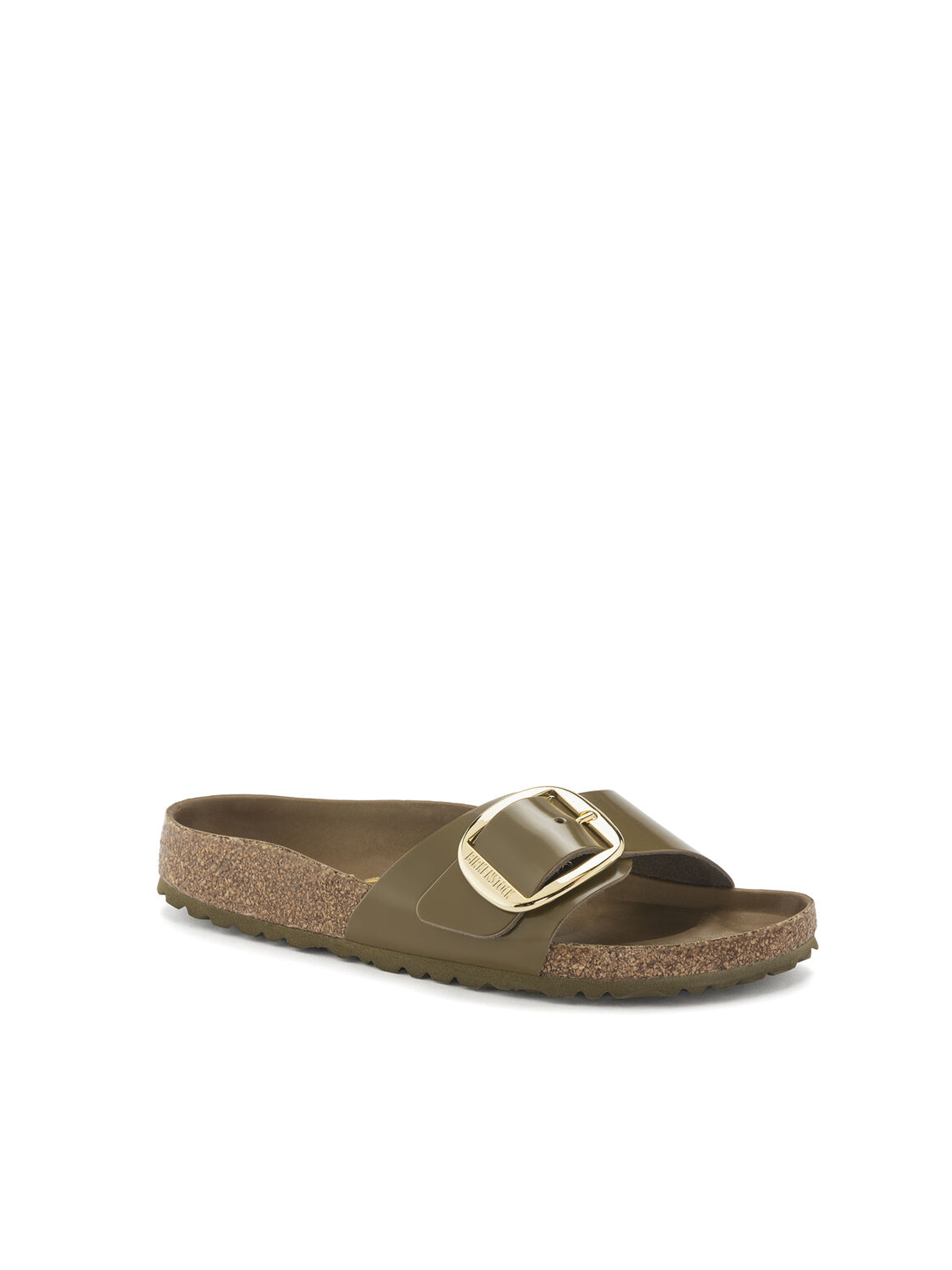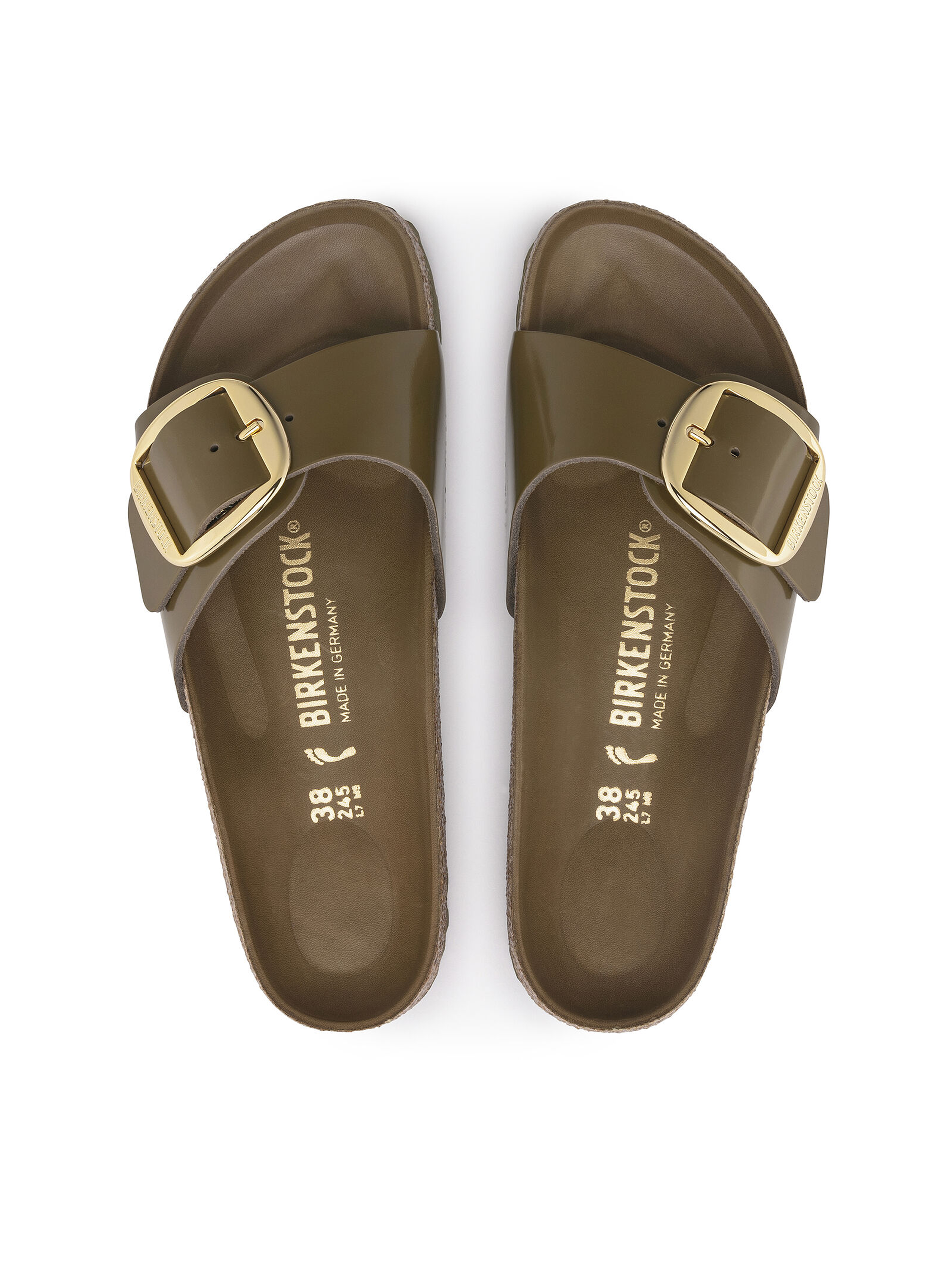 Klapki Madrid marki Birkenstock to model, który podbija serca kobiet na całym świecie. Odpowiedni dla stopy wąskiej i normalnej. Fason z jednym, regulowanym paskiem zapinanym na klamrę. Odpowiednio wyprofilowana wkładka wpływa na poprawę postawy i odciąża kręgosłup. Podeszwa jest uformowana w sposób, który chroni palce przed ewentualnymi obiciami. Nie wyciera się niezależnie od podłoża. Wykonana jest z pianki EVA, która jest obojętna chemicznie i wytrzymała pod względem fizycznym. W butach Birkenstock można chodzić po asfalcie lub kamienistej plaży, co nie powoduje dyskomfortu. Guma ta wspiera amortyzację,jest łatwa w czyszczeniu.