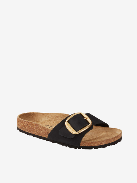 Klapki Madrid marki Birkenstock to model, który podbija serca kobiet na całym świecie. Odpowiedni dla stopy wąskiej i normalnej. Fason z jednym, regulowanym paskiem zapinanym na klamrę. Odpowiednio wyprofilowana wkładka wpływa na poprawę postawy i odciąża kręgosłup. Podeszwa jest uformowana w sposób, który chroni palce przed ewentualnymi obiciami. Nie wyciera się niezależnie od podłoża. Wykonana jest z pianki EVA, która jest obojętna chemicznie i wytrzymała pod względem fizycznym. W butach Birkenstock można chodzić po asfalcie lub kamienistej plaży, co nie powoduje dyskomfortu. Guma ta wspiera amortyzację,jest łatwa w czyszczeniu.