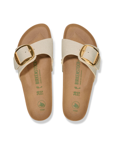 Klapki Madrid marki Birkenstock to model, który podbija serca kobiet na całym świecie. Odpowiedni dla stopy wąskiej i normalnej. Fason z jednym, regulowanym paskiem zapinanym na klamrę. Odpowiednio wyprofilowana wkładka wpływa na poprawę postawy i odciąża kręgosłup. Podeszwa jest uformowana w sposób, który chroni palce przed ewentualnymi obiciami. Nie wyciera się niezależnie od podłoża. Wykonana jest z pianki EVA, która jest obojętna chemicznie i wytrzymała pod względem fizycznym. W butach Birkenstock można chodzić po asfalcie lub kamienistej plaży, co nie powoduje dyskomfortu. Guma ta wspiera amortyzację,jest łatwa w czyszczeniu.