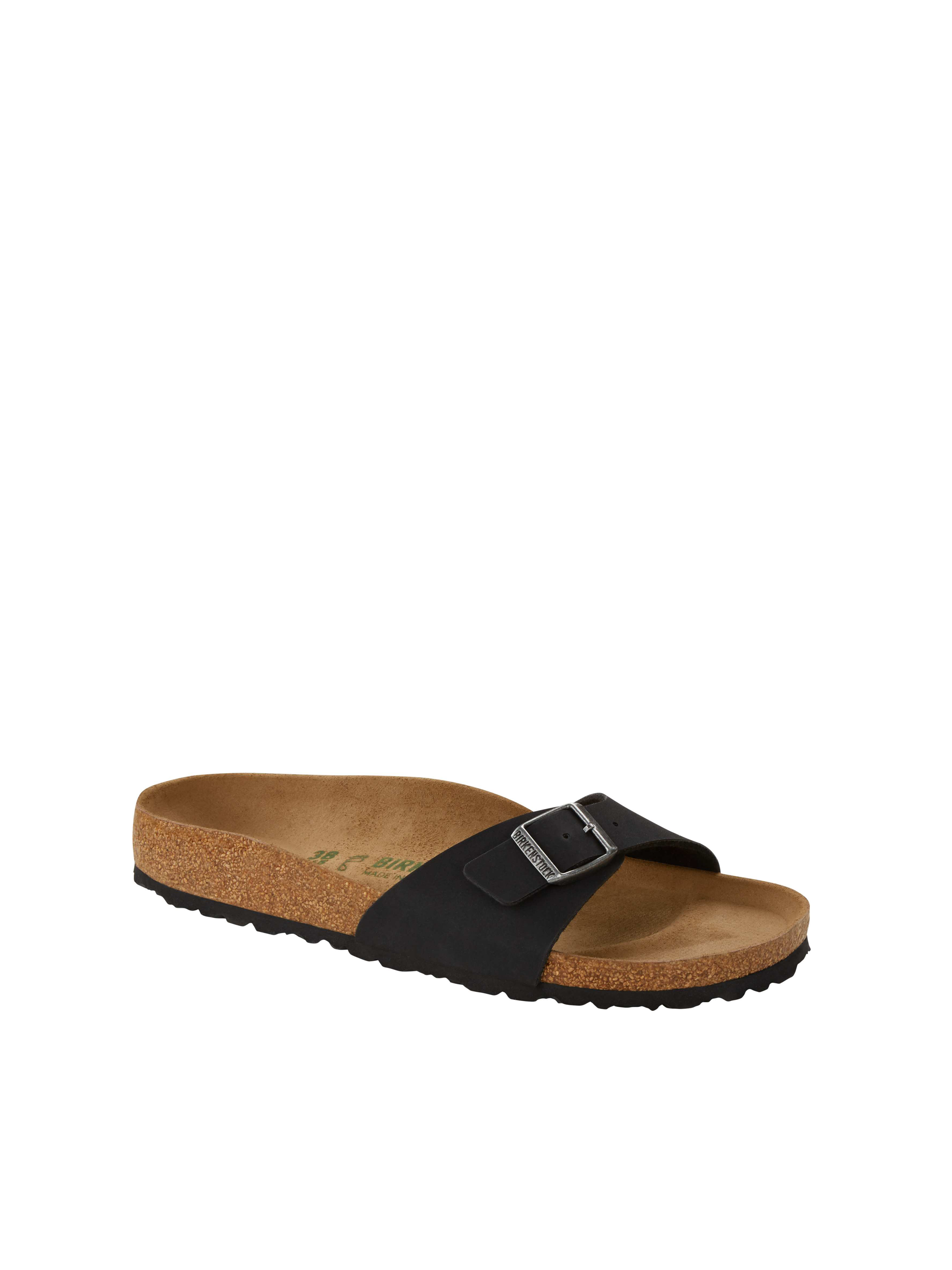 Klapki Madrid marki Birkenstock to model, który podbija serca kobiet na całym świecie. Odpowiedni dla stopy wąskiej i normalnej. Fason z jednym, regulowanym paskiem zapinanym na klamrę. Odpowiednio wyprofilowana wkładka wpływa na poprawę postawy i odciąża kręgosłup. Podeszwa jest uformowana w sposób, który chroni palce przed ewentualnymi obiciami. Nie wyciera się niezależnie od podłoża. Wykonana jest z pianki EVA, która jest obojętna chemicznie i wytrzymała pod względem fizycznym. W butach Birkenstock można chodzić po asfalcie lub kamienistej plaży, co nie powoduje dyskomfortu. Guma ta wspiera amortyzację,jest łatwa w czyszczeniu.Model wegański.