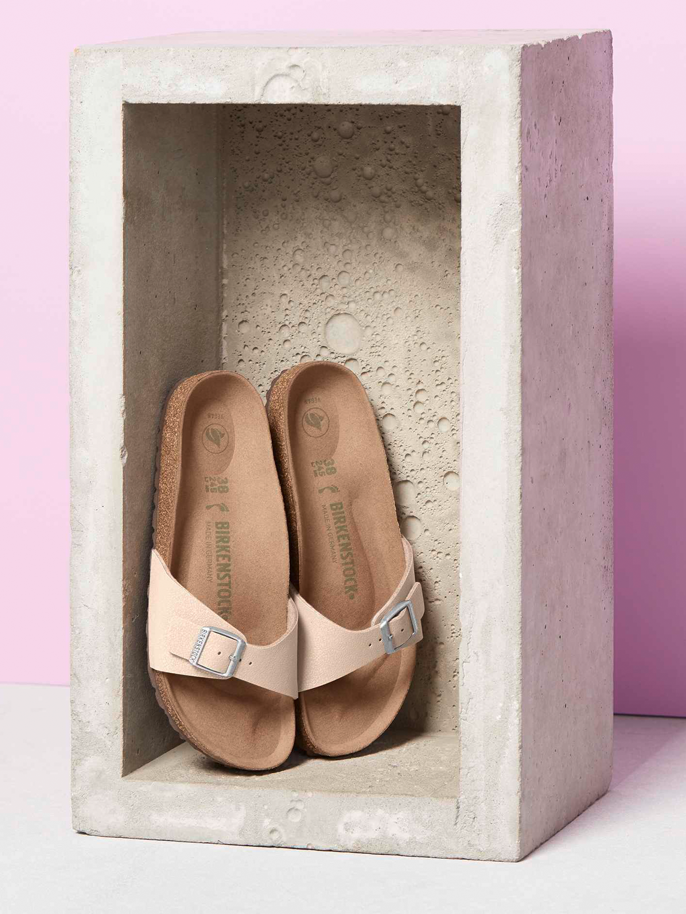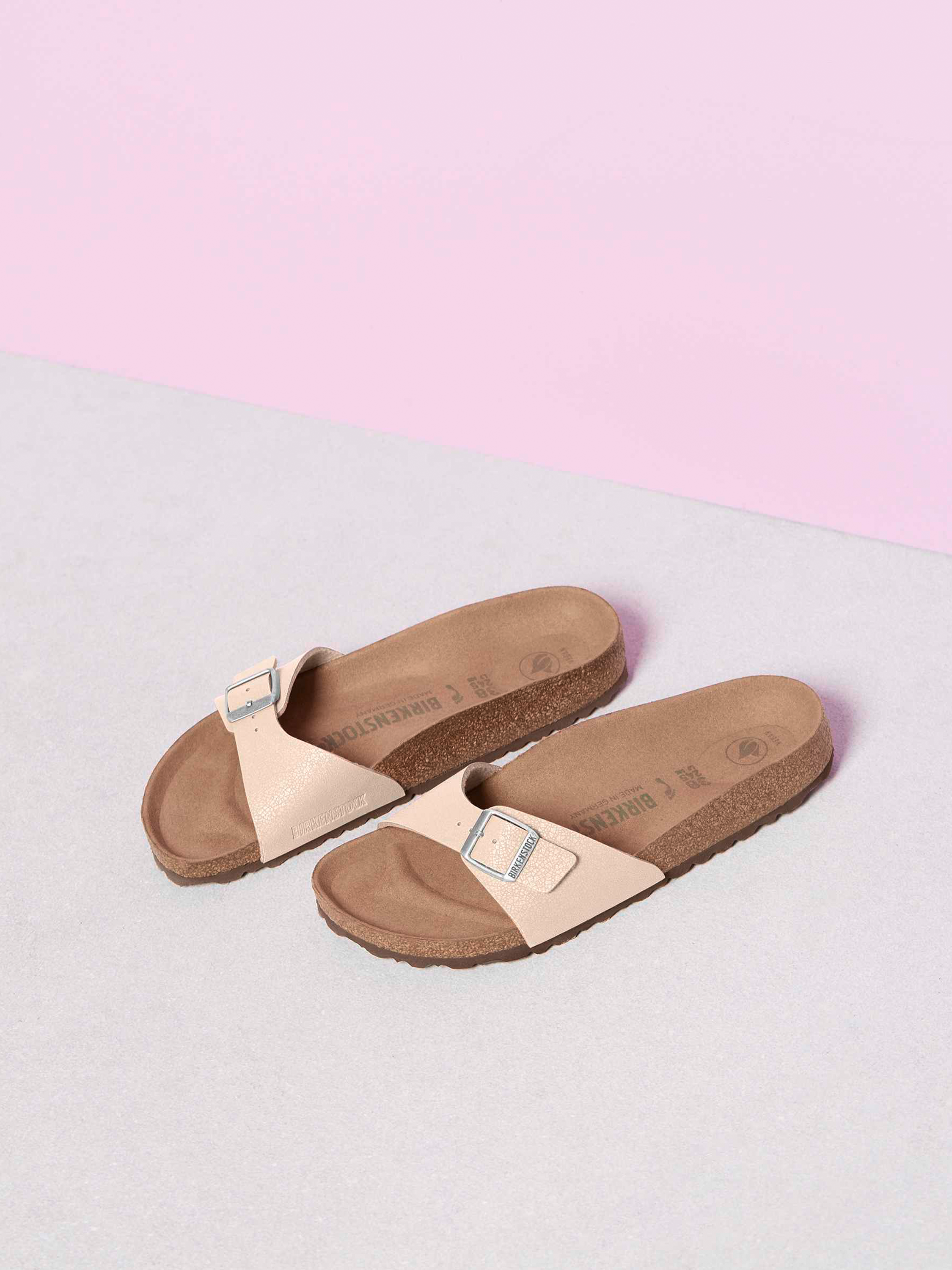 Klapki Madrid marki Birkenstock to model, który podbija serca kobiet na całym świecie. Odpowiedni dla stopy wąskiej i normalnej. Fason z jednym, regulowanym paskiem zapinanym na klamrę. Odpowiednio wyprofilowana wkładka wpływa na poprawę postawy i odciąża kręgosłup. Podeszwa jest uformowana w sposób, który chroni palce przed ewentualnymi obiciami. Nie wyciera się niezależnie od podłoża. Wykonana jest z pianki EVA, która jest obojętna chemicznie i wytrzymała pod względem fizycznym. W butach Birkenstock można chodzić po asfalcie lub kamienistej plaży, co nie powoduje dyskomfortu. Guma ta wspiera amortyzację,jest łatwa w czyszczeniu. Model wegański.