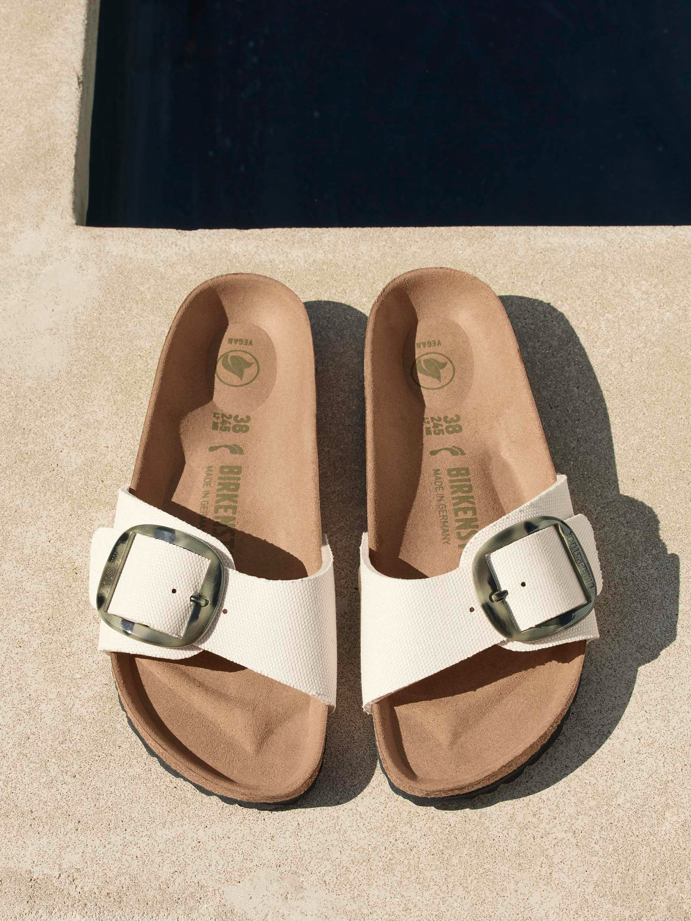 Klapki Madrid marki Birkenstock to model, który podbija serca kobiet na całym świecie. Odpowiedni dla stopy wąskiej i normalnej. Fason z jednym, regulowanym paskiem zapinanym na klamrę. Odpowiednio wyprofilowana wkładka wpływa na poprawę postawy i odciąża kręgosłup. Podeszwa jest uformowana w sposób, który chroni palce przed ewentualnymi obiciami. Nie wyciera się niezależnie od podłoża. Wykonana jest z pianki EVA, która jest obojętna chemicznie i wytrzymała pod względem fizycznym. W butach Birkenstock można chodzić po asfalcie lub kamienistej plaży, co nie powoduje dyskomfortu. Guma ta wspiera amortyzację,jest łatwa w czyszczeniu.
