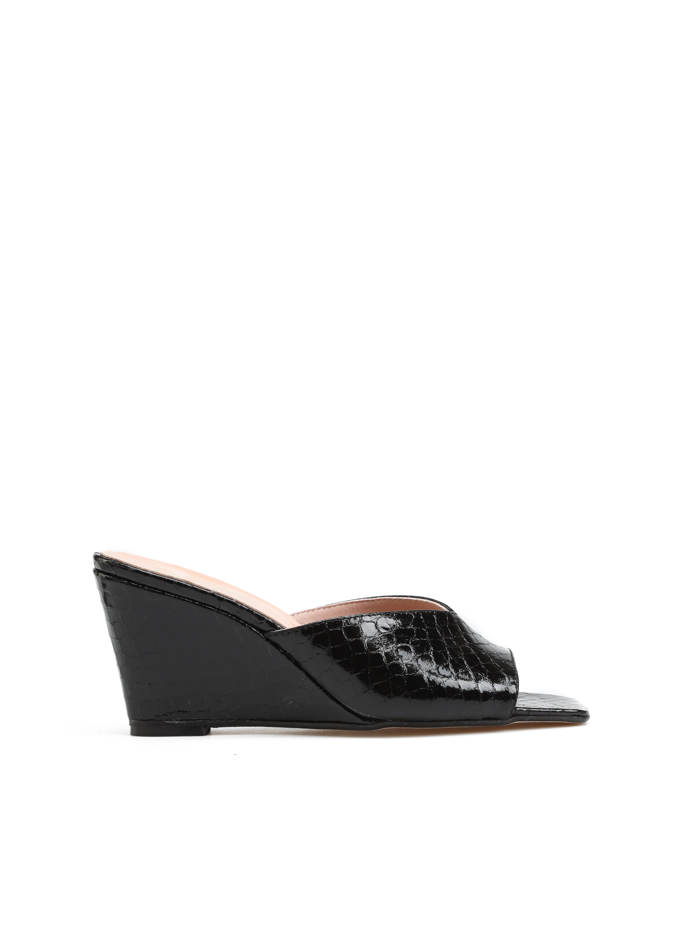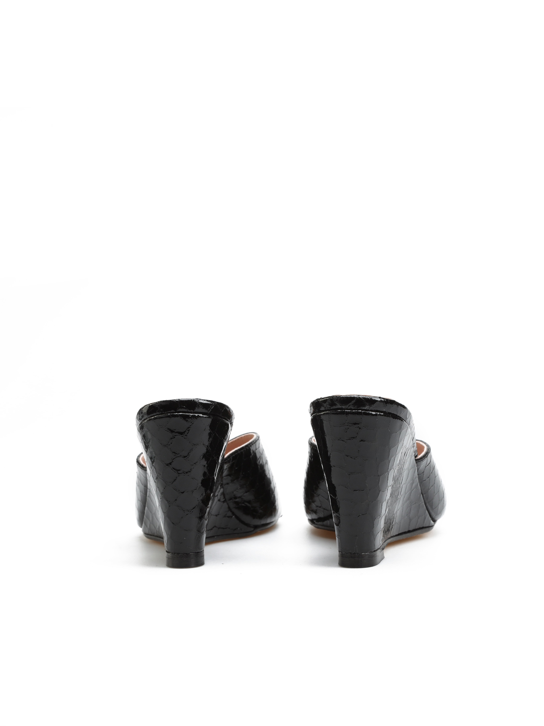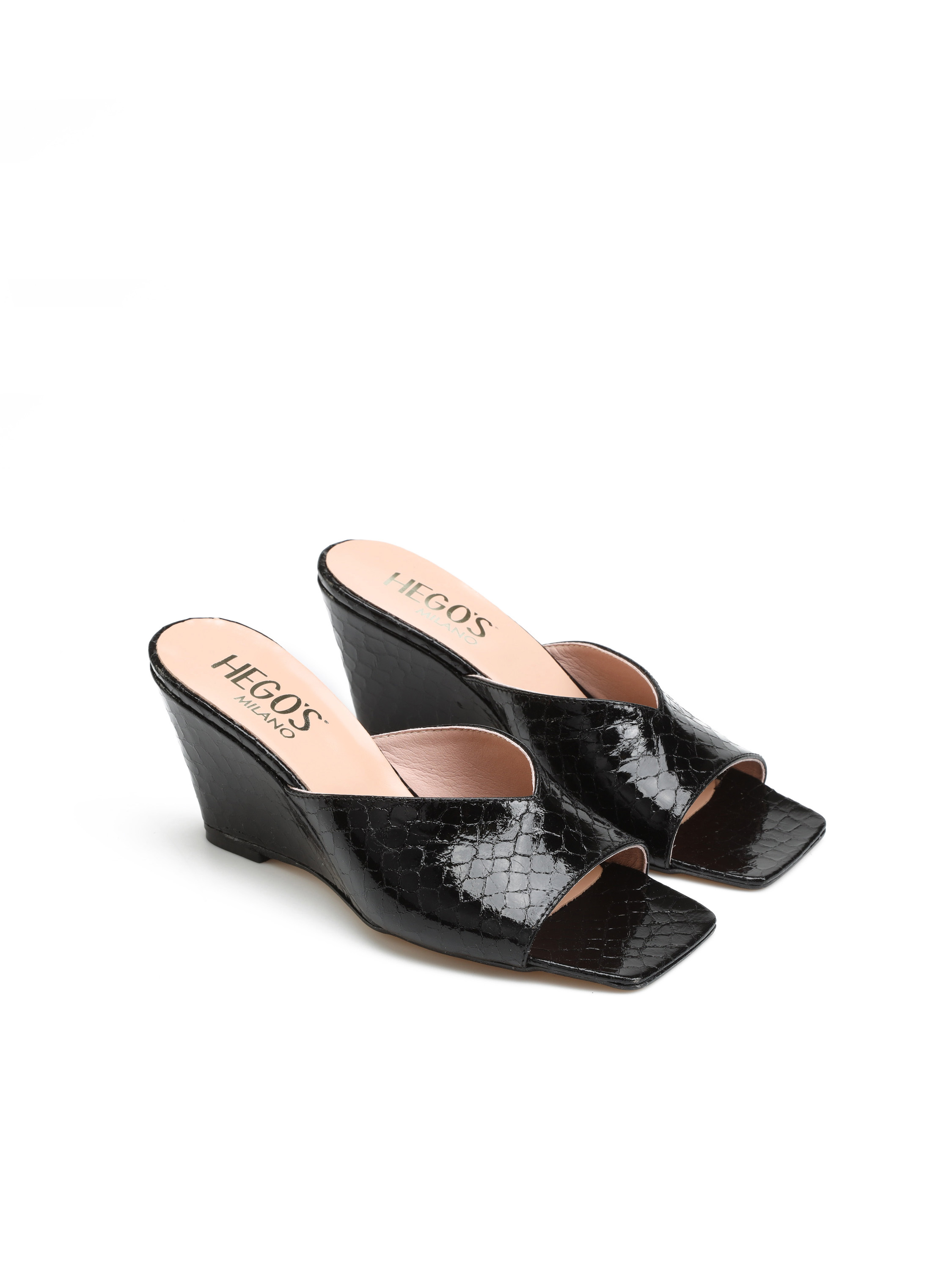 Klapki na koturnie HEGO'S Milano to moda prosto z włoskich ulic. Wsuwane klapki w połyskującym, czarnym kolorze wykonane są z naturalnej skóry licowej. Model posiada średniej wysokości, stabilny obcas na koturnie. Klapki HEGO'S Milano będą uzupełnieniem letniej garderoby kobiety.