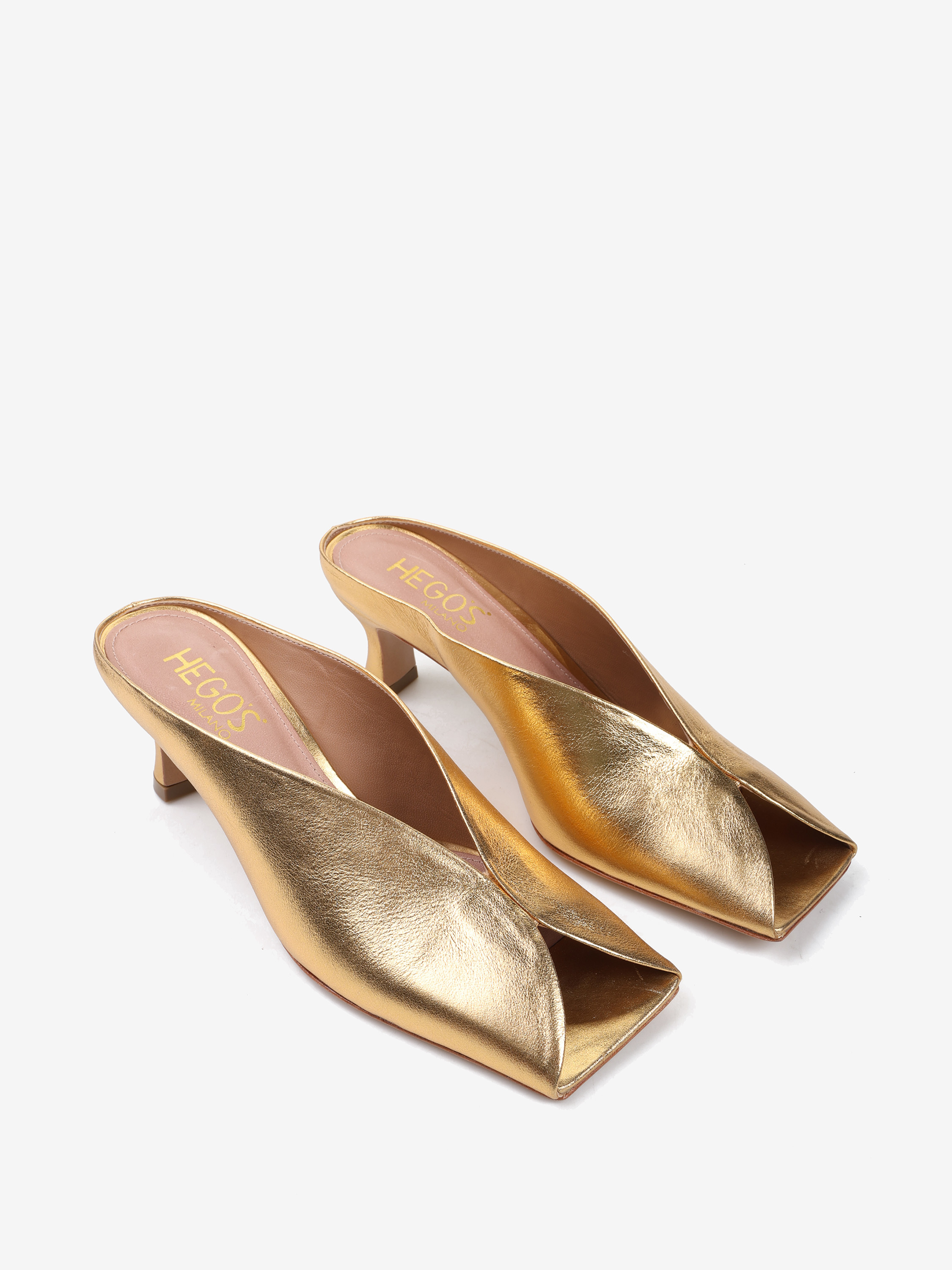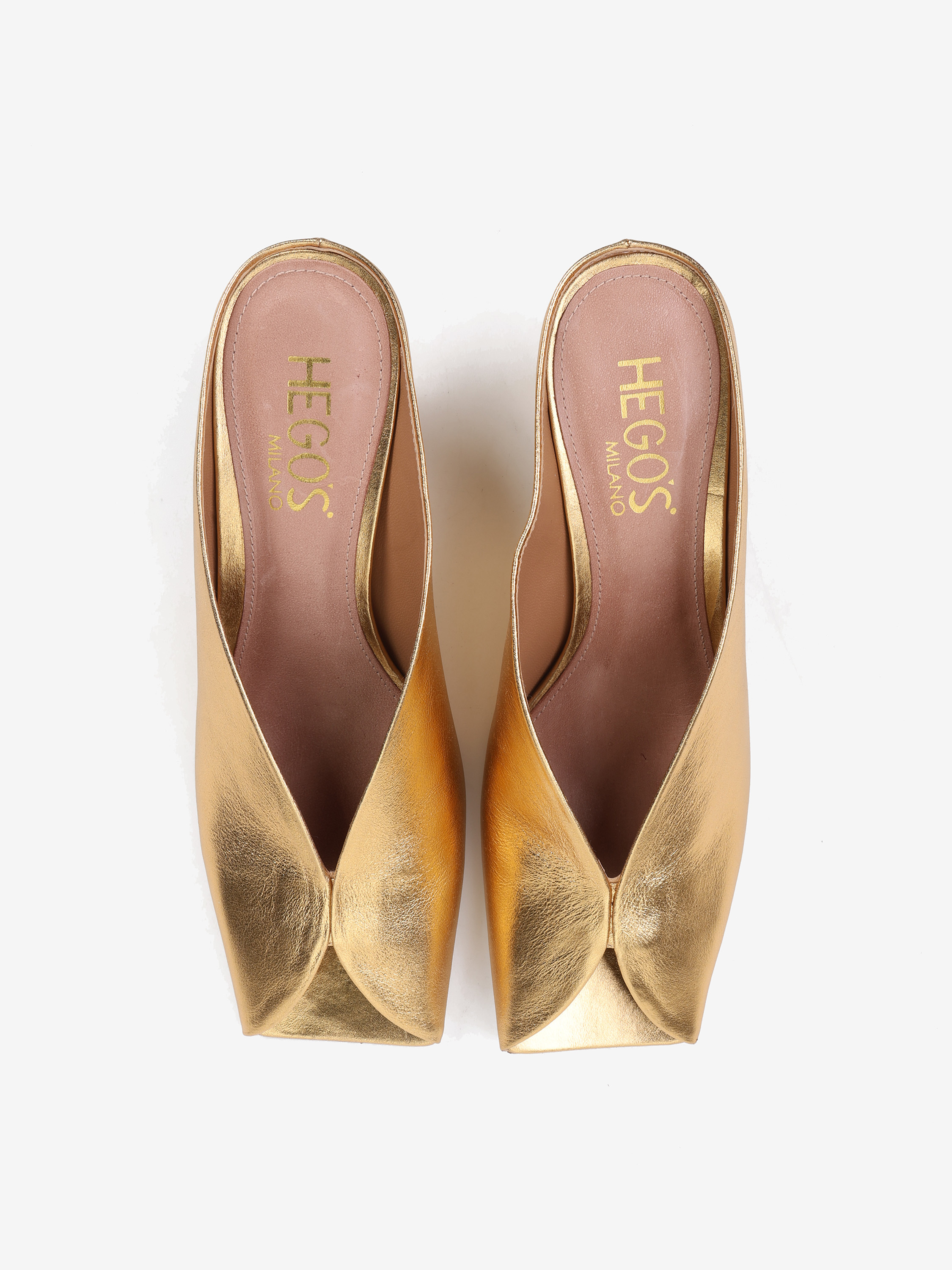 ZŁOTE KLAPKI NA NISKIM OBCASIE HEGO'S Milano