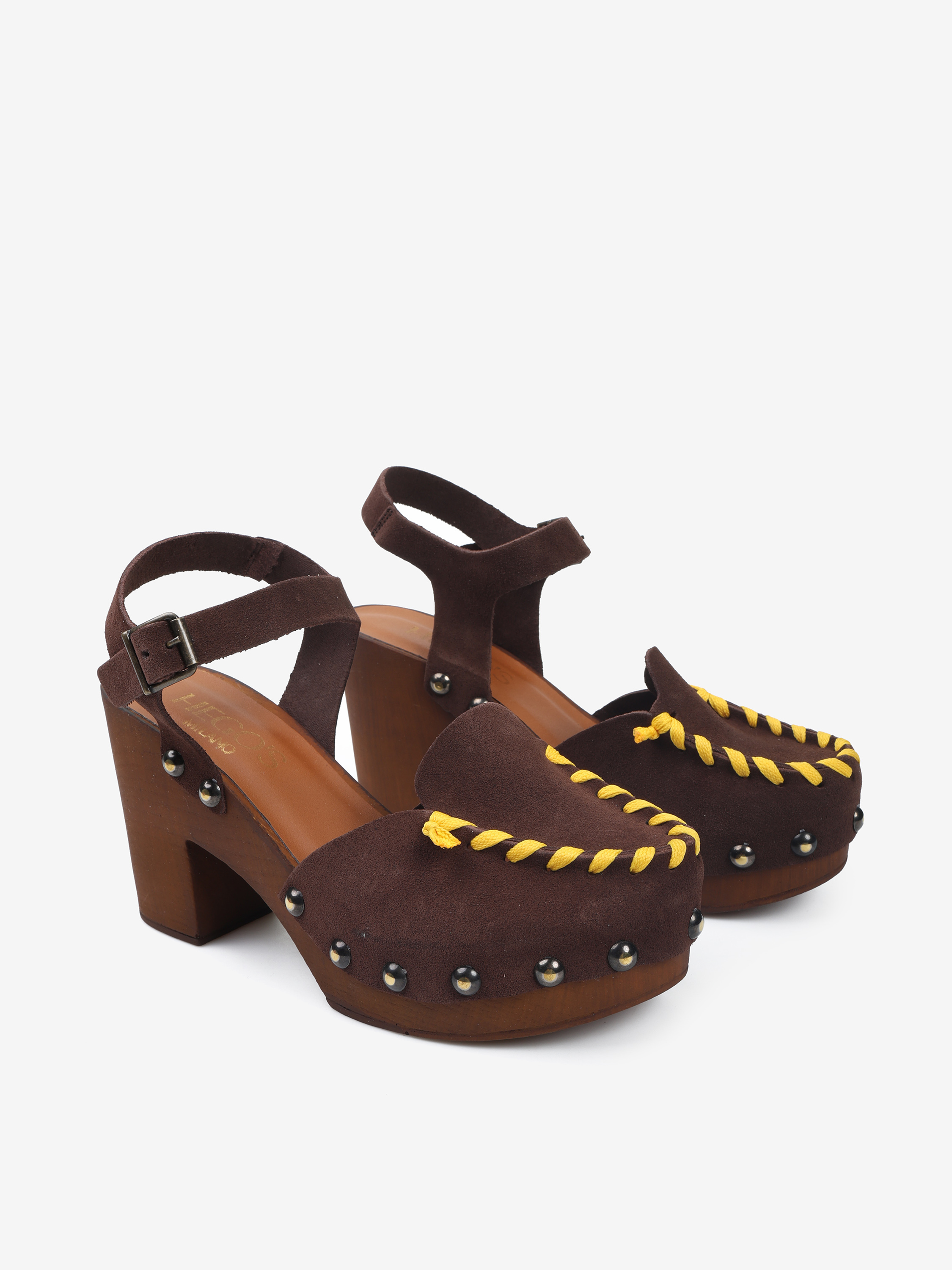 BRĄZOWE SANDAŁY NA OBCASIE HEGO'S Milano