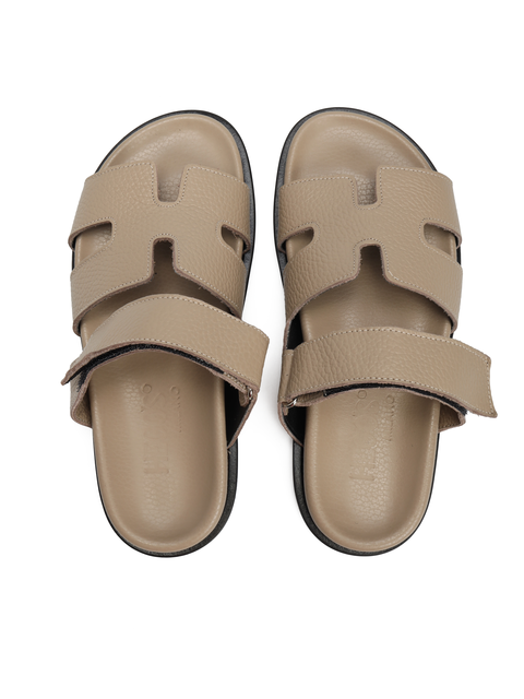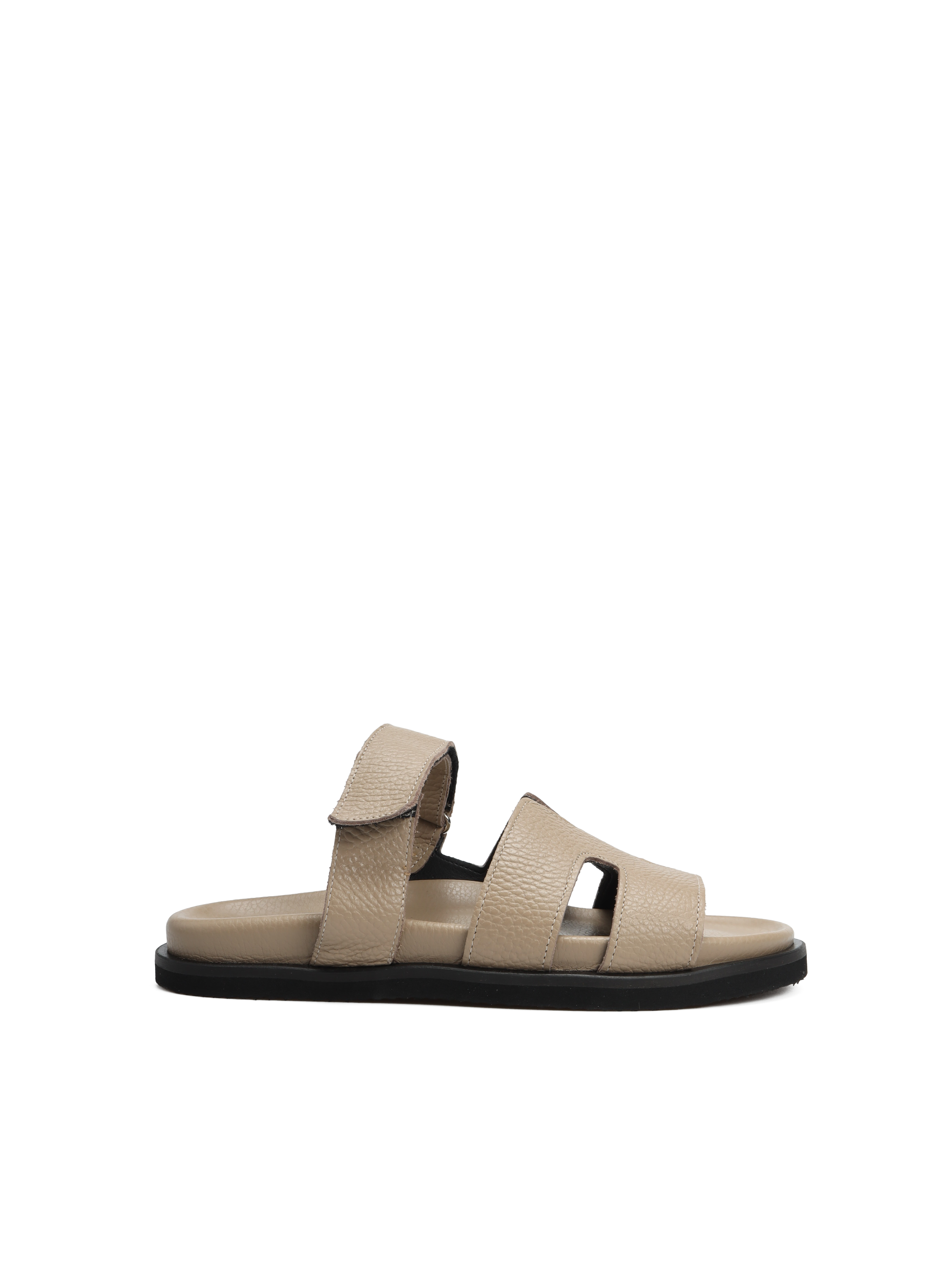 Modne klapki wykonane z mięsistej skóry. Zapięcie na rzep pozwala na idealne dopasowanie.