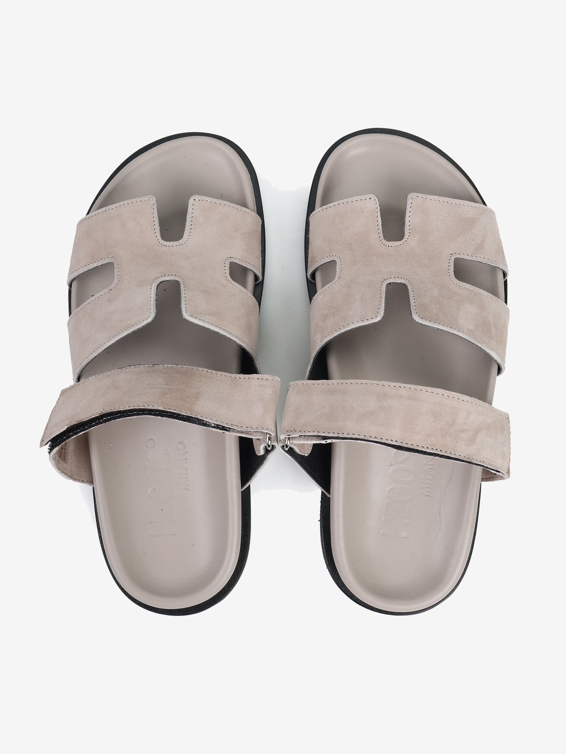 Modne klapki wykonane ze zamszu. Zapięcie na rzep pozwala na idealne dopasowanie.
