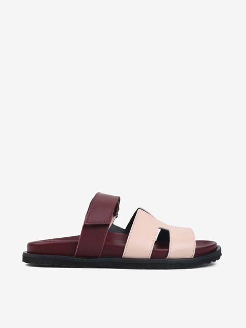 Modne klapki wykonane z mięsistej skóry. Zapięcie na rzep pozwala na idealne dopasowanie.
