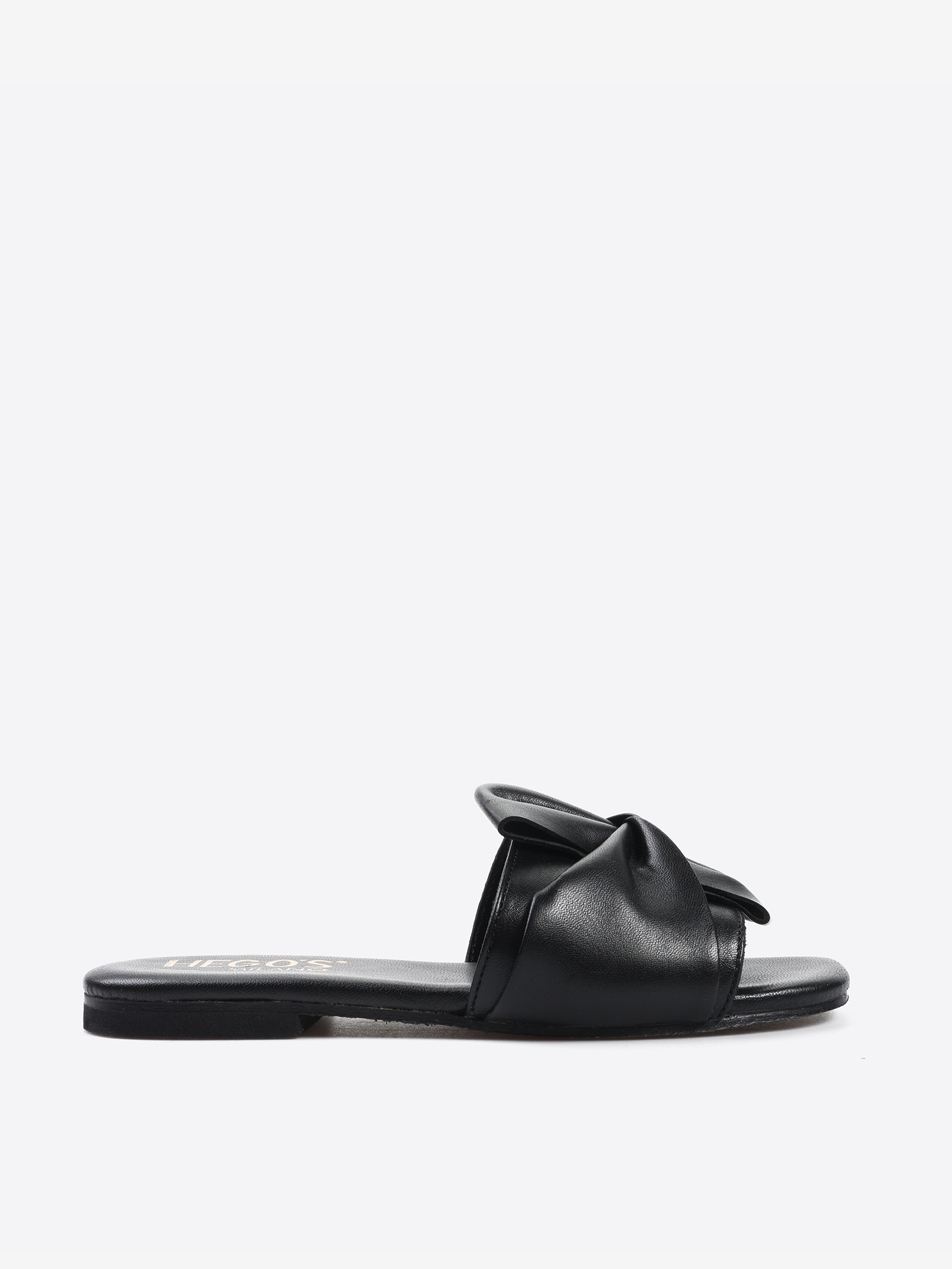 Klapki z ozdobnym wiązaniem wykonane z miękkiej, delikatnej skóry.