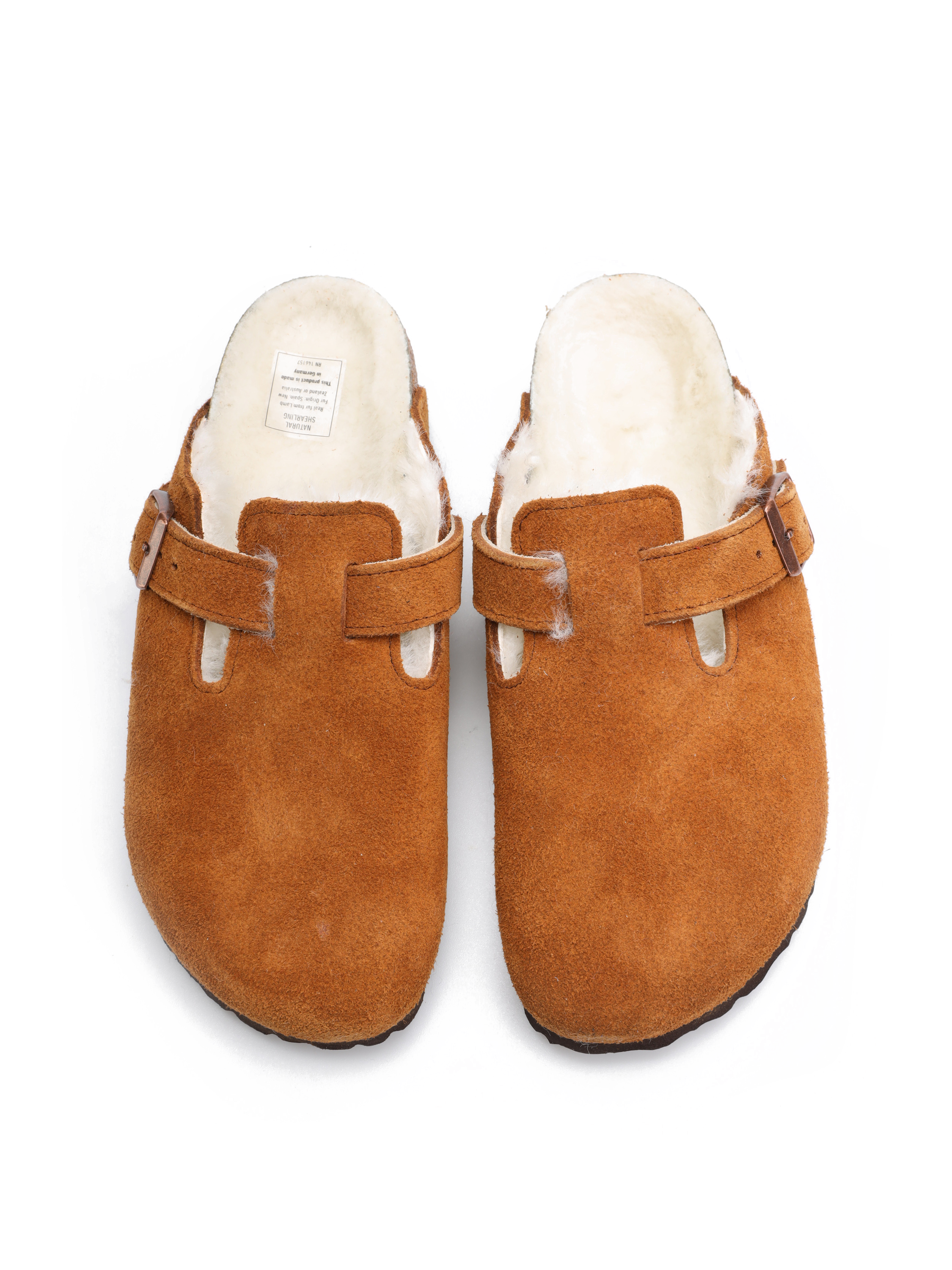 Buty wykonane są z naturalnej skóry zamszowej. Wnętrze podszyte jest miękką wełną jagnięcą, która posiada naturalne właściwości termoregulacyjne - grzeje, gdy jest zimno i chłodzi podczas upałów. Podeszwa to oczywiście korek połączony z pianką EVA. Pianka EVA jest obojętna chemicznie i wytrzymała pod względem fizycznym. W butach Birkenstock można chodzić po asfalcie lub kamienistej plaży, co nie powoduje dyskomfortu. Guma ta wspiera amortyzację. Łatwa w czyszczeniu.