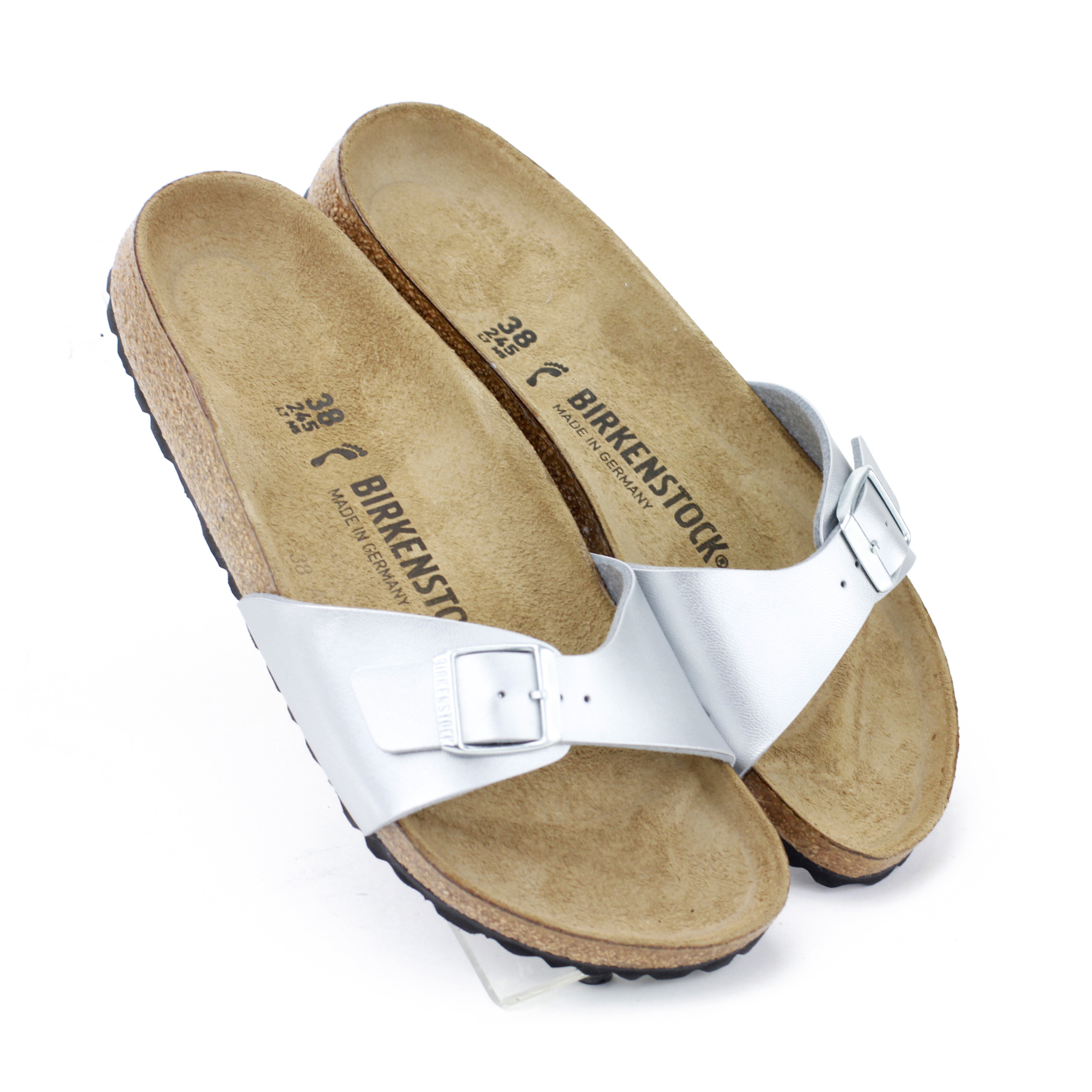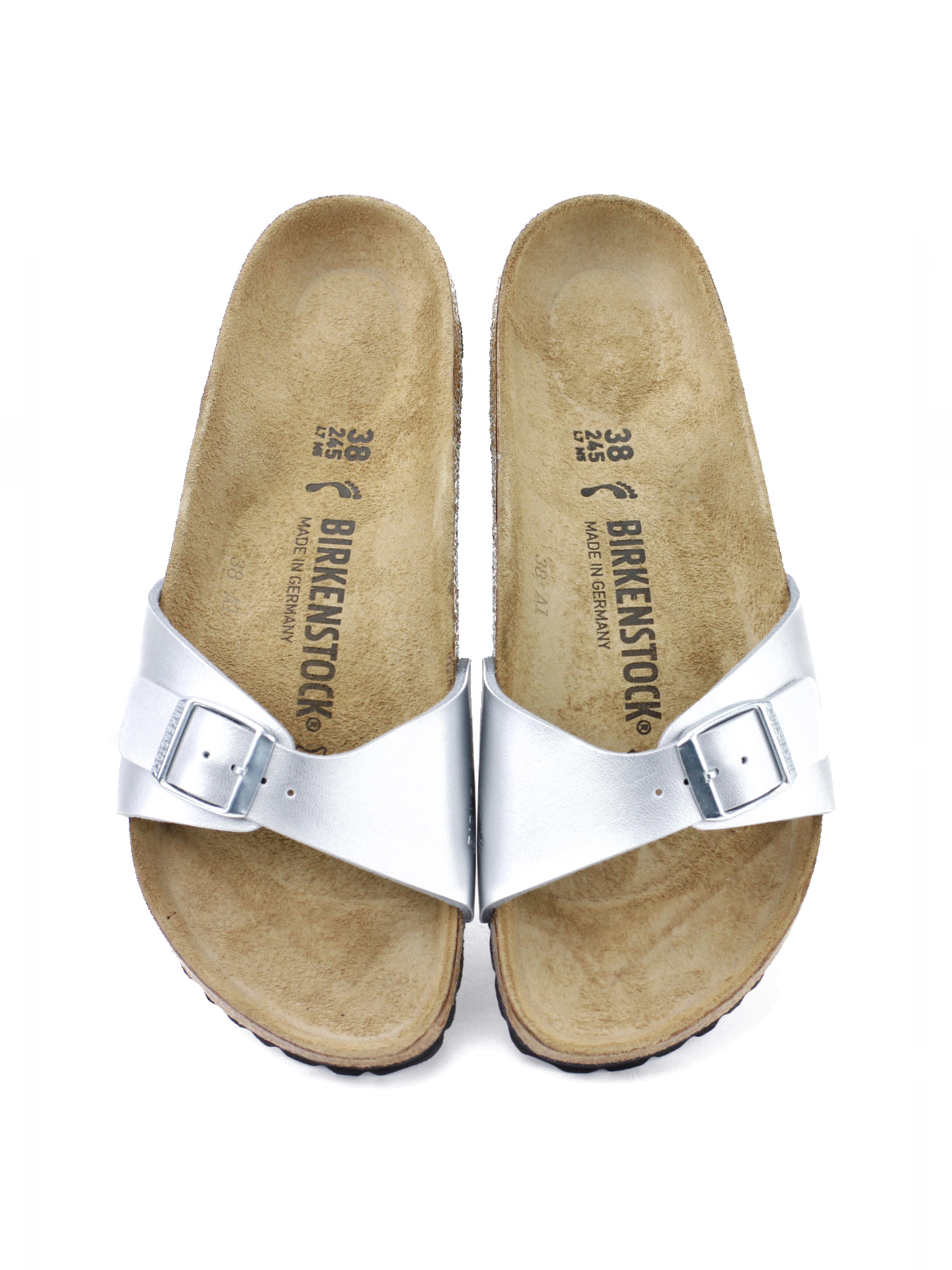 Fason z jednym, regulowanym paskiem zapinanym na klamrę. Odpowiednio wyprofilowana wkładka wpływa na poprawę postawy i odciąża kręgosłup. Podeszwa jest uformowana w sposób, który chroni palce przed ewentualnymi obiciami. Nie wyciera się niezależnie od podłoża. Wykonana jest z pianki EVA, która jest obojętna chemicznie i wytrzymała pod względem fizycznym. W butach Birkenstock można chodzić po asfalcie lub kamienistej plaży, co nie powoduje dyskomfortu. Guma ta wspiera amortyzację,jest łatwa w czyszczeniu.