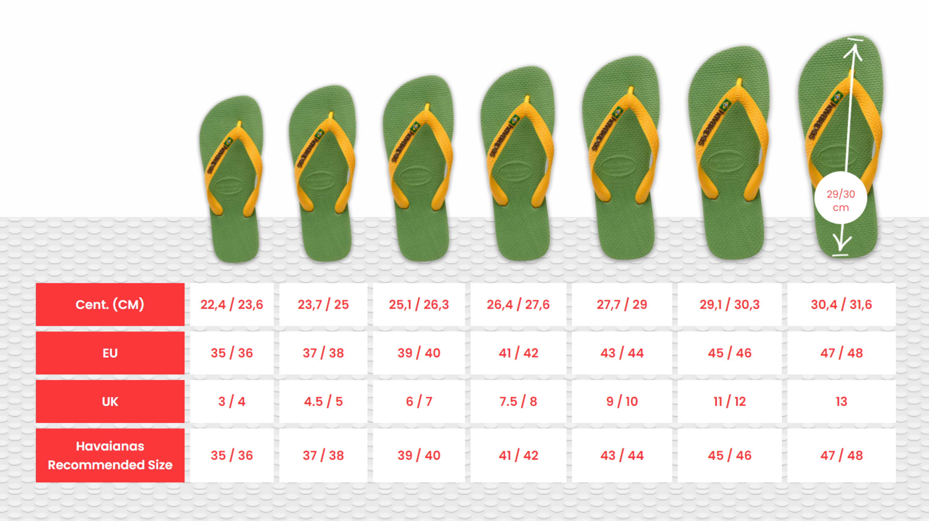 Wysokiej jakości, elastyczne tworzywo, z którego są wykonane zapobiega obcieraniu oraz sprawia, że idealnie dopasowują się do stopy. Dzięki swojej szerokiej ofercie, w której znajdują się japonki w wielu kolorach i printach każdy znajdzie coś dla siebie. Wygoda i komfort jaką zapewniają buty marki Havaianas sprawia, że świetnie sprawdzą się zarówno na plaży czy basenie, jak i podczas codziennych czynności.