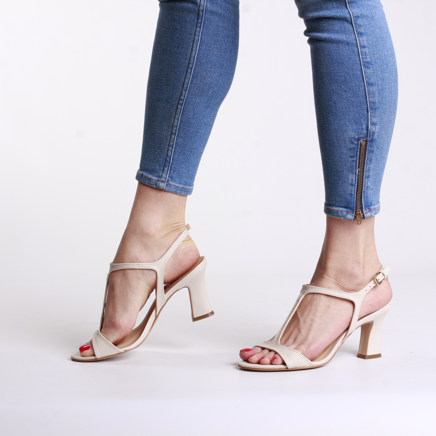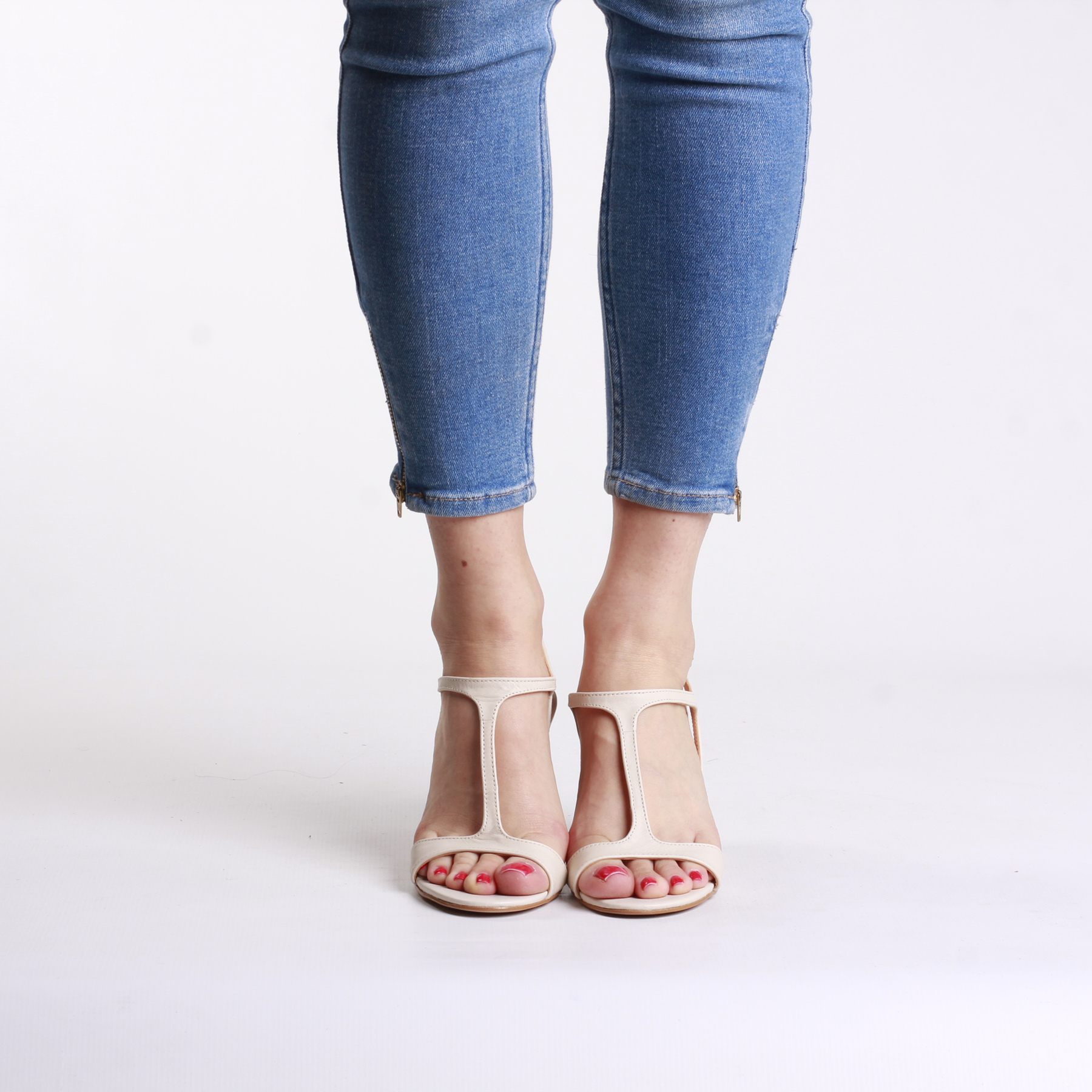 KREMOWE SANDAŁY NA OBCASIE HEGO'S MILANO