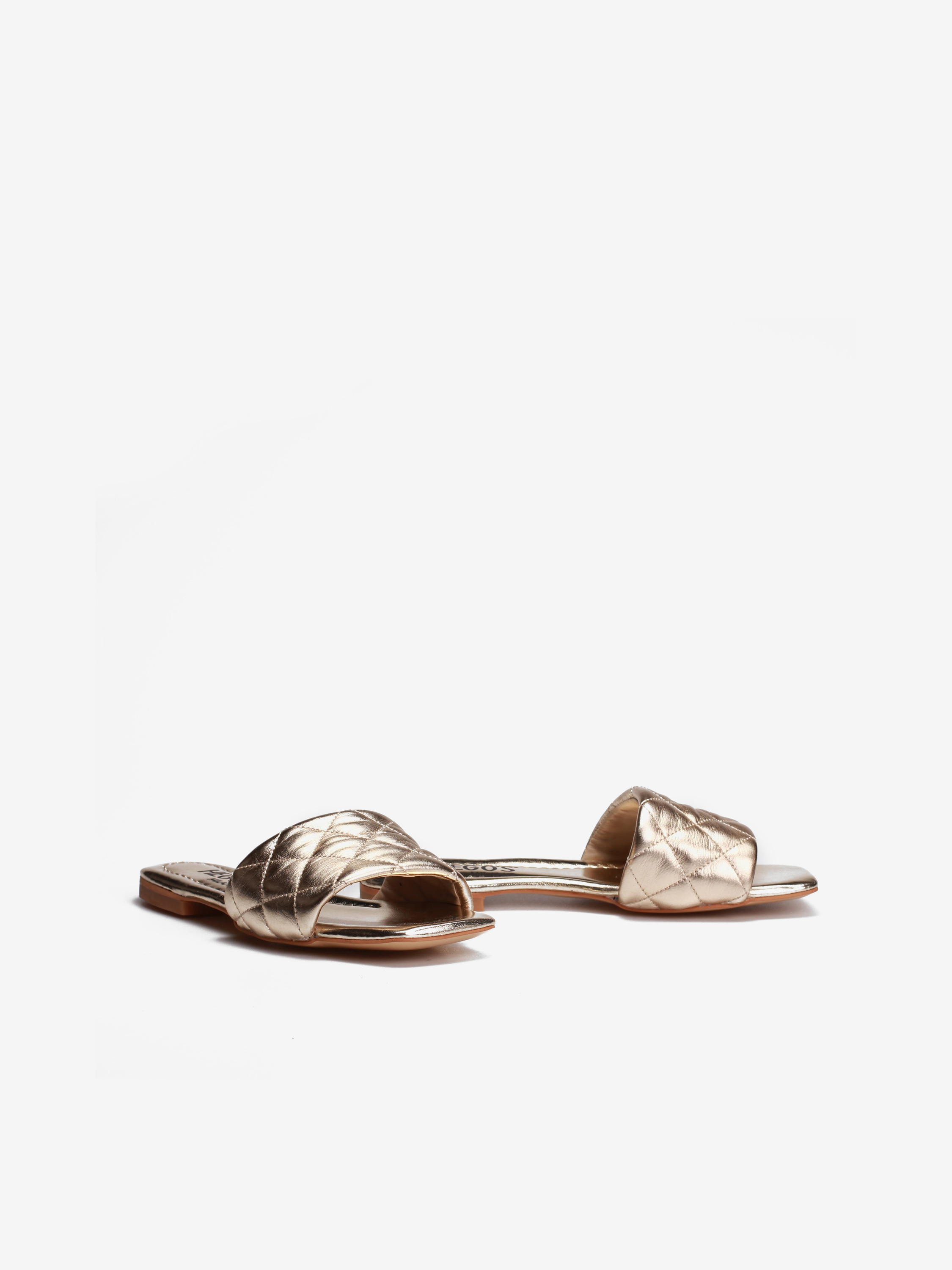 Wsuwane klapki na płaskim obcasie to model idealny na lato. Modna, metaliczna cholewka wykonana jest z naturalnej skóry. Szeroki, pleciony pasek dobrze trzyma stopę. Klapki będą uzupełnieniem wakacyjnych stylizacji.