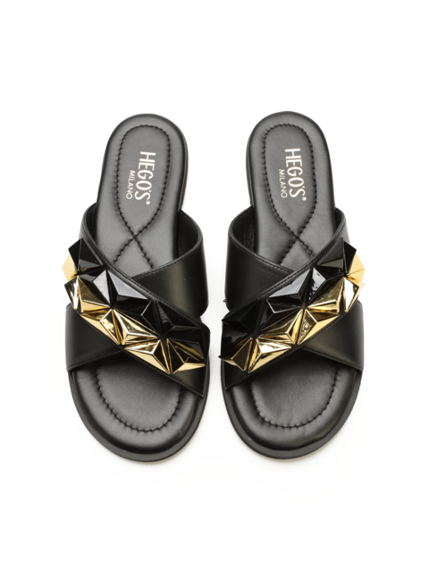 Cenisz sobie komfort i lubisz czarować ciekawym lookiem? Te klapki zostały stworzone z myślą o Tobie! Niezwykle lekkie i wygodne klapki HEGO'S idealnie sprawdzą się na długie i upalne dni. Wykonane z wysokiej jakości skóry gwarantują wygodę na wiele godzin. Skrzyżowane paski z dodatkiem ćwieków nadadzą całej stylizacji pazura! Mrrau!