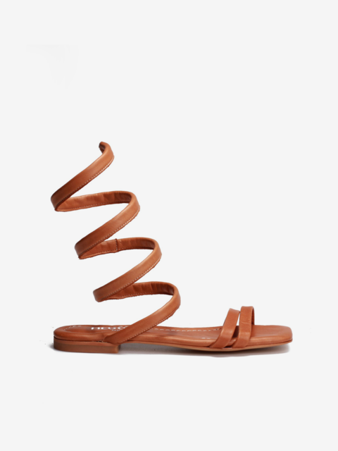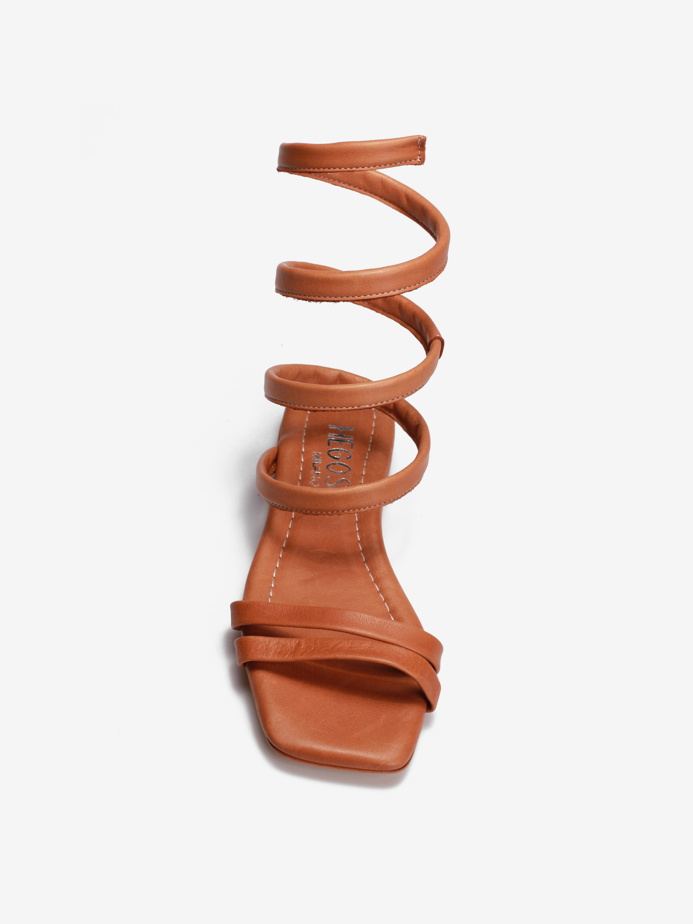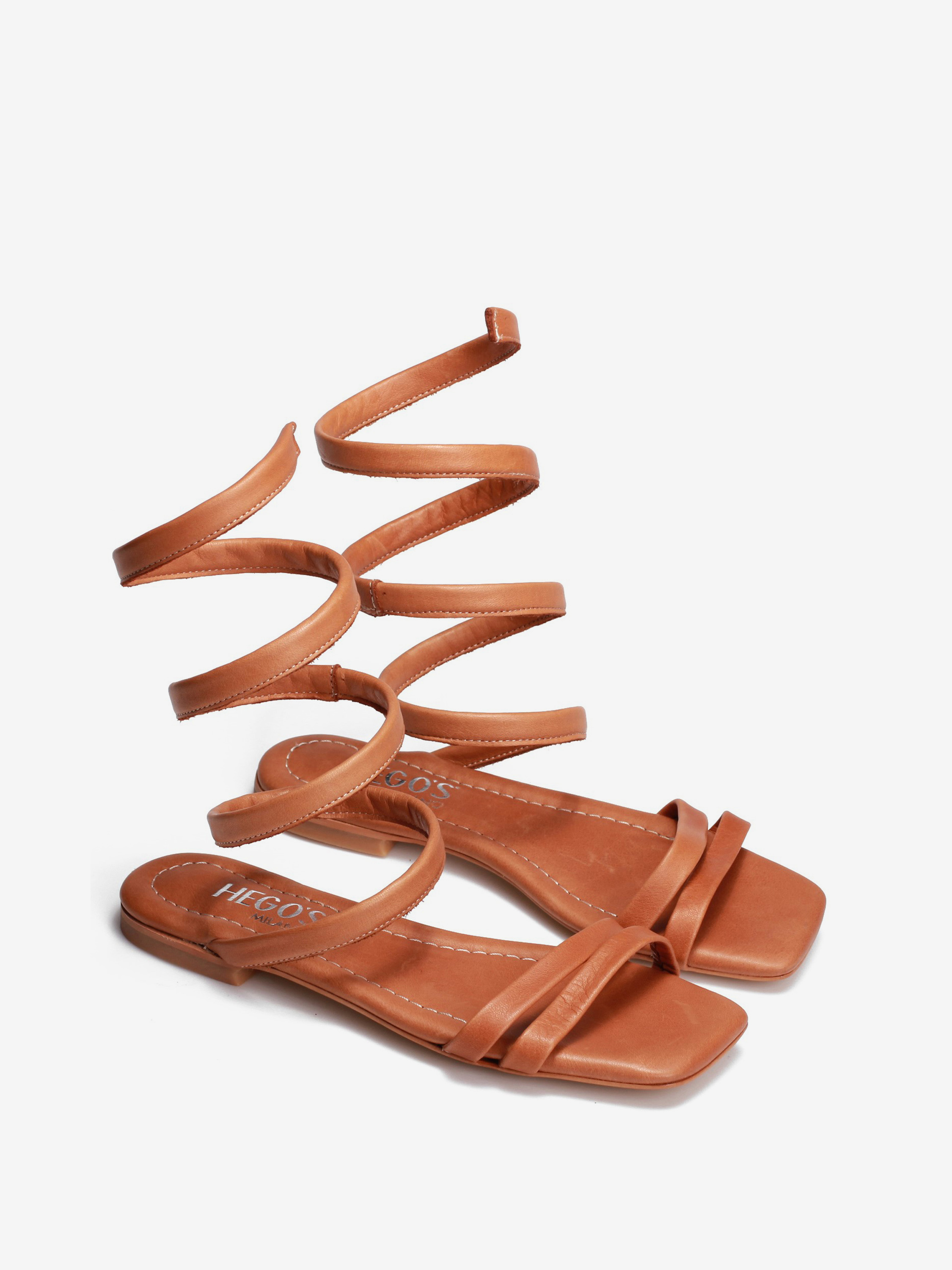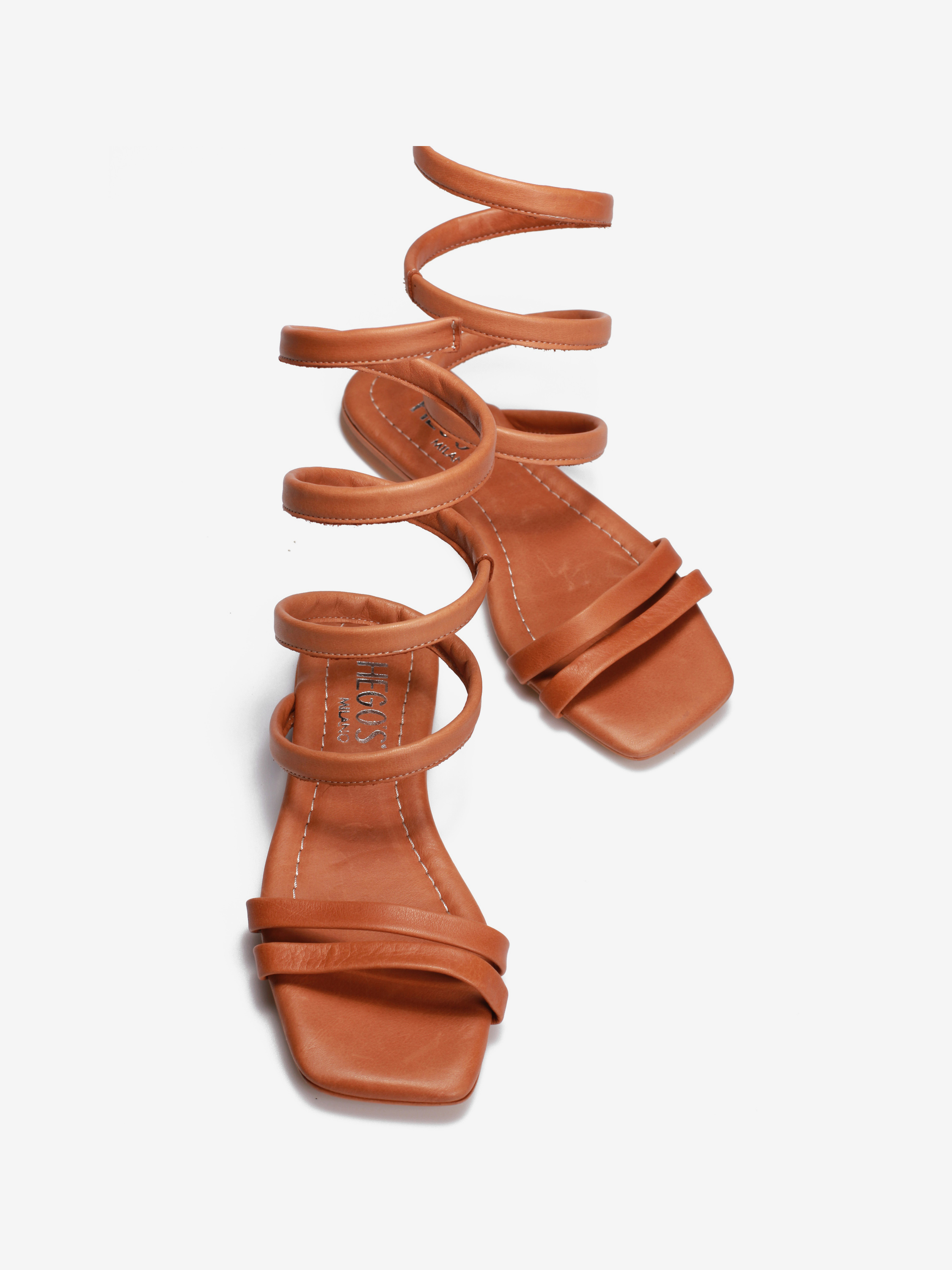 Wsuwane sandały na płaskim obcasie wykonane są z naturalnej skóry. Cholewka w rudym kolorze posiada sztywny pasek zawijany wokół nogi. Oryginalny model będzie uzupełnieniem modnej garderoby kobiety.