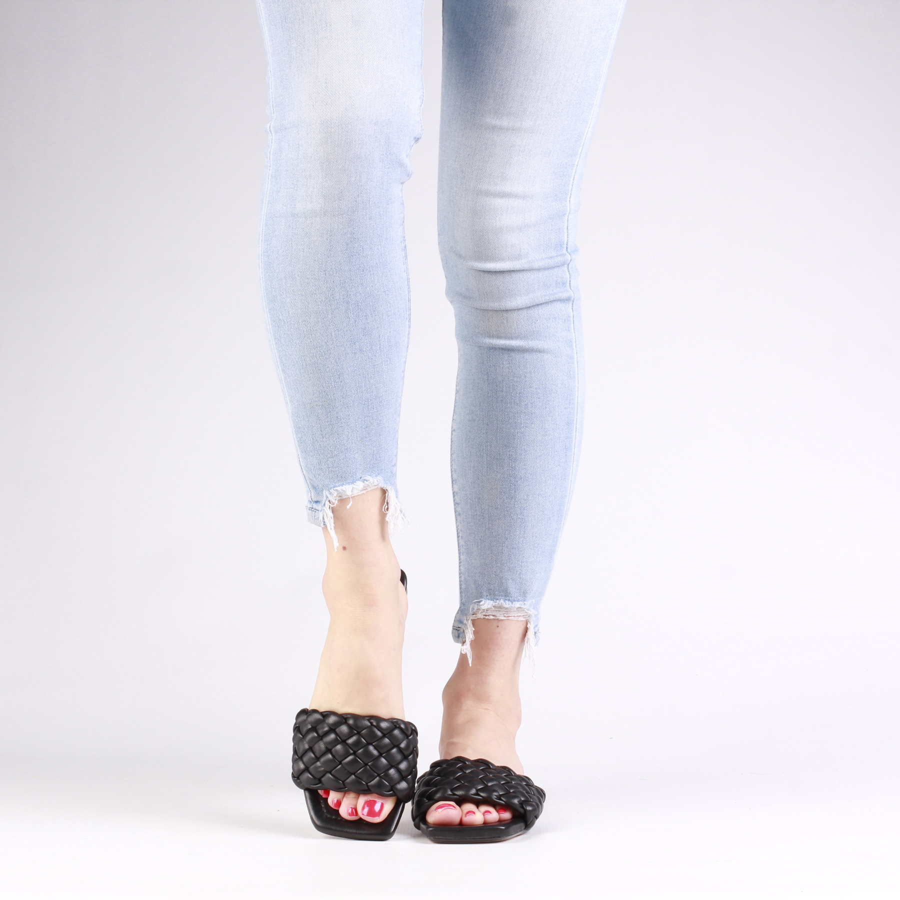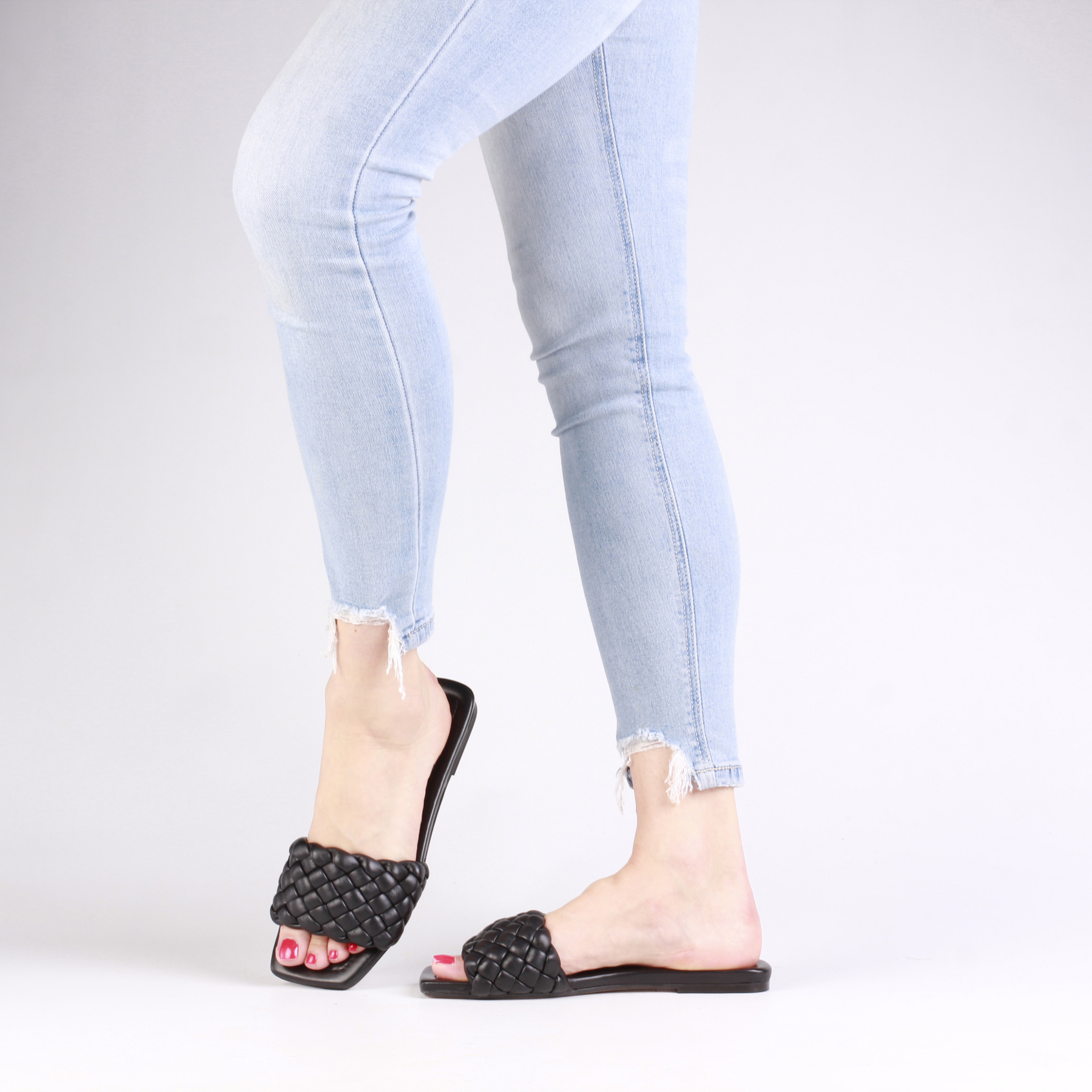 Niezwykle wygodne, stylowe klapki muszą znaleźć się w szafie każdej kobiety w sezonie SS21! Cholewka wykonana z wysokiej jakości miękkiego tworzywa w połączeniu ze skórzaną wkładką gwarantuje dopasowanie do stopy stopy i komfort przez wiele godzin na nogach. Charakterystyczny kwadratowy nosek oraz szeroki, pleciony pasek sprawia, że klasyczny design nabiera charakteru. Nikt nie przejdzie obok nich obojętnie!