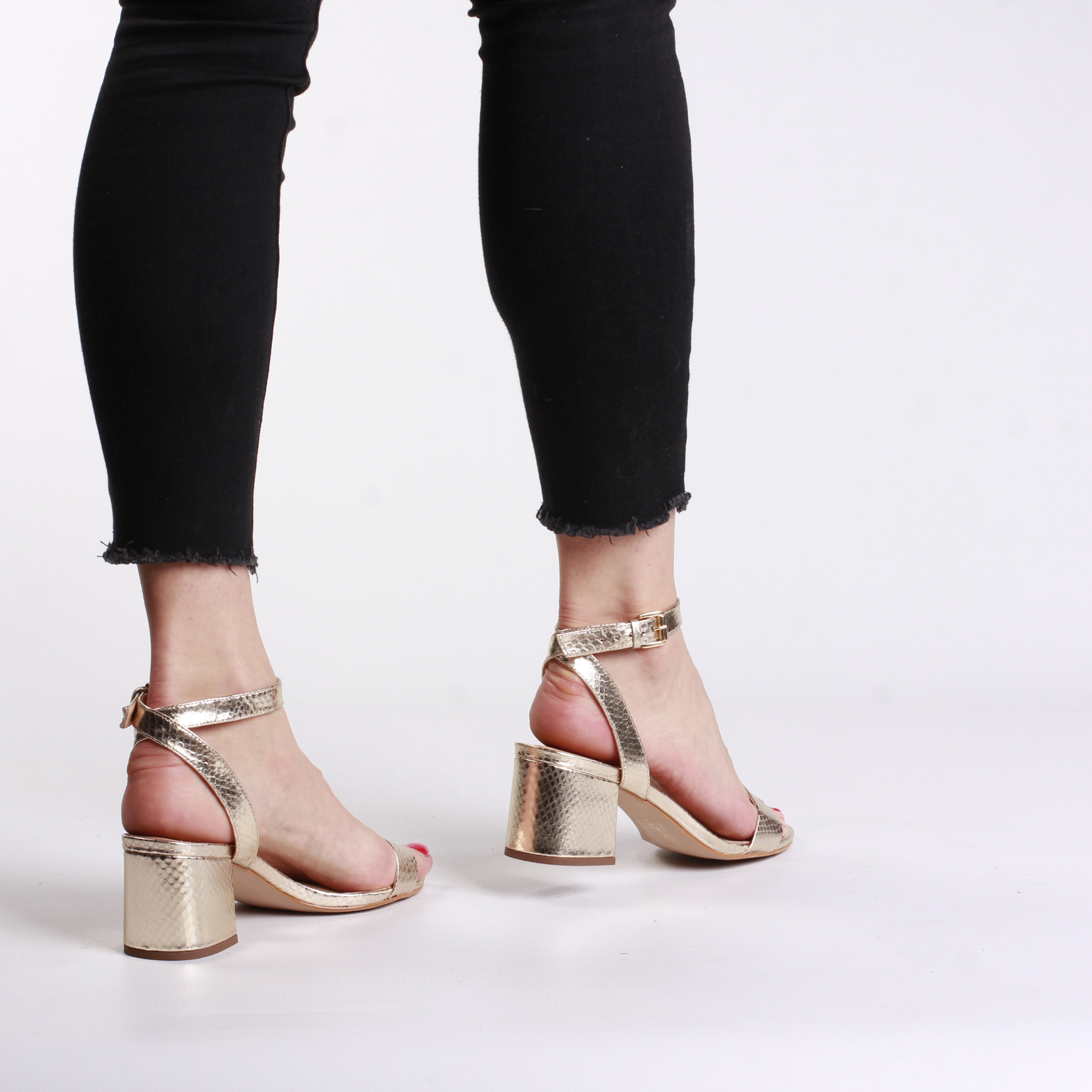 Klasyczne, kobiece sandałki na obcasie to must have każdej miłośniczki stylu oraz wygody. Skórzana cholewka, wnętrze oraz dobrze wyprofilowana skórzana wkładka to gwarancja komfortu przez wiele godzin na nogach. Regulowany pasek przy kostce umożliwi idealne dopasowanie buta do stopy i zapobiegnie jej przesuwaniu. Uniwersalny krój w połączeniu z pięknym, złotym kolorem sprawia, że nabierają nowoczesnego charakteru.