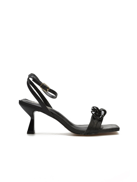 Na upalne letnie dni polecamy eleganckie i szykowne sandały na efektownym obcasie. Wysoki obcas wysmukli nogę i całą sylwetkę a skórzana wkładka i cholewka zapewnią maksymalny komfort użytkowania. Ozdoba w kształcie łańcucha i kwadratowy nosek to topowe trendy sezonu. Klasyczne, eleganckie i piękne. Na co dzień i na wielkie wyjścia. W tych sandałach zadasz szyku! Skusisz się?