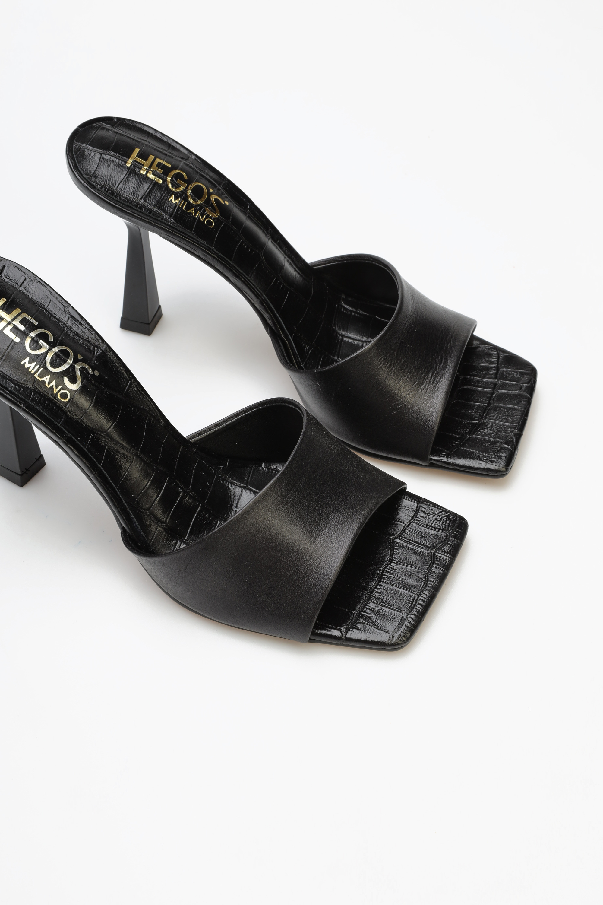 CZARNE KLAPKI NA OBCASIE HEGO'S MILANO