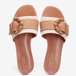 Kobiece, stylowe klapki dodadzą charakteru każdej, letniej stylizacji! Cholewka będąca połączeniem wysokiej jakośći materiału oraz skóry gwarantuje oddychanie stopie, a dobrze wyprofilowana skórzana wkładka zapewnia komfort i wygodę przez wiele godzin. Przypominające wężową skórkę tłoczenie w połączeniu z wyróżniającą się klamerką z przodu sprawia, że prezentują się tak niebanalnie. Nikt nie przejdzie obok nich obojętnie!
