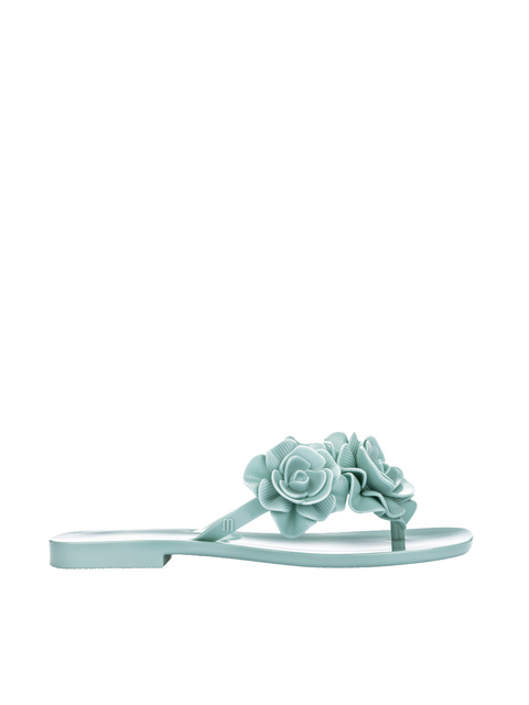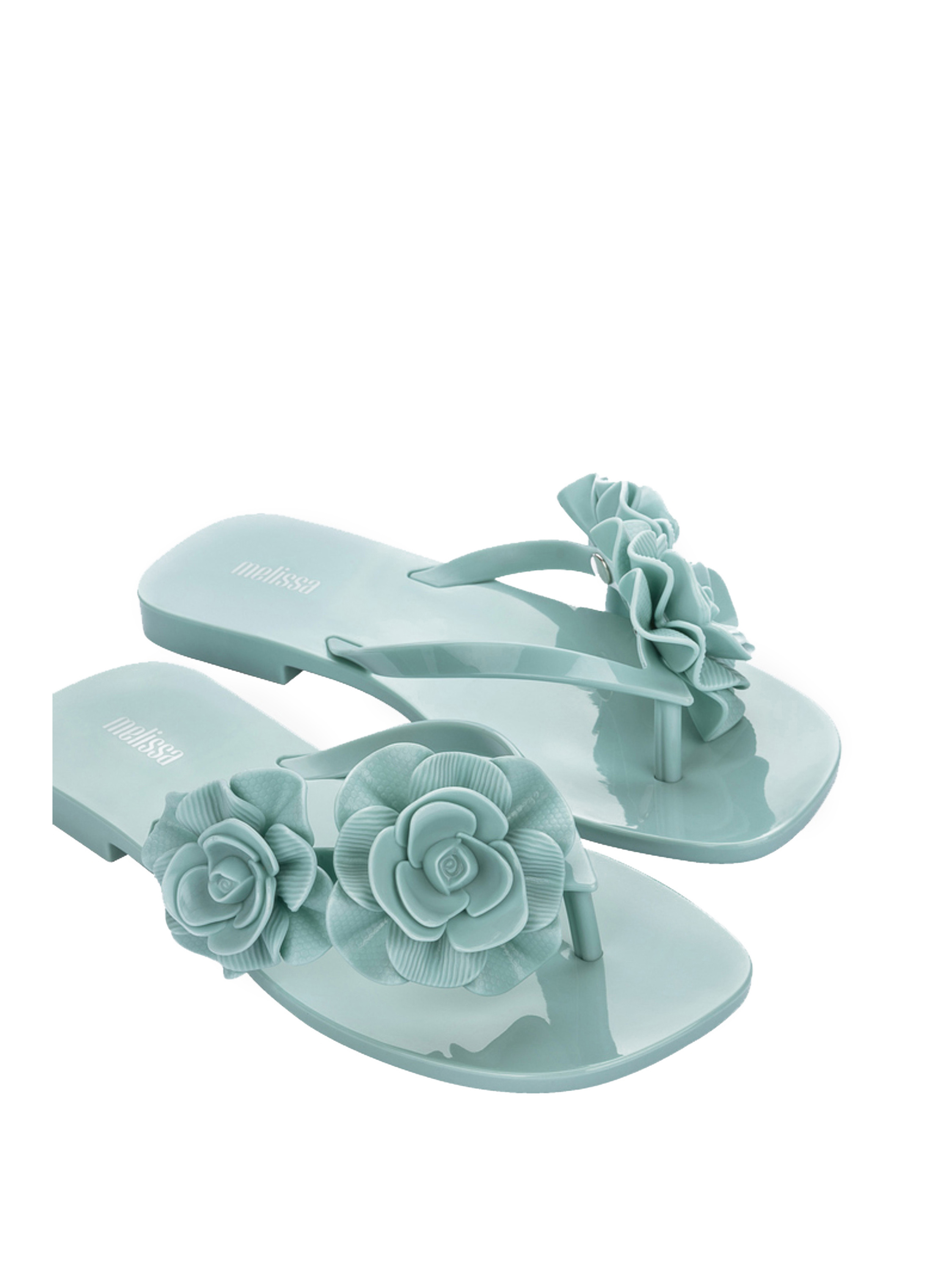 Japonki damskie Melissa Harm wykonane są z wygodnego tworzywa Mel-flex, pachnącego gumą balonową. Materiał ten to połączenie kauczuku i naturalnej gumy, co sprawia, że są biodegradowalne. Zostały zaprojektowane tak, aby jak najlepiej dopasowywały się do kształtu stopy. Są lekkie i wygodne w codziennym użytkowaniu. Model z dwoma cienkimi paskami wzbogacony został o stylową ozdobę w postaci kwiatów.