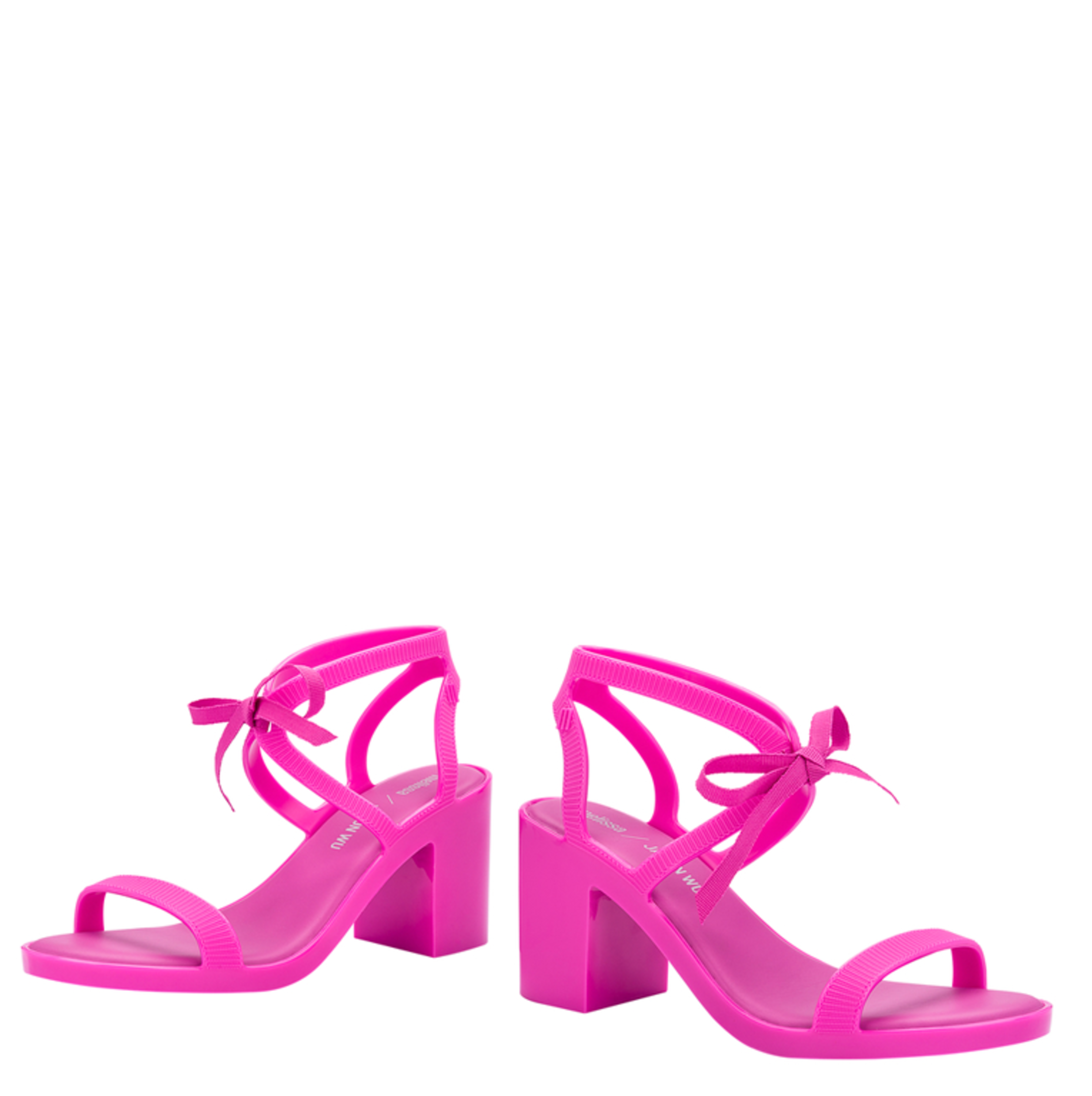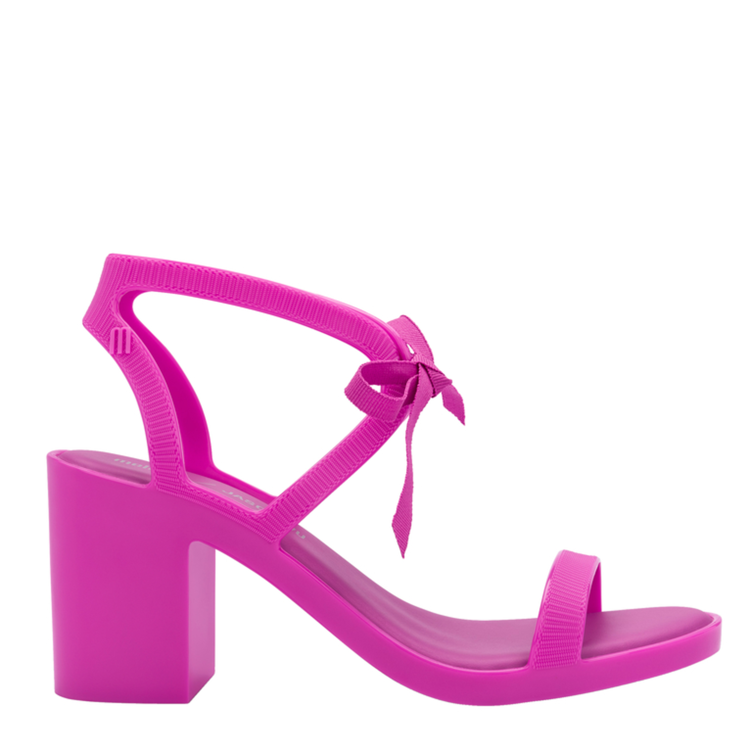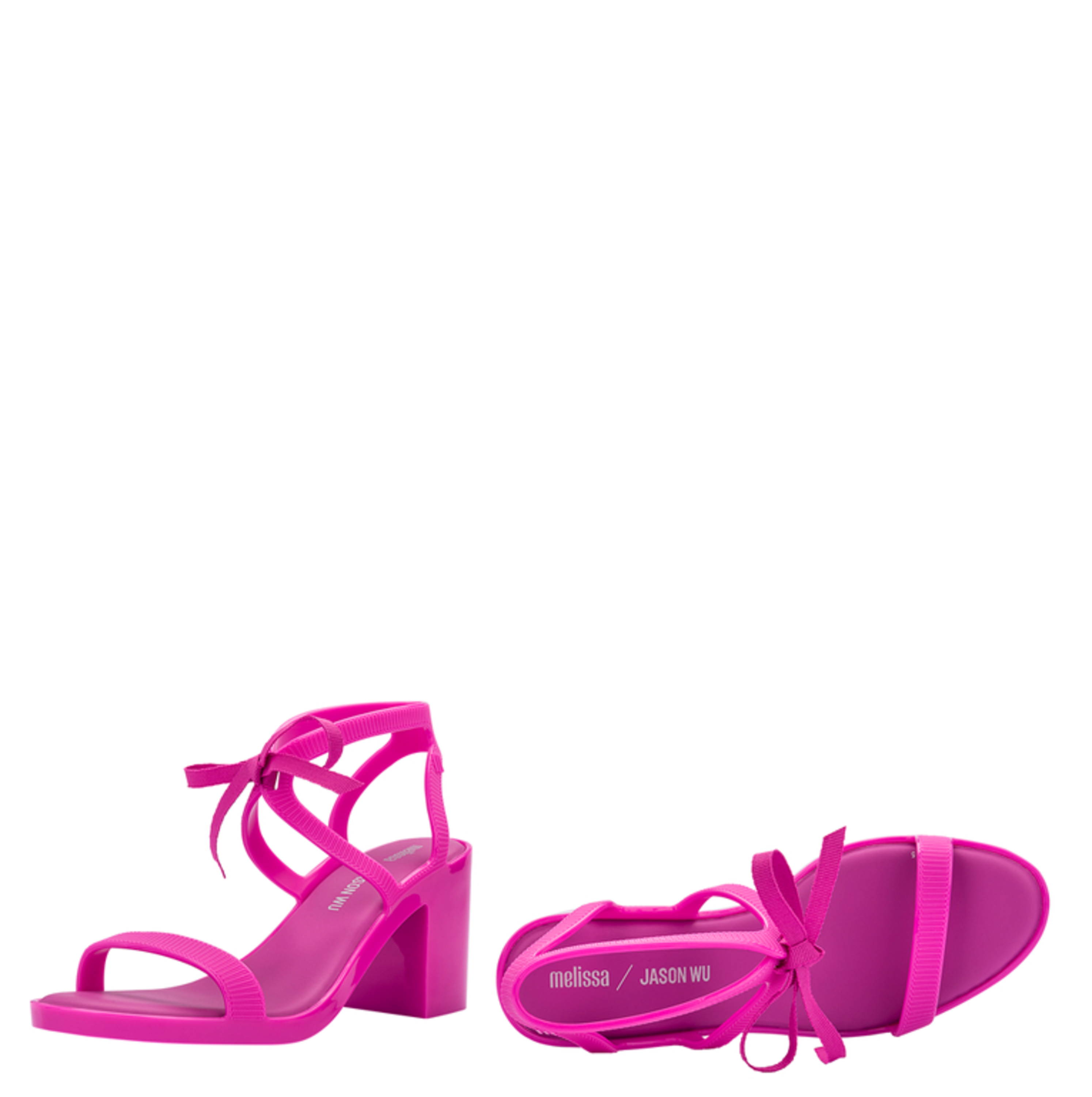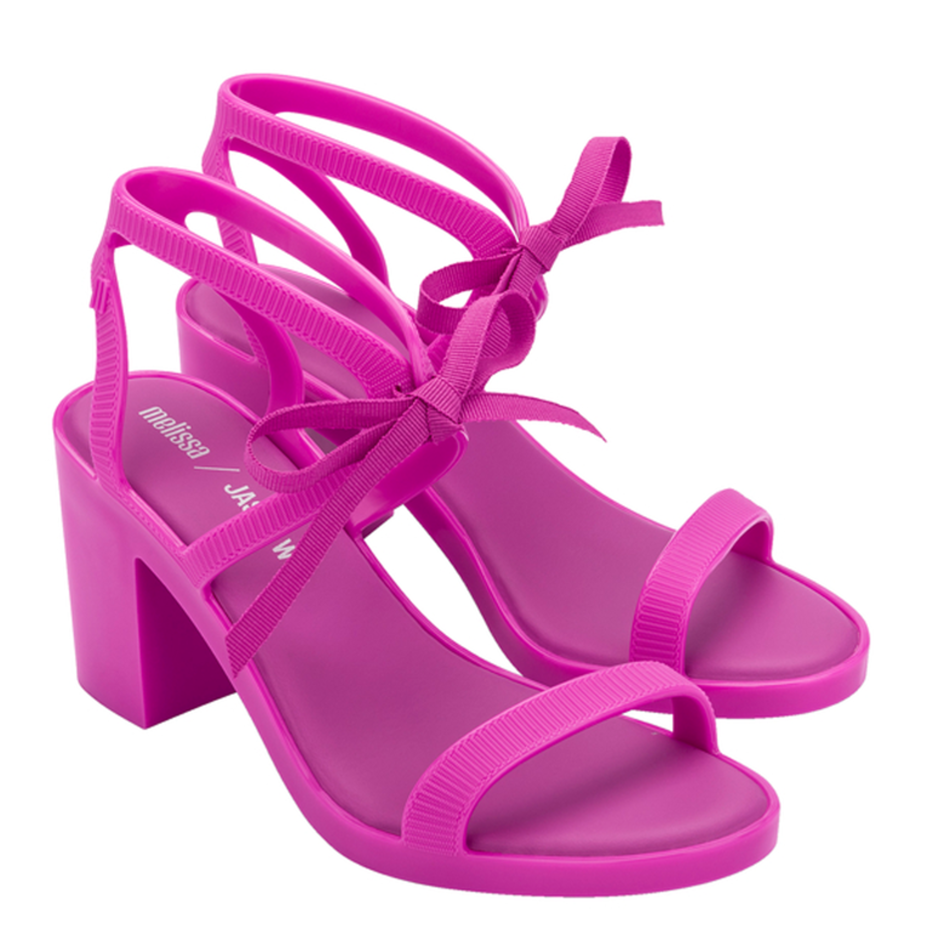 Sandały damskie na obcasie Melissa Janon Wu to model w całości wykonany z kultowego tworzywa Mel-Flex, który pachnie gumą balonową. Materiał ten to mieszanka przetworzonego plastiku i kauczuku. Łatwo zachować go w czystości, a jego elastyczność sprawia, że doskonale dopasowują się do stopy. Sandały osadzone są na niewysokim, stabilnym obcasie na klocku. Zbudowane z pasków, z wiązanym zapięciem.