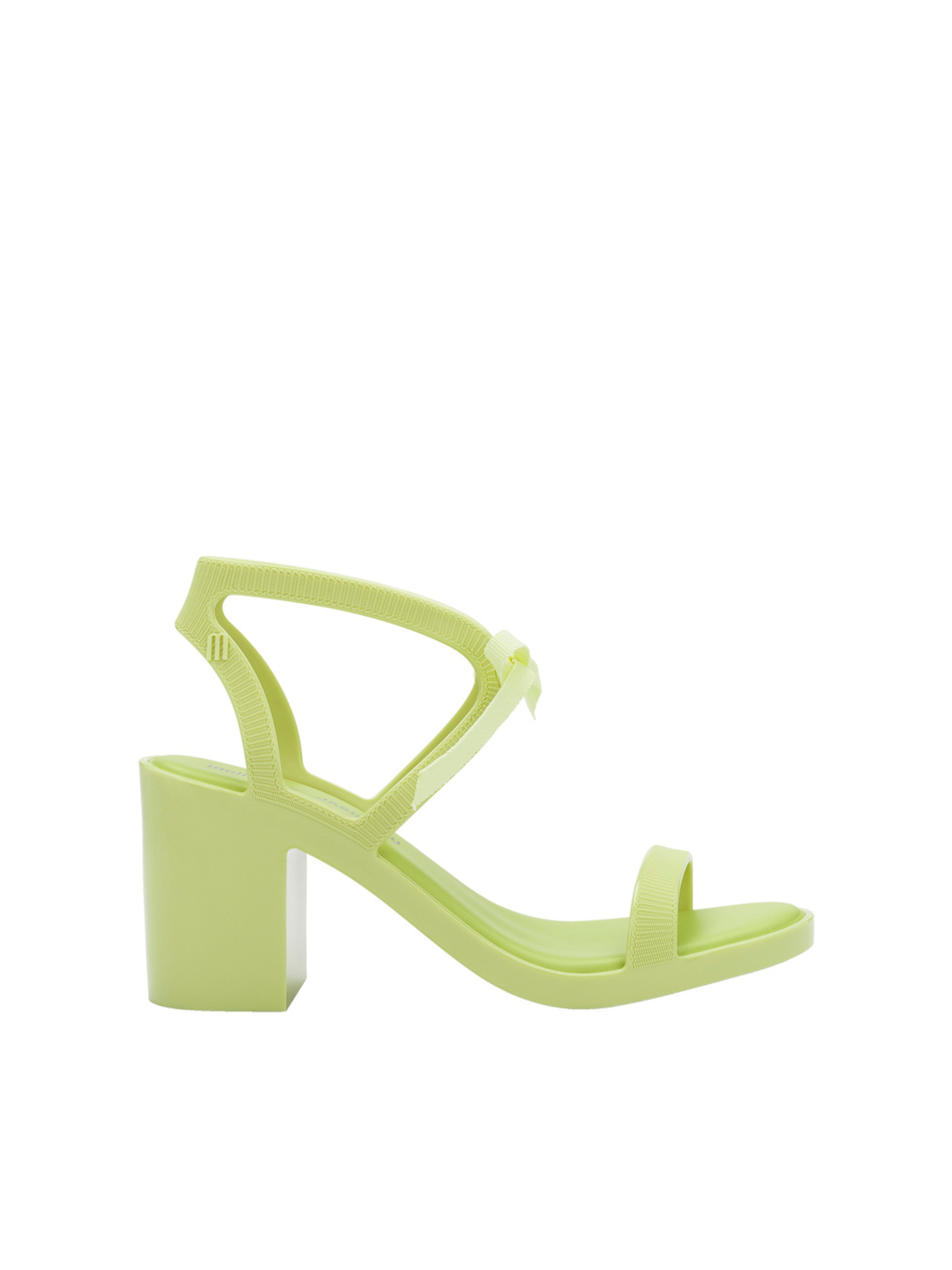 Sandały damskie na obcasie Melissa Janon Wu to model w całości wykonany z kultowego tworzywa Mel-Flex, który pachnie gumą balonową. Materiał ten to mieszanka przetworzonego plastiku i kauczuku. Łatwo zachować go w czystości, a jego elastyczność sprawia, że doskonale dopasowują się do stopy. Sandały osadzone są na niewysokim, stabilnym obcasie na klocku. Zbudowane z pasków, z wiązanym zapięciem.