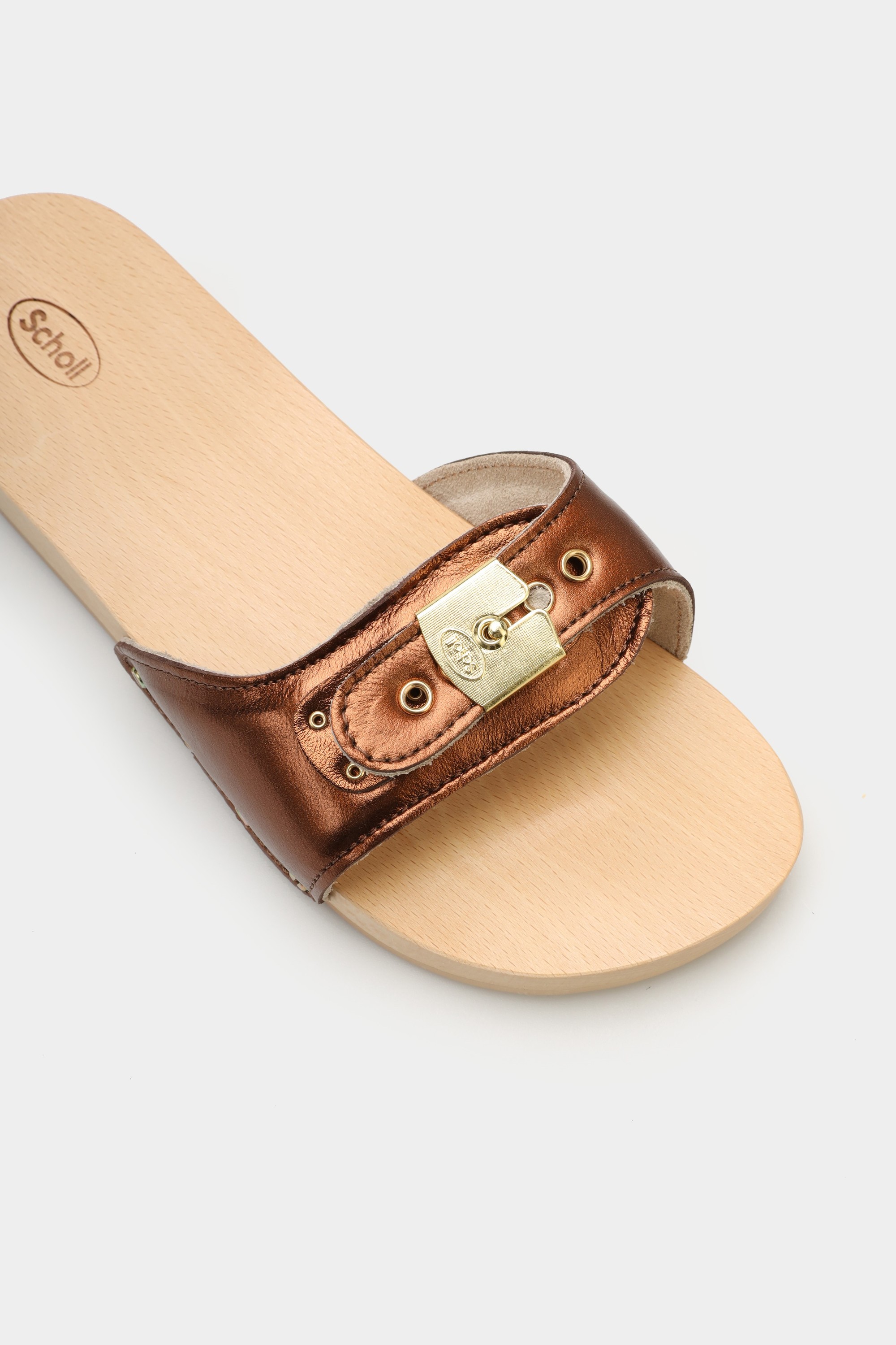 Kultowe klapki Scholl Pescura Flat to propozycja dla kobiet ceniących sobie wygodę, unikalny design oraz zdrowe ułożenie stopy. Zostały opracowane z najwyższej jakości skór i materiałów. Anatomiczna wkładka wykonana z drewna bukowego, dzięki czemu nasze stopy odczuwają ulgę mimo wielu godzin użytkowania.