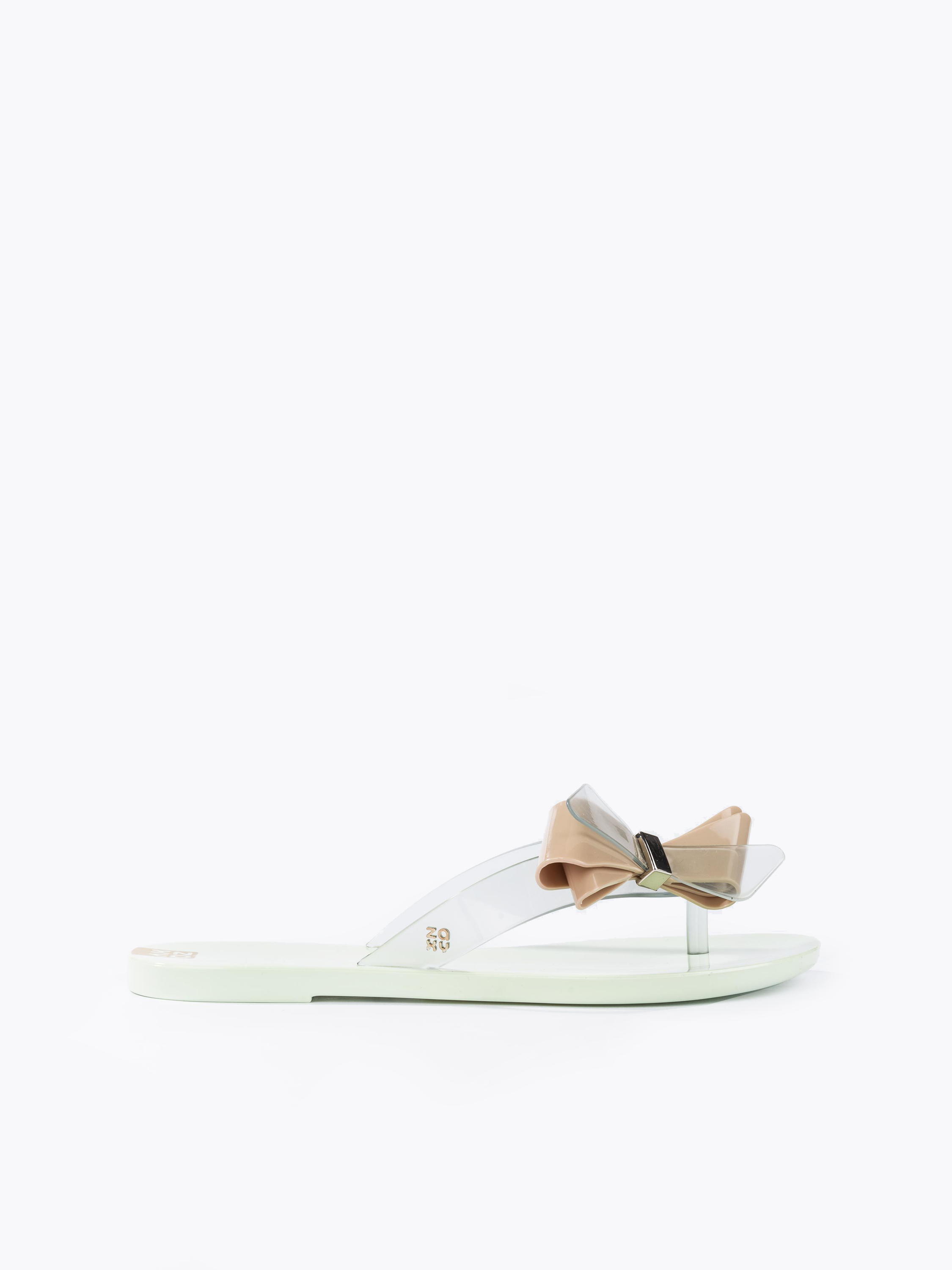 Urocze japonki marki Zaxy wykonane zostały z wysokogatunkowego, aromatyzowanego tworzywa, które zabezpiecza przed otarciami gwarantując wygodę przez wiele godzin na nogach. Klasyczny krój japonek dzięki przeroczystym paskom oraz delikatnej kokardce wybijającej się na ich tle nabiera charakteru. Świetnie sprawdzą się zarówno podczas letnich spacerów w mieście jak i na plaży czy basenie.