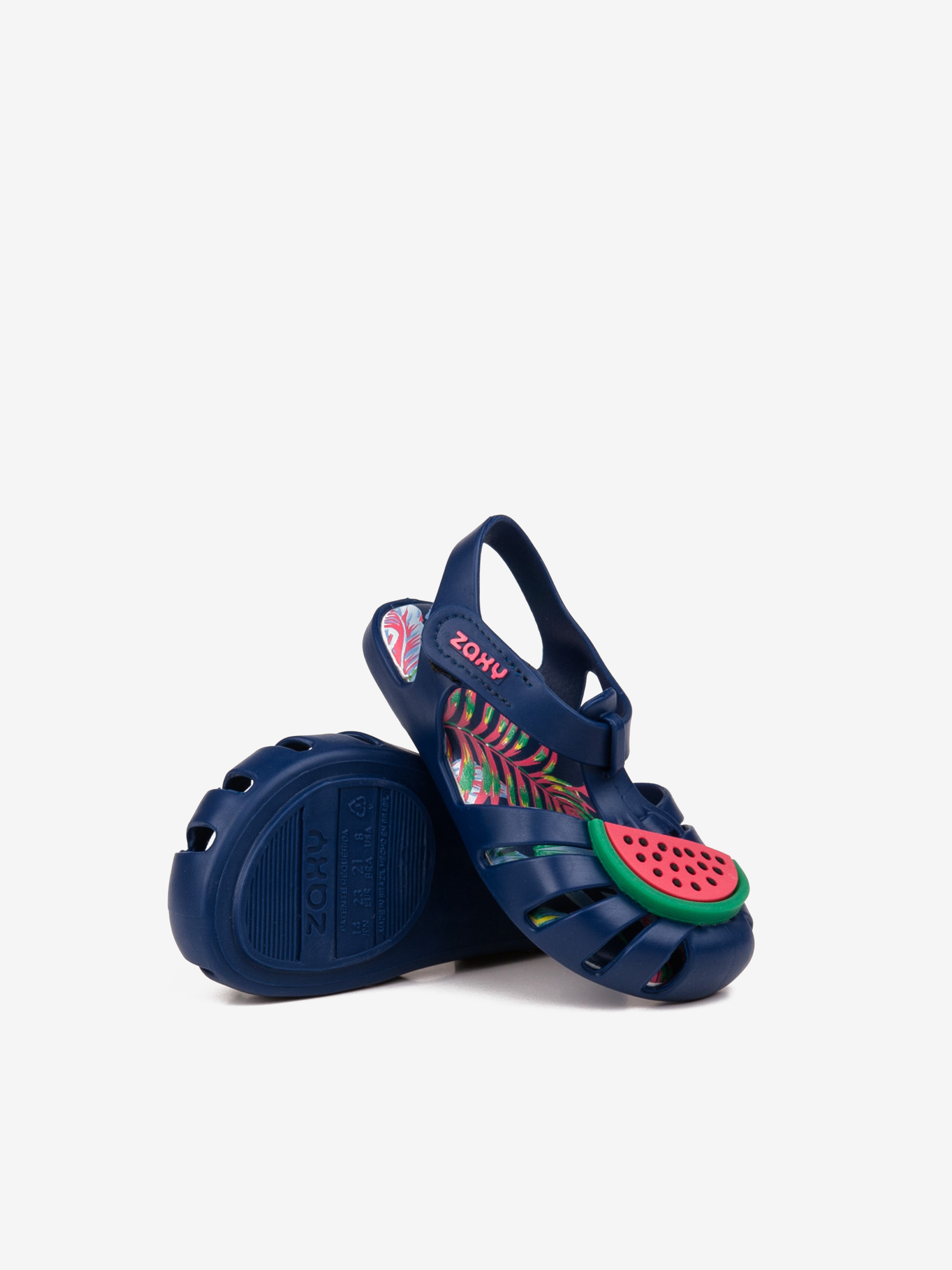 Urocze sandałki z ozdobą w postaci arbuza wykonane z elastycznego, aromatyzowanego tworzywa. Miękka wkładka oraz zapięcie na rzep zapewnią wygodę i dopasowanie się do stopy. Będą idealną opcją dla każdej, najmłodszej miłośniczki gumowych butów marki Zaxy.
