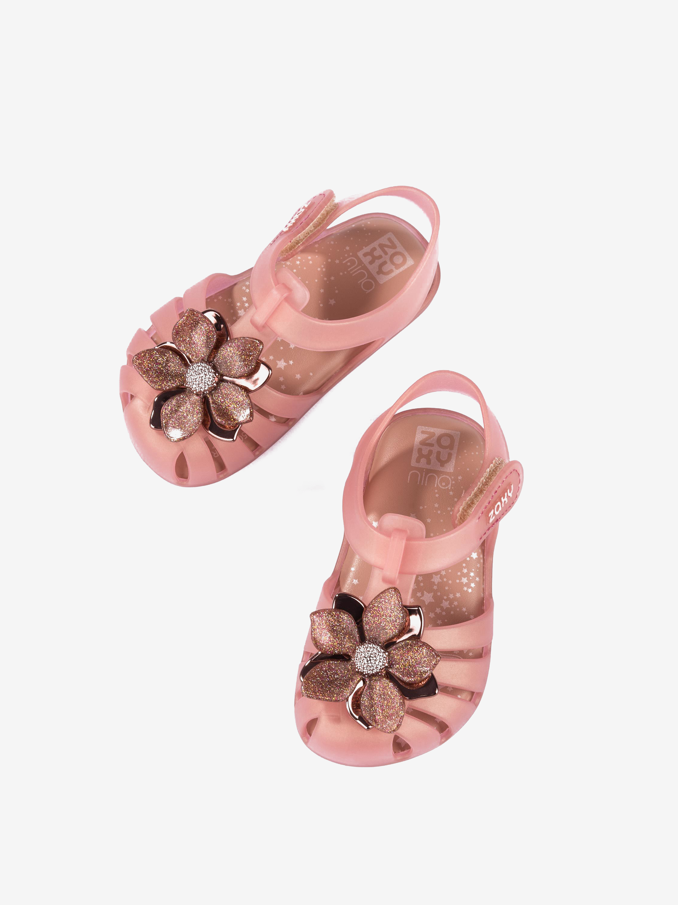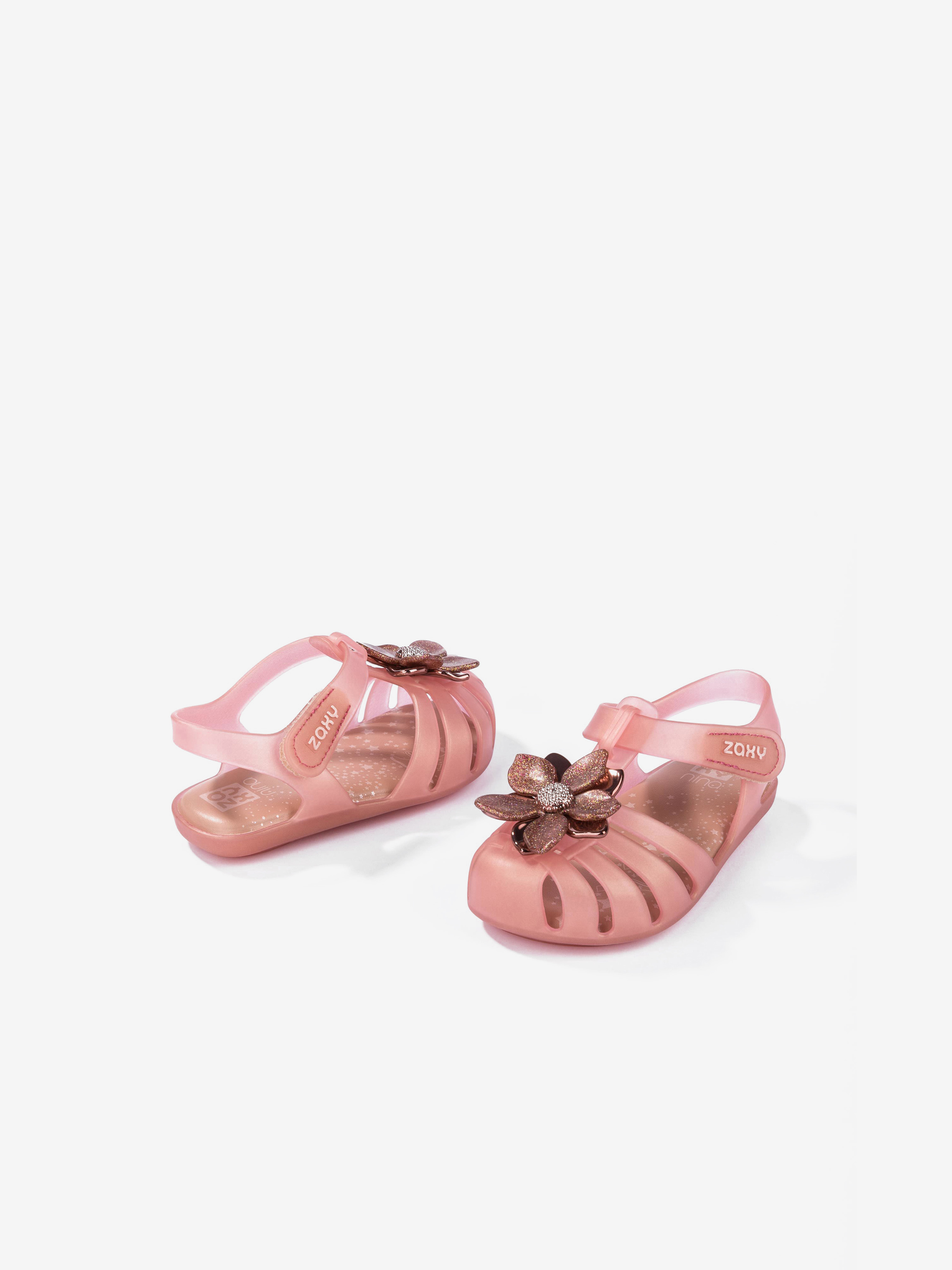Dziewczęce sandałki marki Zaxy wykonane zostały z elastycznego, przyjaznego dla skóry tworzywa, które zabezpiecza przed otarciami. Dobrze wyprofilowana, miękka wkładka zapewnia wygodę i komfort, a dzięki zapięciu na rzep dobrze dopasują się do stopy. Duża ozdoba w postaci kwiatu przykuwa wzrok, więc będzie to idealna propozycja dla najmłodszych, stylowych miłośniczek gumowych butów.