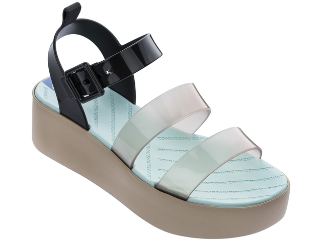 Wygodne, stylowe sandały marki Zaxy wykonane zostały z wysokiej jakości tworzywa aromatyzowanego, które dopasowuje się do stopy i zabezpiecza przed otarciami nawet w najcieplejsze, letnie dni. Dzięki podwyższonej podeszwie na platformie zapewniają stabilny krok i amortyzację w każdych warunkach. Połączenie półprzezroczystych i czarnych pasków oraz turkusowej wkładki sprawia, że prezentują się niezwykle unikatowo. Nikt nie przejdzie obok nich obojętnie!