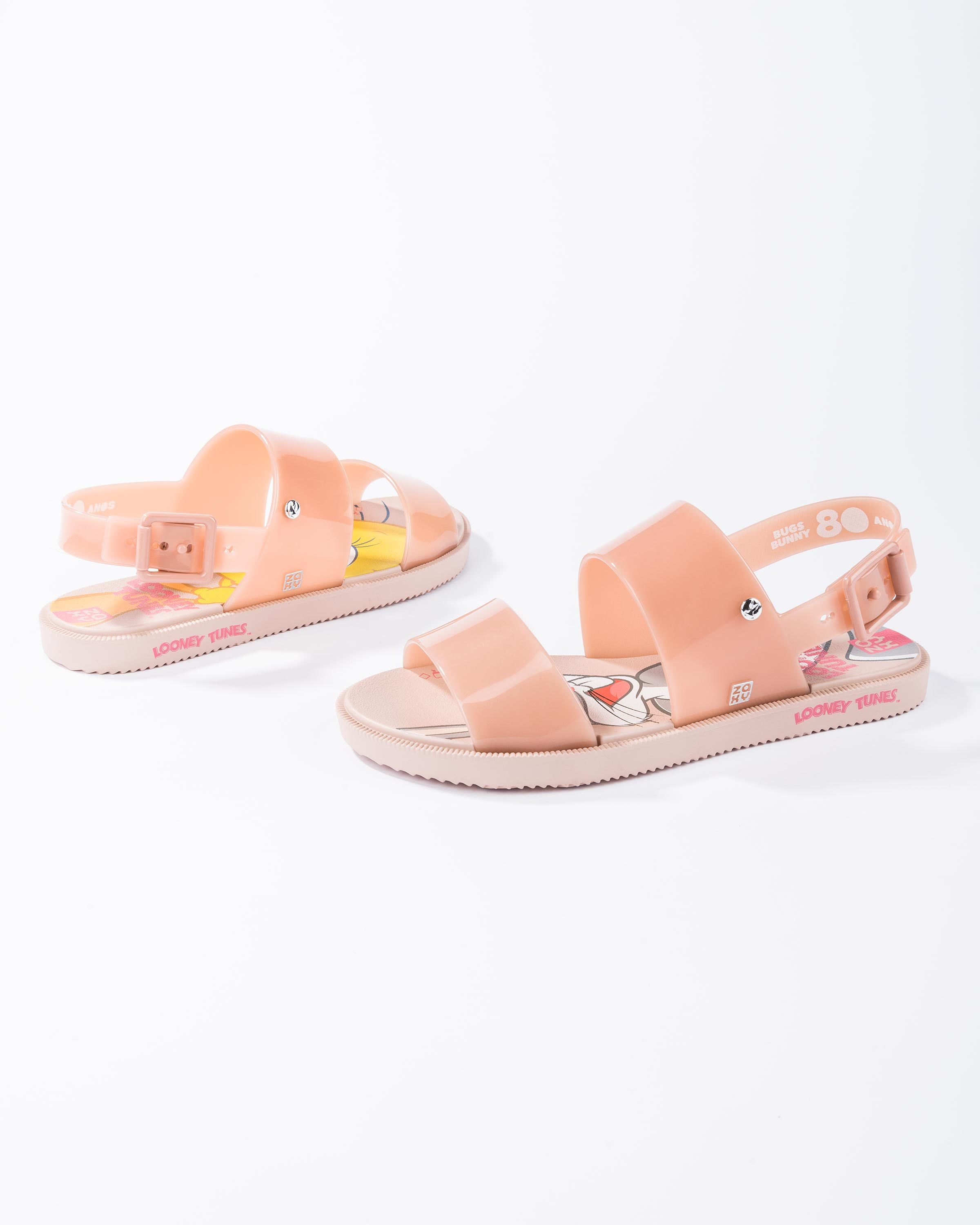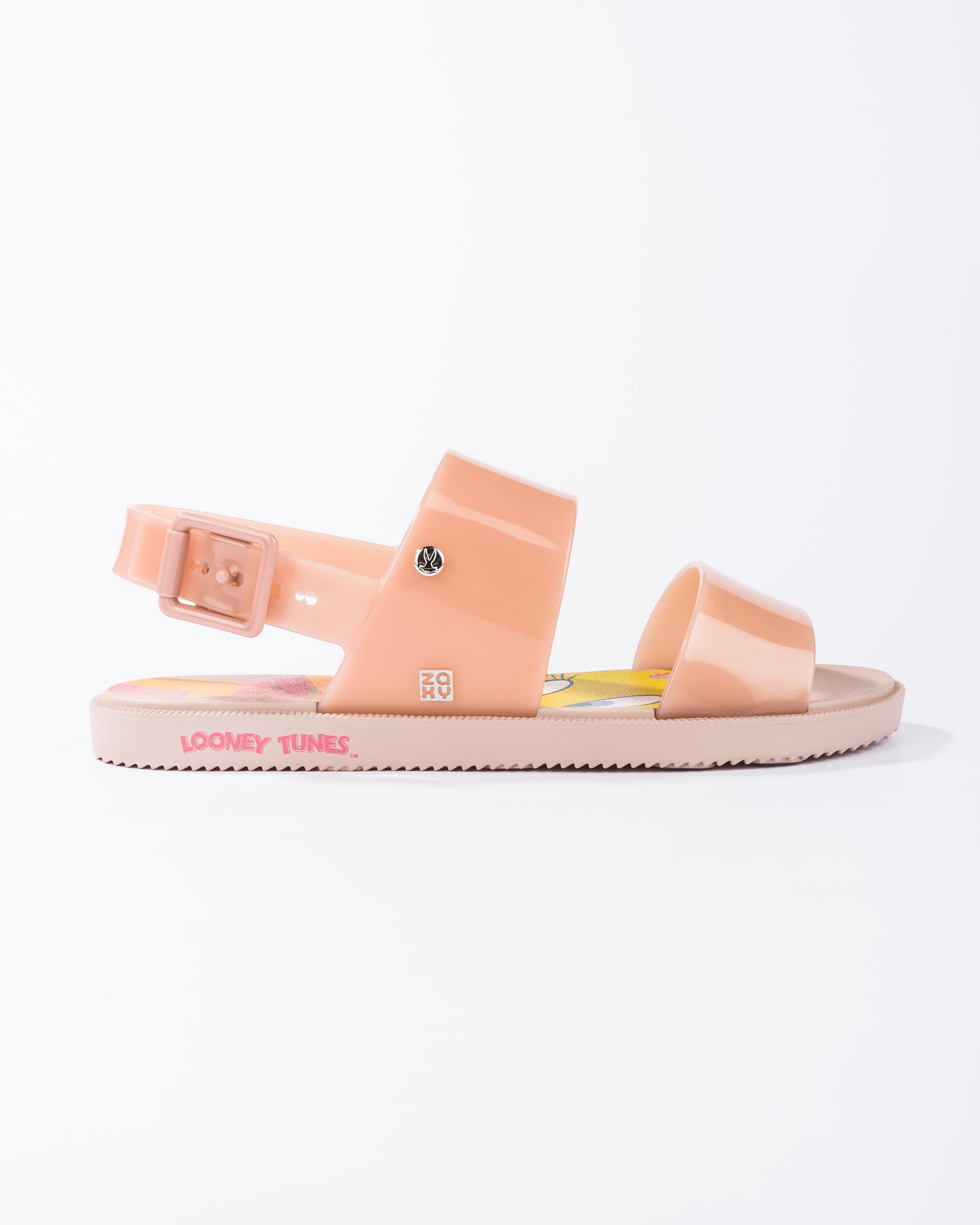 Wygodne sandałki marki Zaxy inspirowane serią animowanych filmów Looney Tunes to urocza propozycja dla każdej miłośniczki szalonych wzorów w sezonie SS21. Buty wykonane zostały z wysokiej jakości, aromatyzowanego tworzywa, które dopasowuje się do stopy i zabezpiecze przed otarciami nawet w najcieplejsze, letnie dni. Miękka wkładka na grubszej podeszwie zapewnia stabilny krok i odpowiednią amortyzację. Świetnie wyglądać będą zestawione zarówno ze spodniami jak i sukienkami.