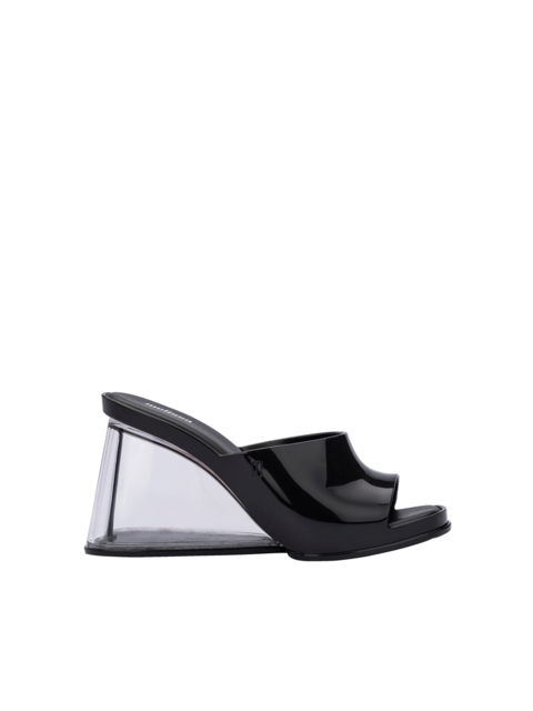 Klapki damskie Melissa wykonane są z kultowego tworzywa Mel-Flex, które pachnie gumą balonową. Materiał ten to mieszanka przetworzonego plastiku i kauczuku. Łatwo zachować go w czystości, a jego elastyczność sprawia, że doskonale dopasowują się do stopy. Miękka, wygodna wkładka odpowiada za komfort chodzenia przez cały dzień. Wodoodporne, posiadają transparentny, wysoki koturn. Będą uzupełnieniem letnich stylizacji.